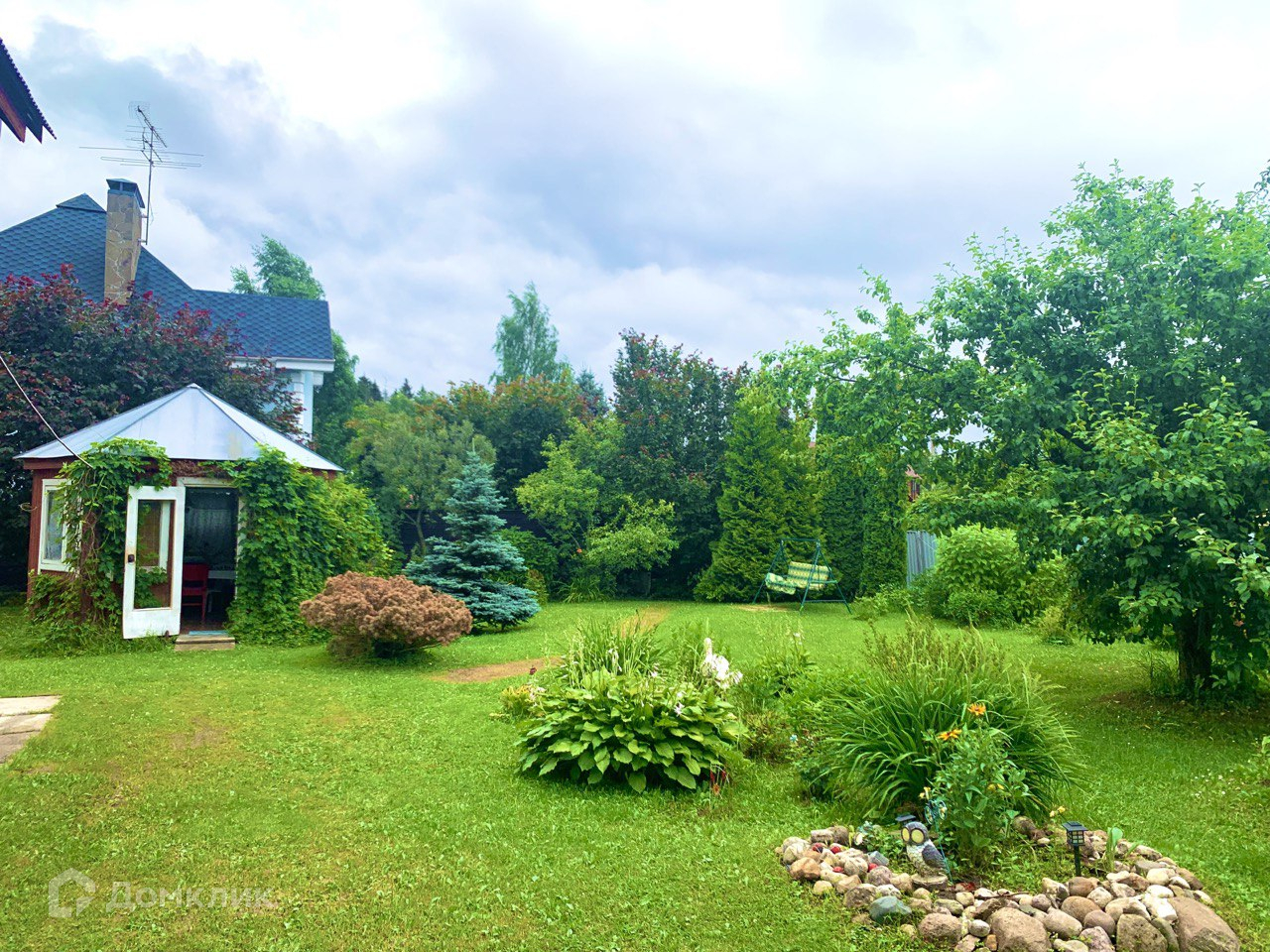 Ухоженный участок 7,5 соток, на котором растет много плодовых деревьев и кустарников (три яблони, калина, облепиха, шиповник, вишня, орешник, виноград изабелла, смородина и другие).
