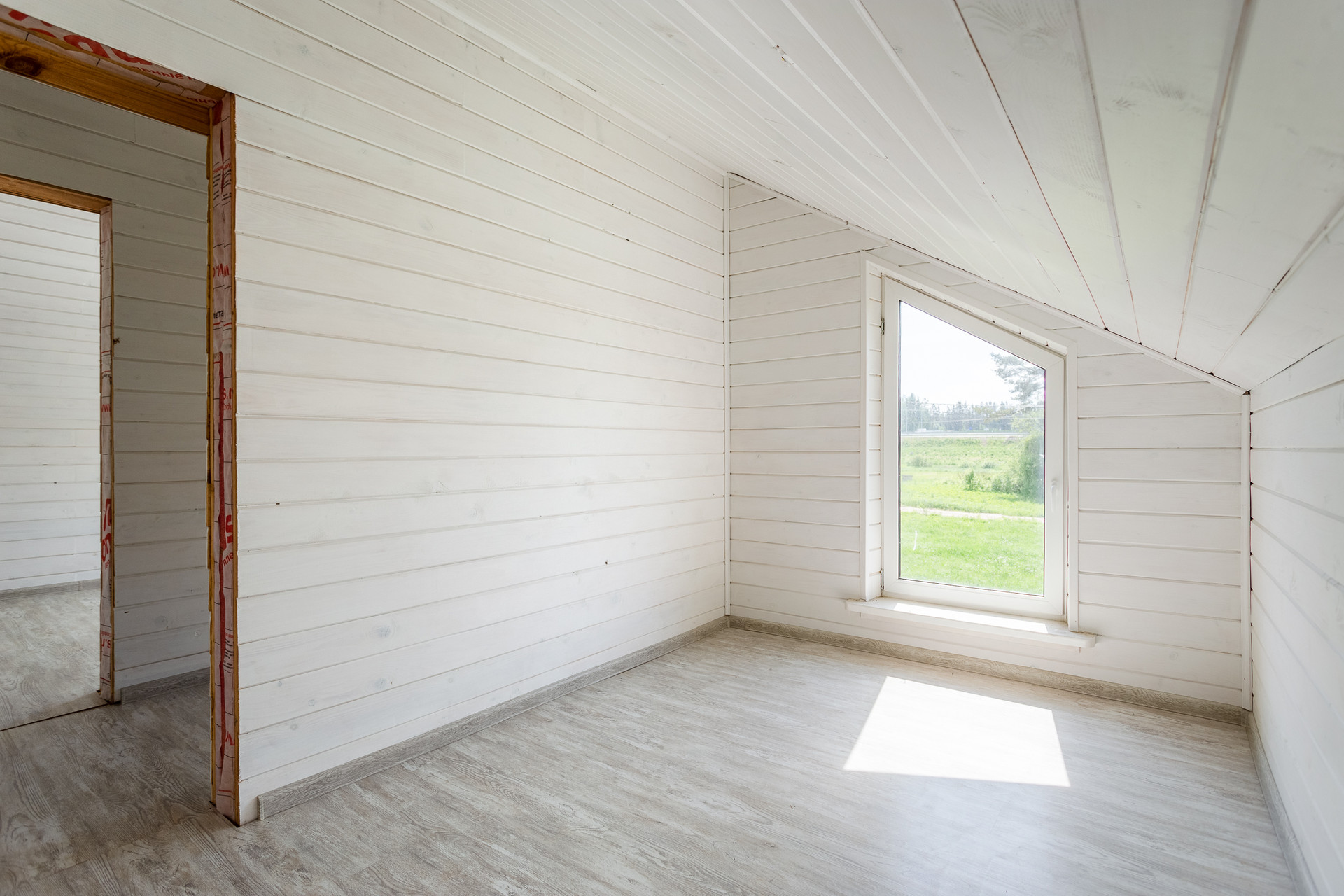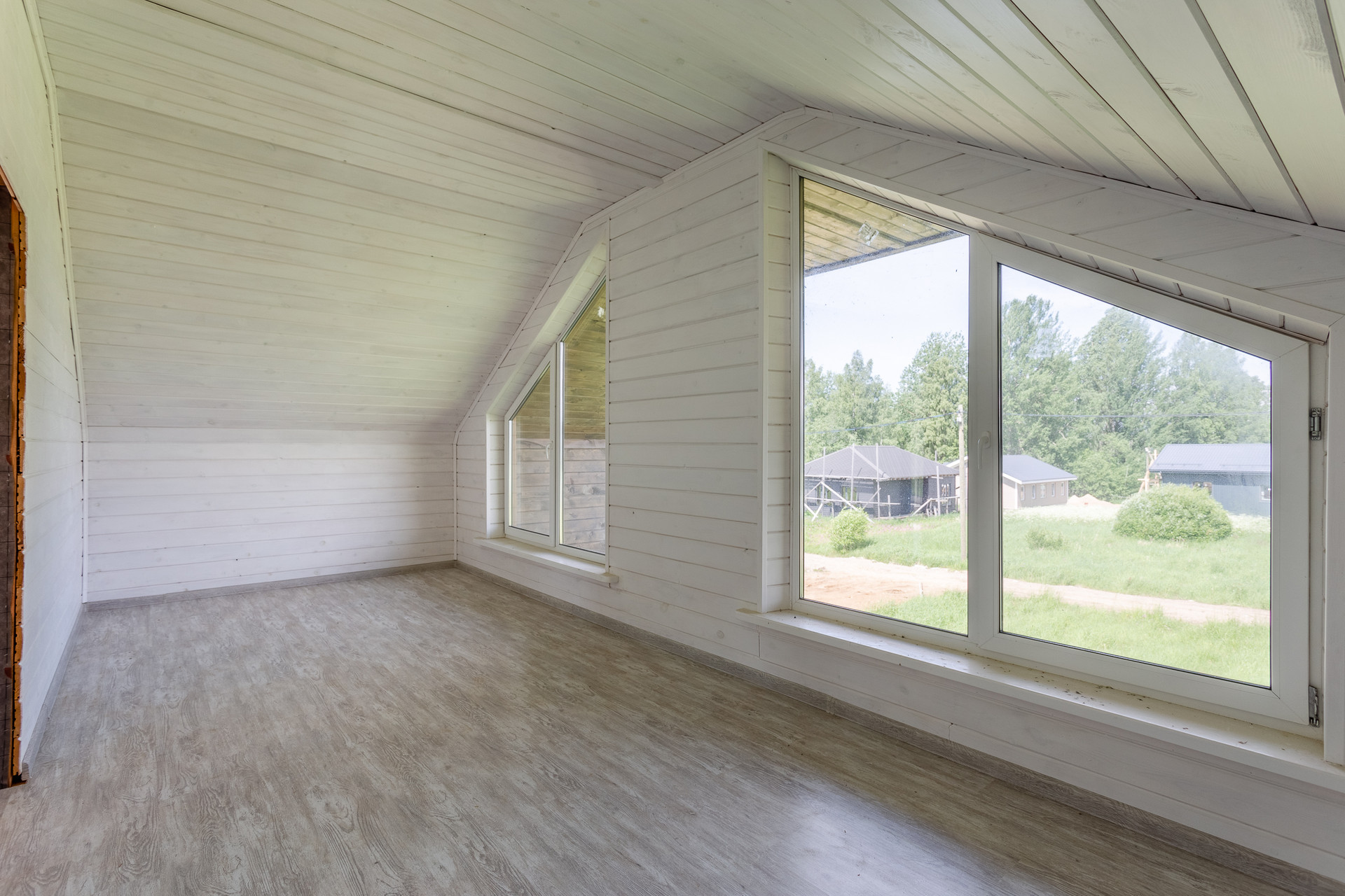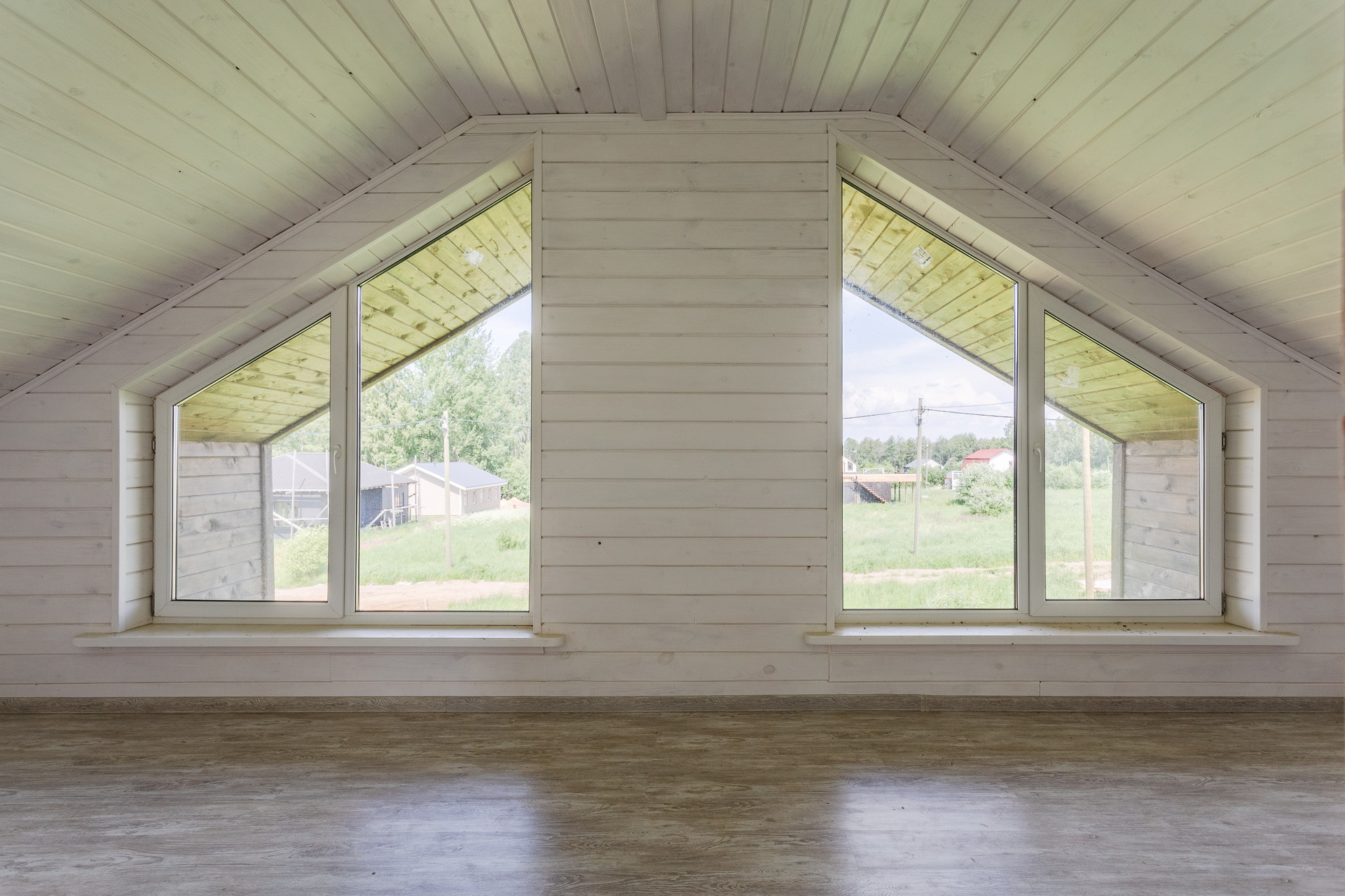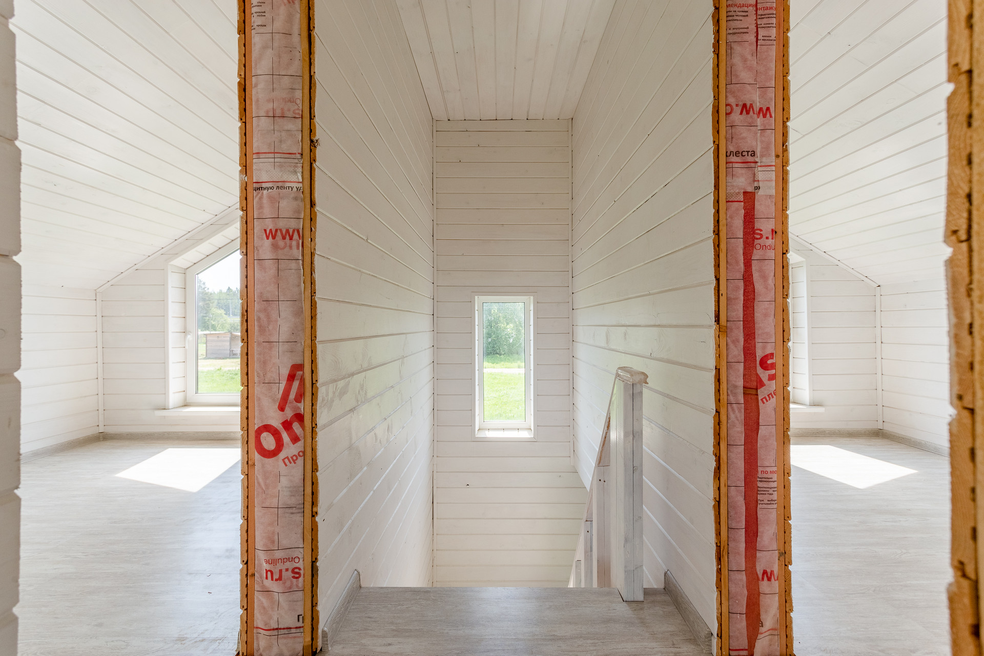Пространство второго этажа включает в себя две небольших спальни (одну из которых можно переделать под ванную комнату ) и одну большую спальню с двумя двойными открывающимися окнами.