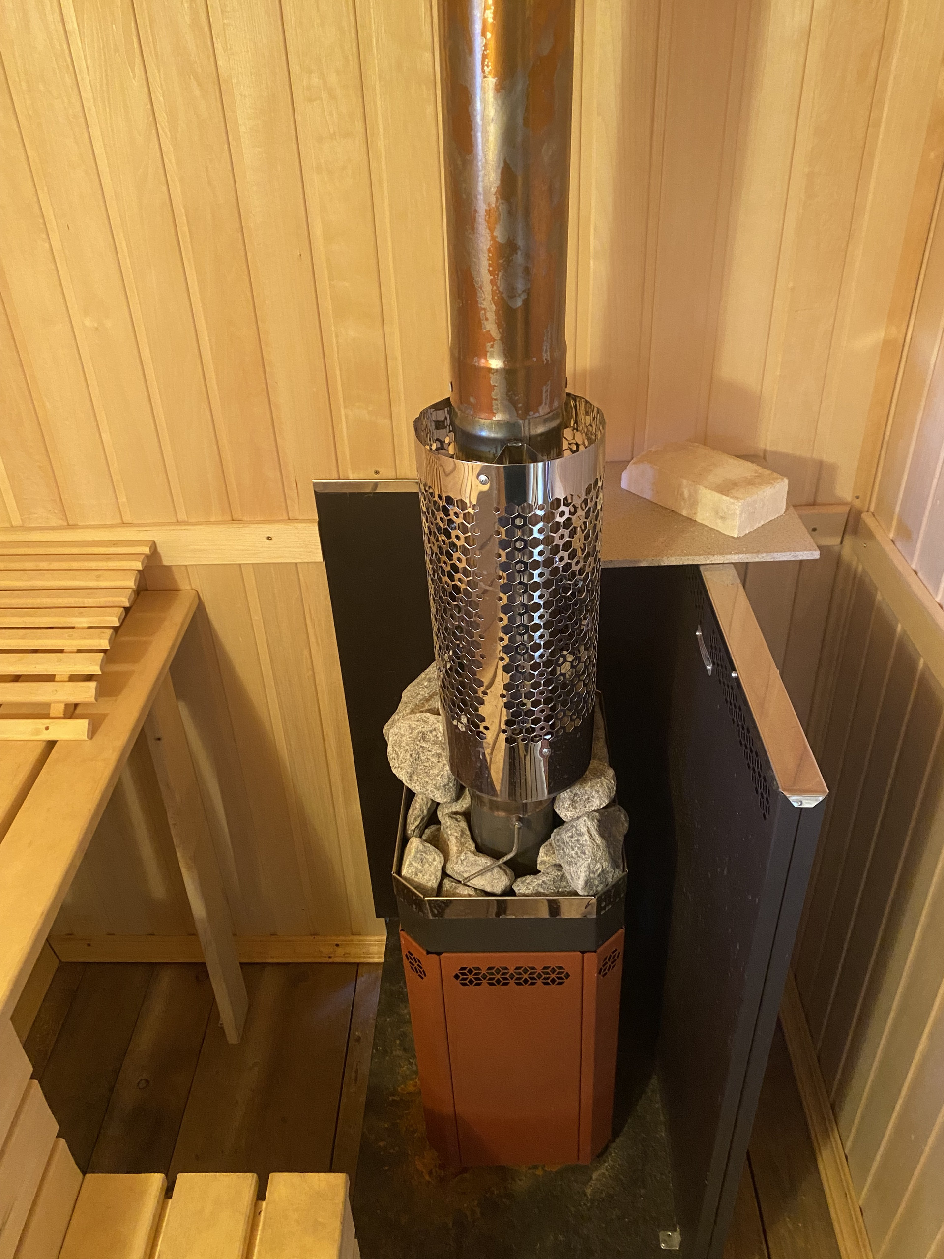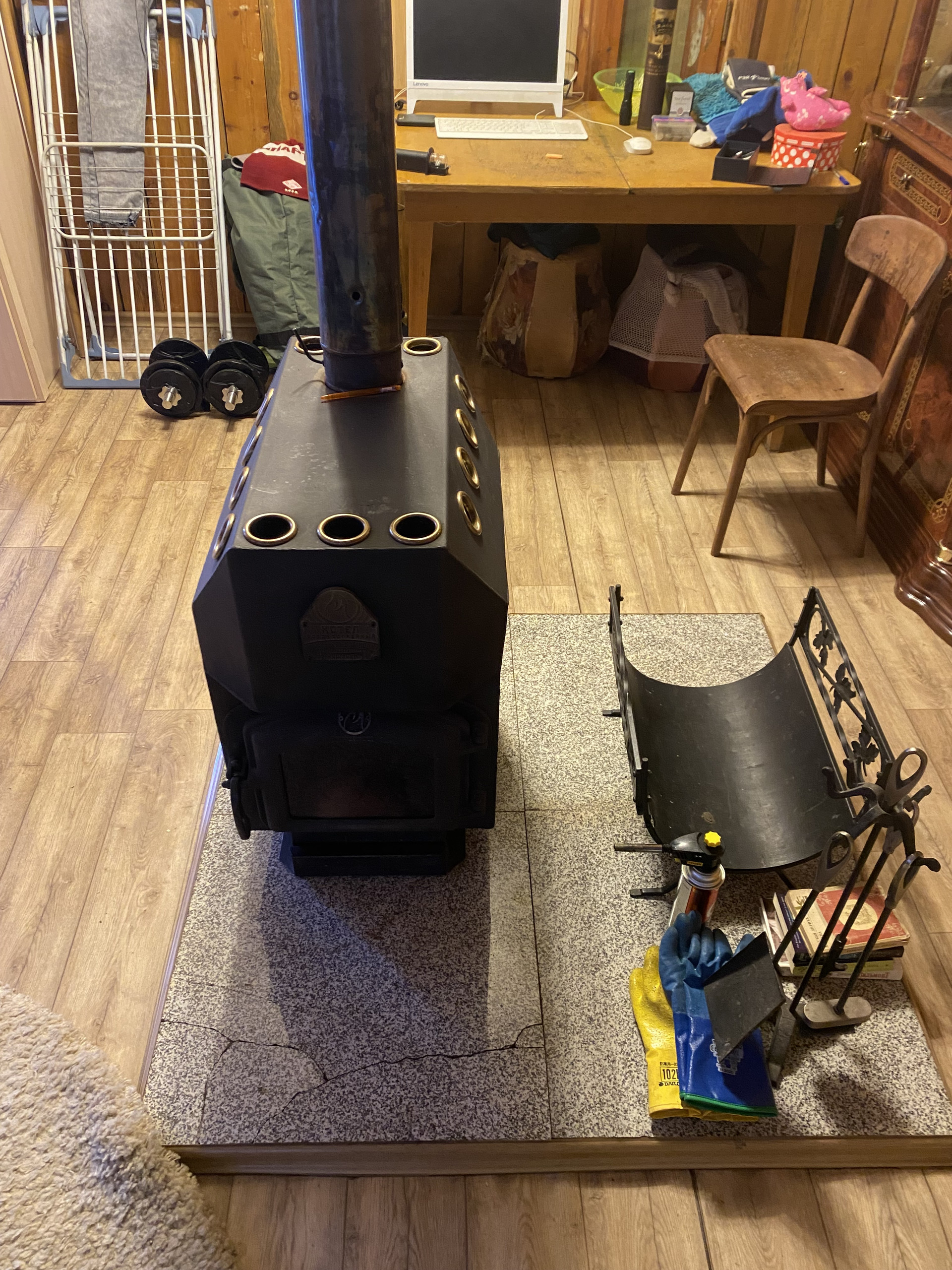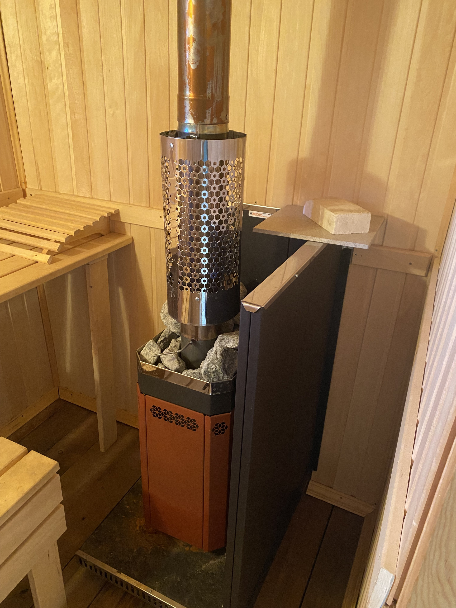 В доме электроотопление (теплые полы), также установлена печь-котел.
