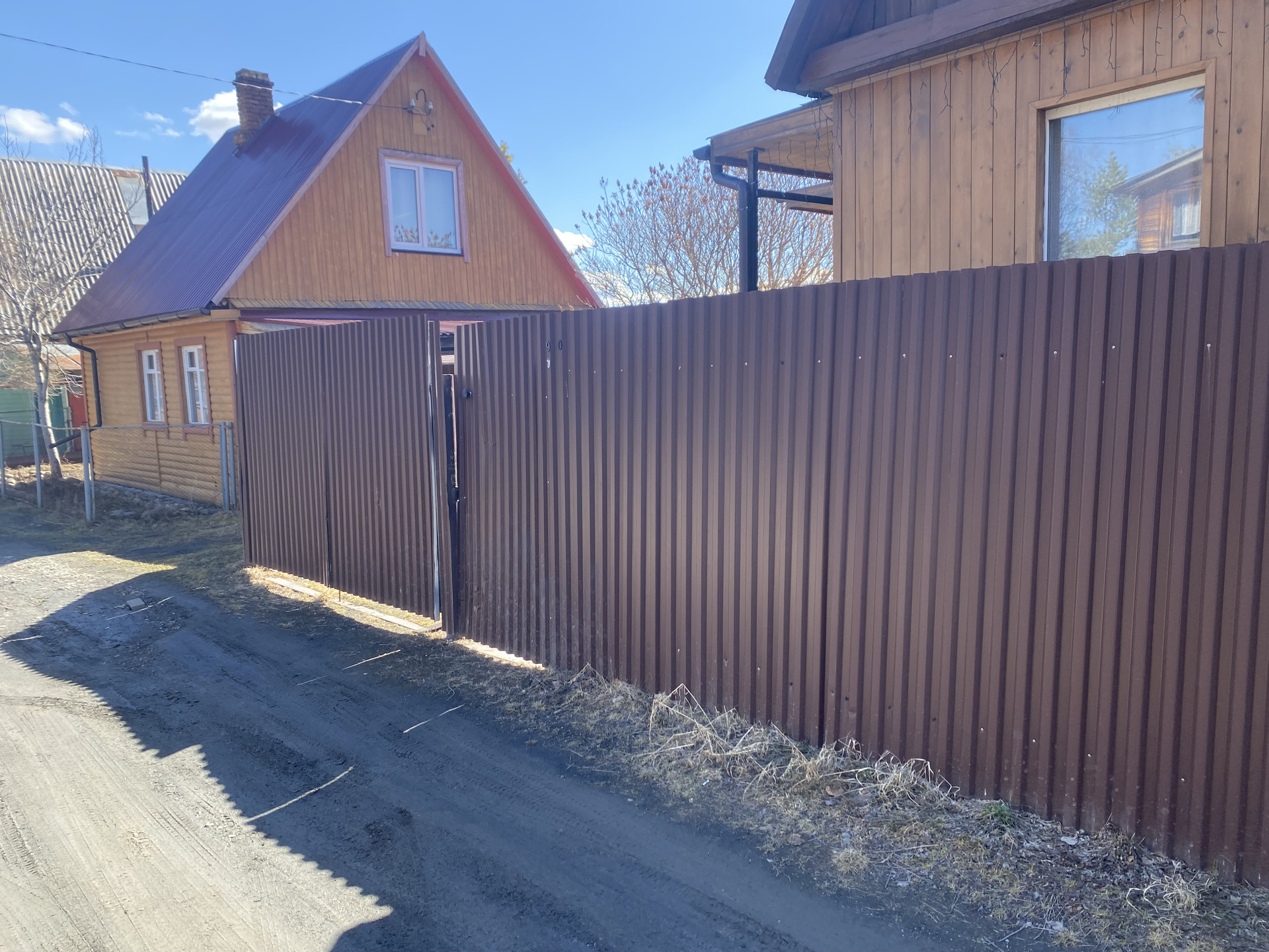 Въезд на участок возможен с двух улиц, двое ворот.