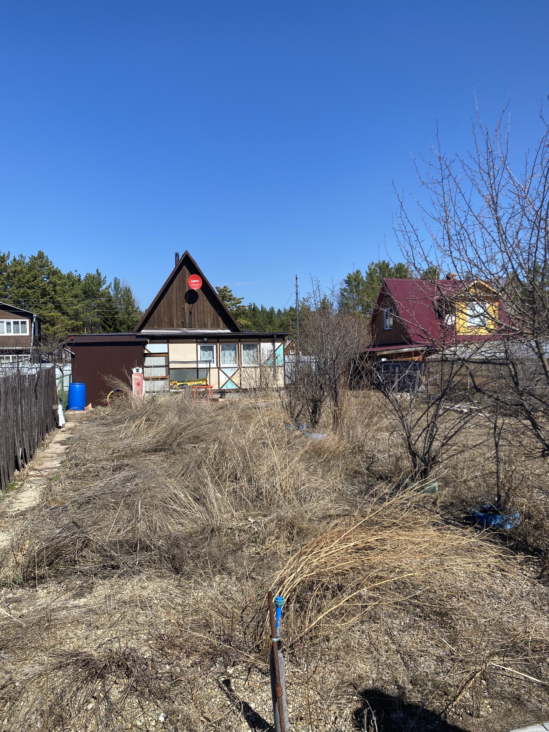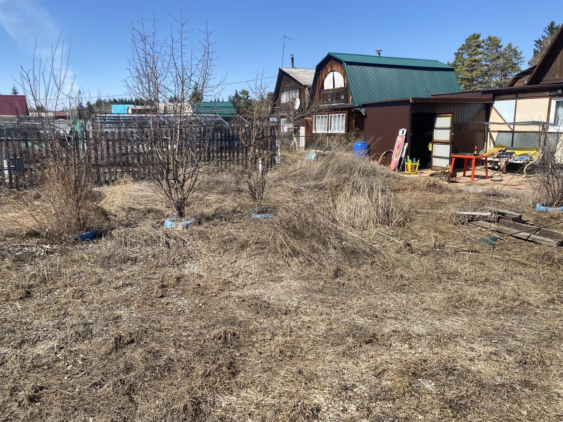 Земельный участок и строения в собственности.