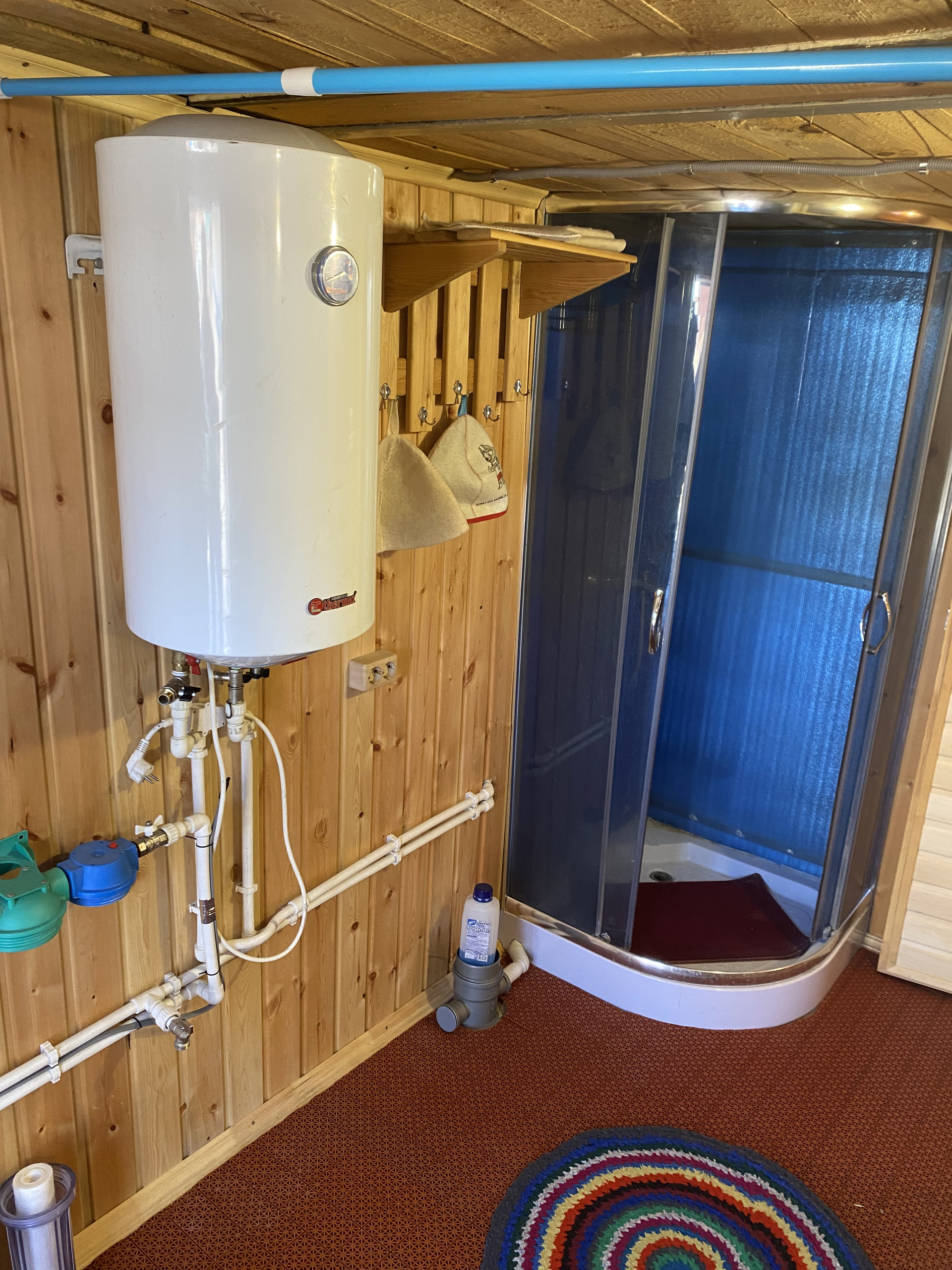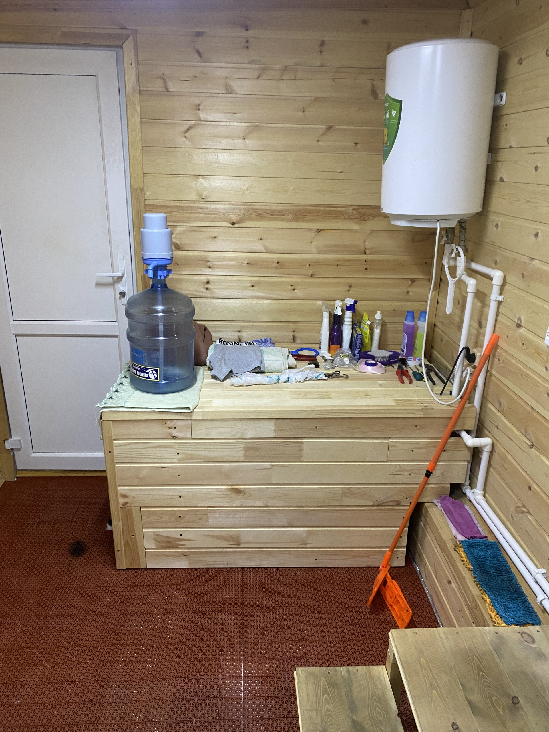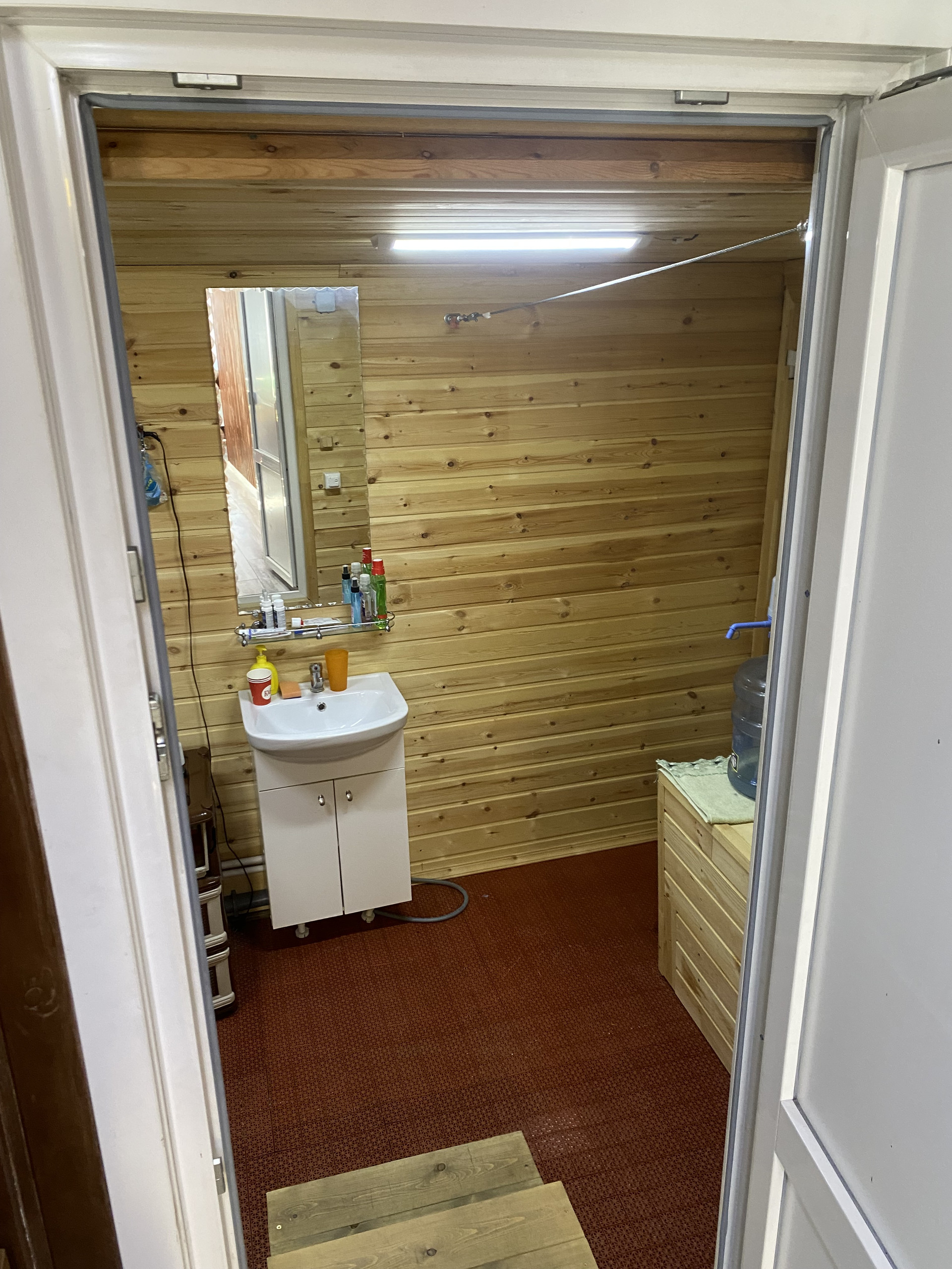 Абсолютно новая баня со всеми удобствами - тёплые полы, вода, душевая кабина.