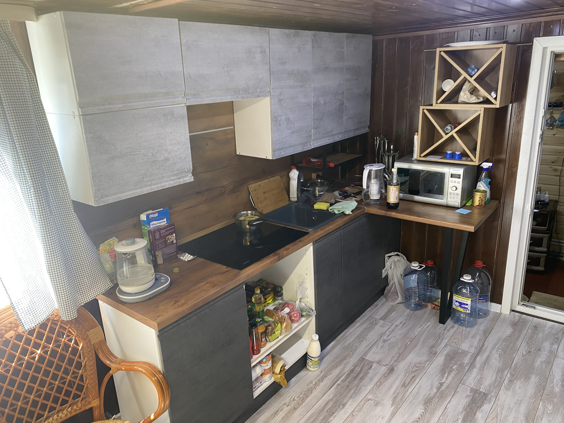 Установлен новый кухонный гарнитур, раковина, варочная поверхность.