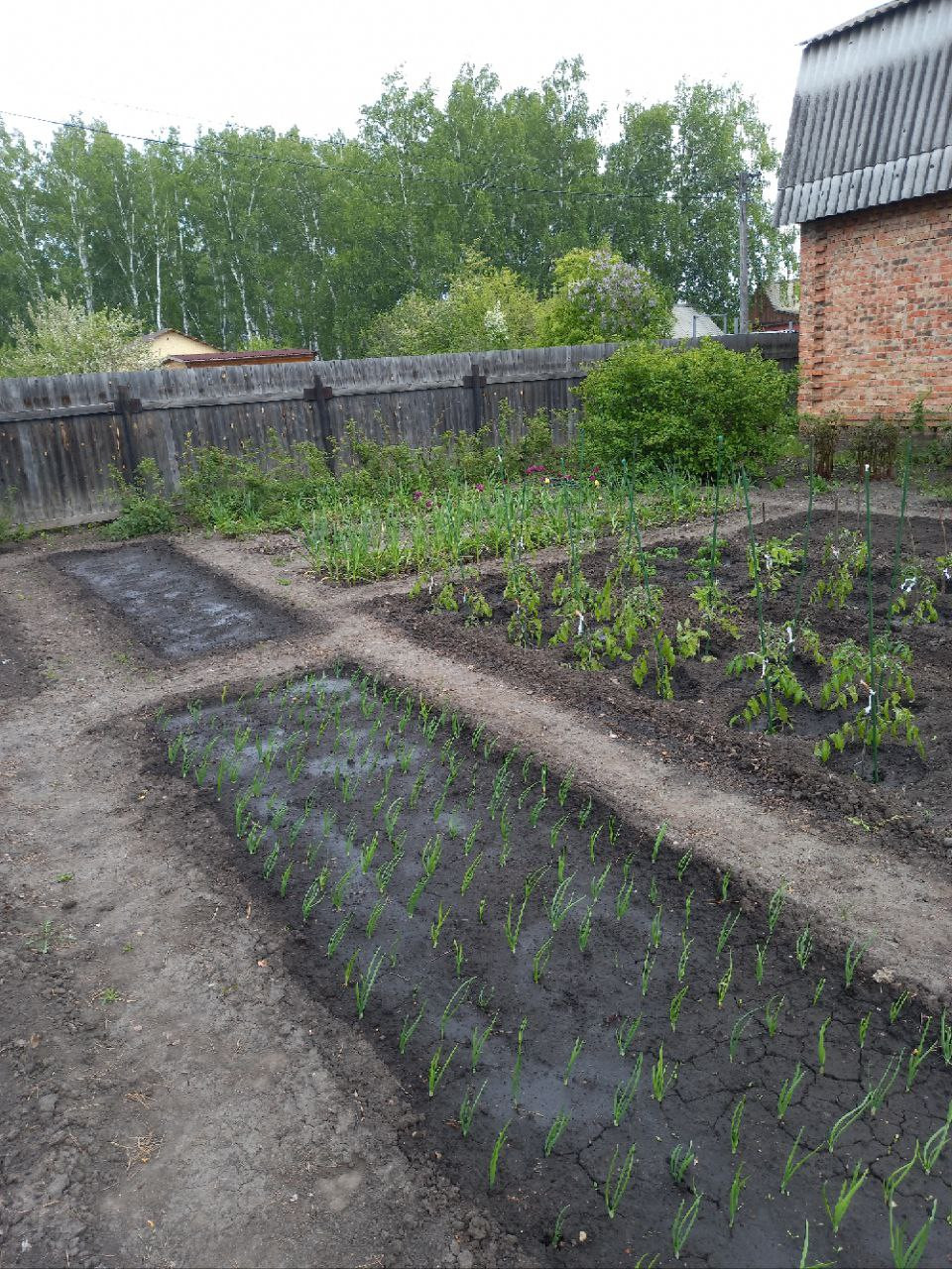 Участок ухоженный, по периметру посадки: смородина, малина, яблоня, вишня, земляника, грядки под овощи.