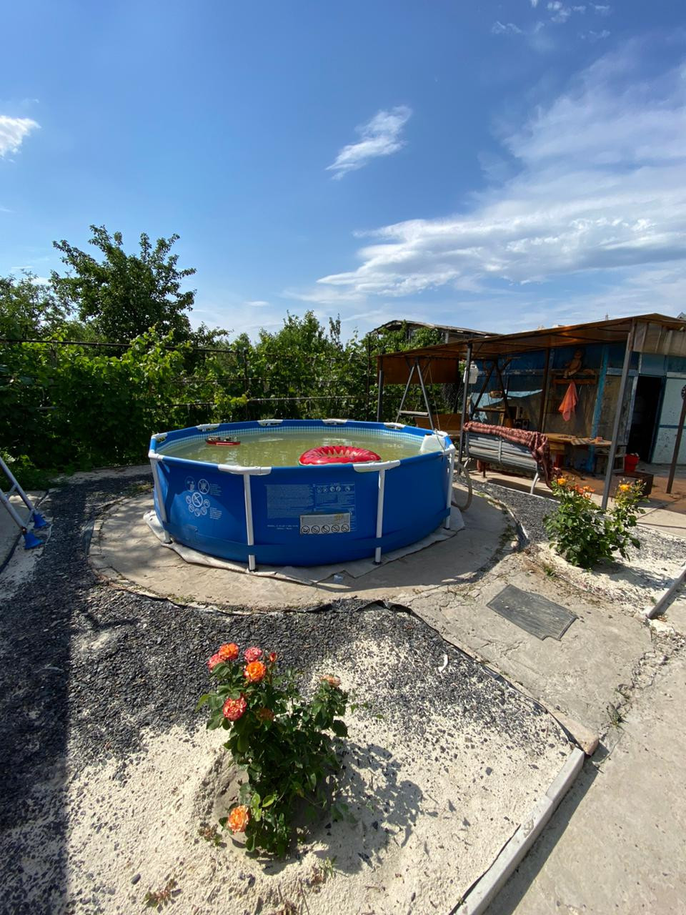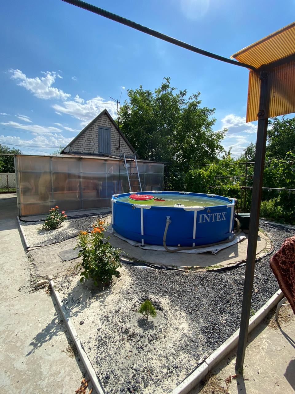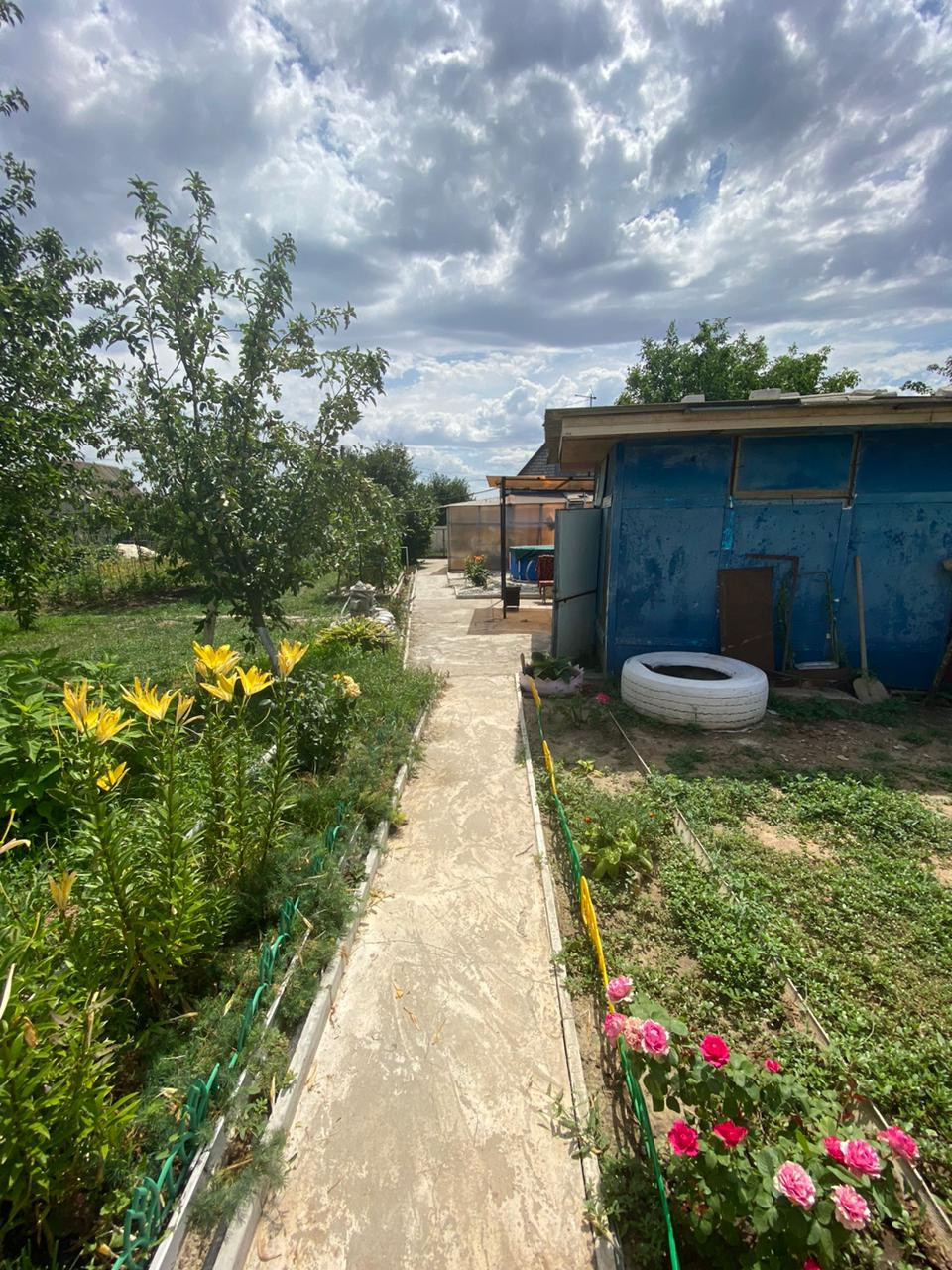 Много различных цветов ,на участке туалет,душ,хоз постройка, теплица,заезд под автомобиль .Площадка под бассейн,беседка ,качели .Всё сделано с любовью под свою семью .