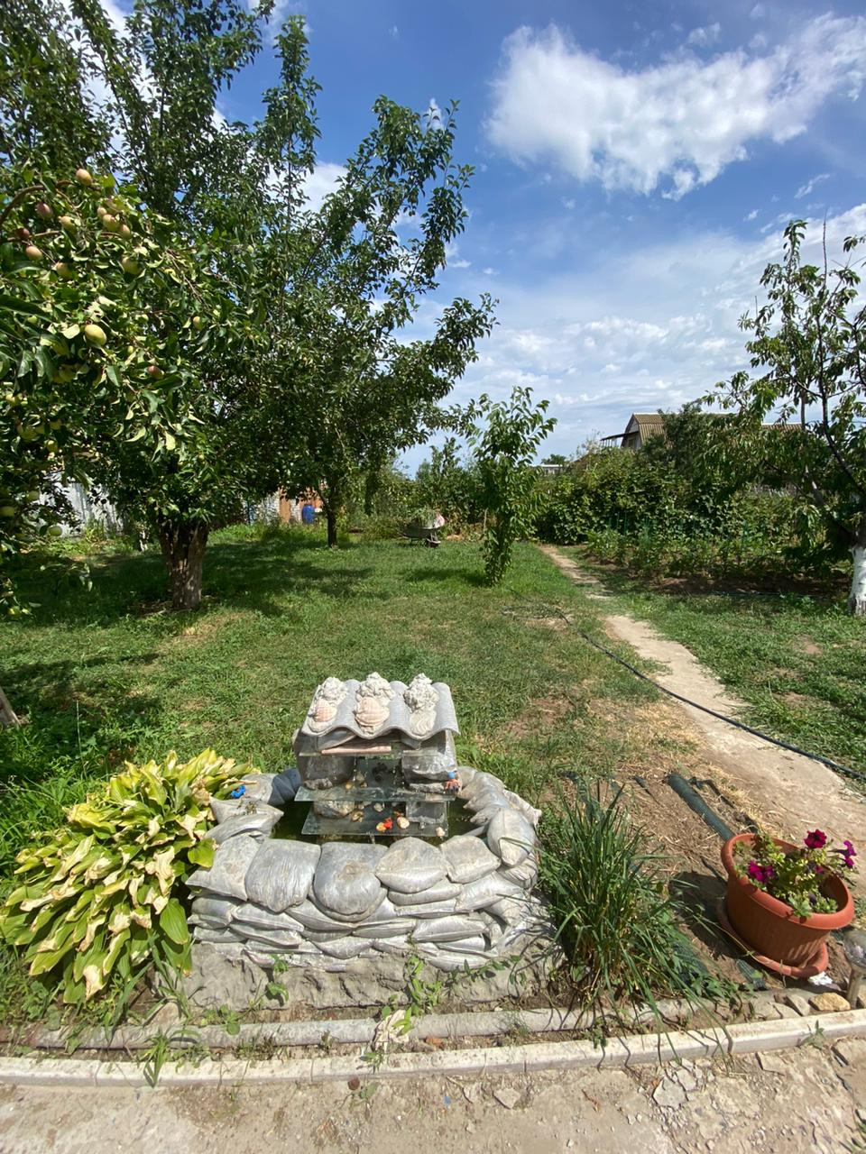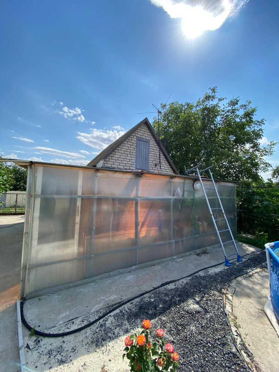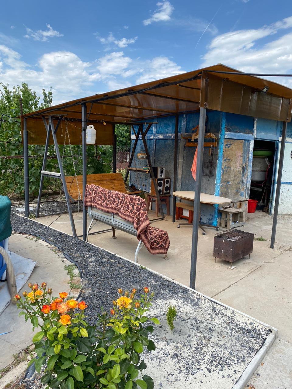 Много различных цветов ,на участке туалет,душ,хоз постройка, теплица,заезд под автомобиль .Площадка под бассейн,беседка ,качели .Всё сделано с любовью под свою семью .