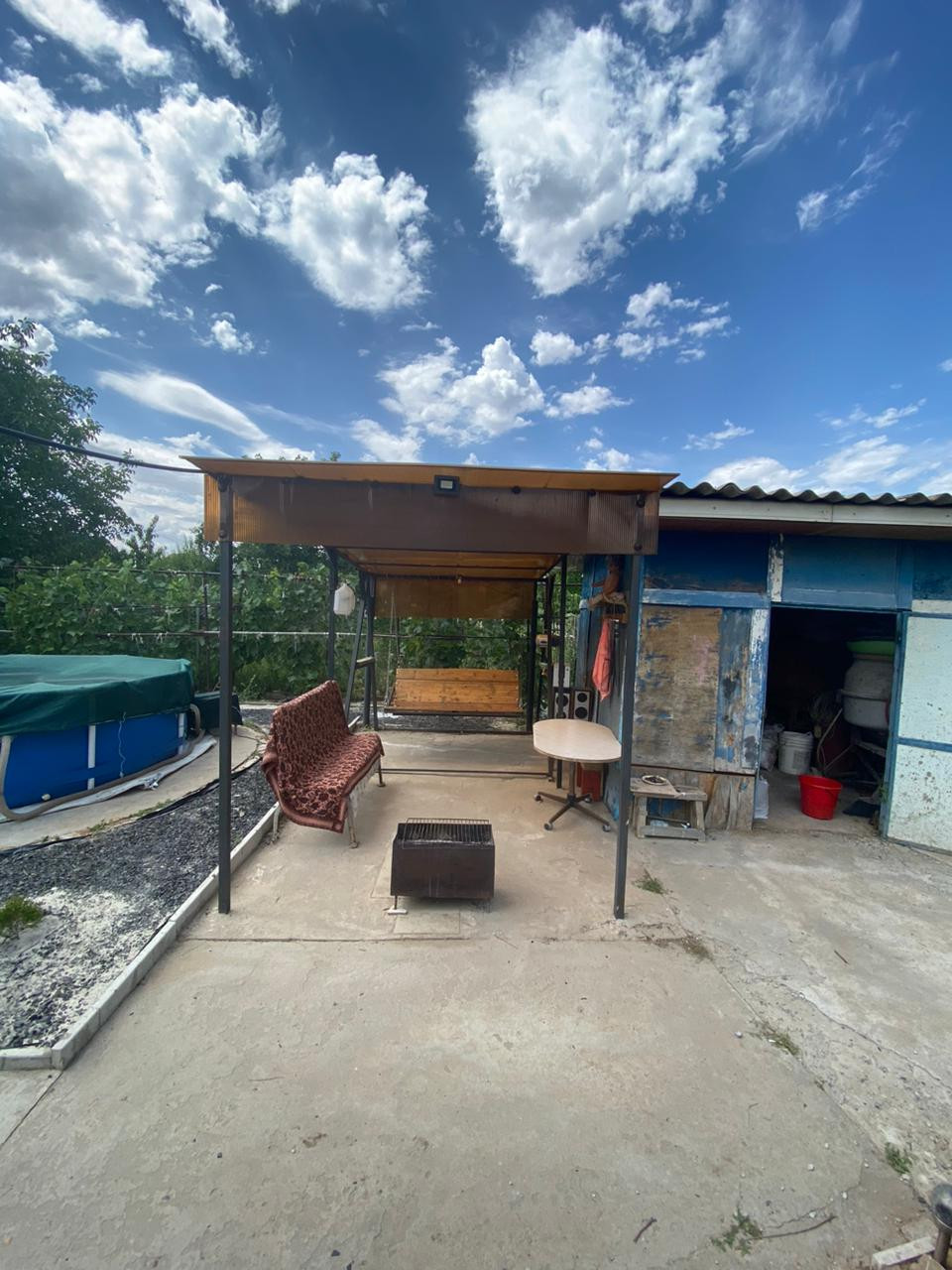 Оставляем бассейн , газовую плиту хорошую рабочую с рабочей духовкой два газовых баллона ,две плитки электрические ,микроволновую печь ,чайник, два стареньких но рабочих холодильника ,кондиционер в доме ,два телевизора .Продаём в связи с переездом.  Газ рядом, при желании можно провести.