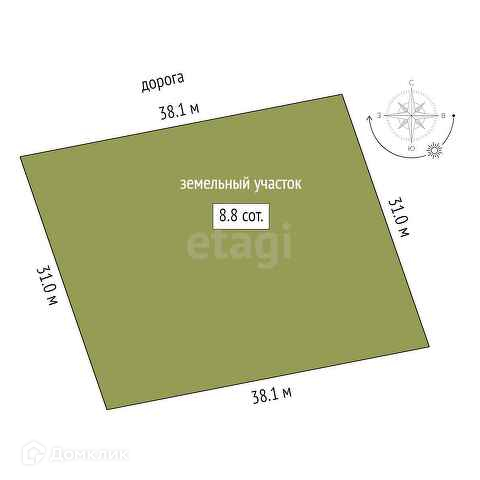 Площадь участка 8.8 сот.