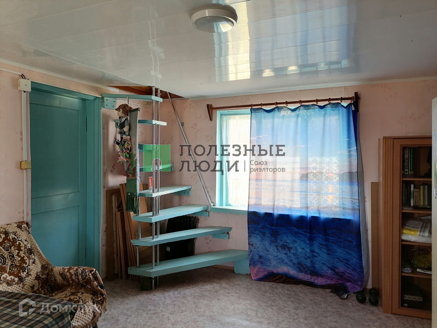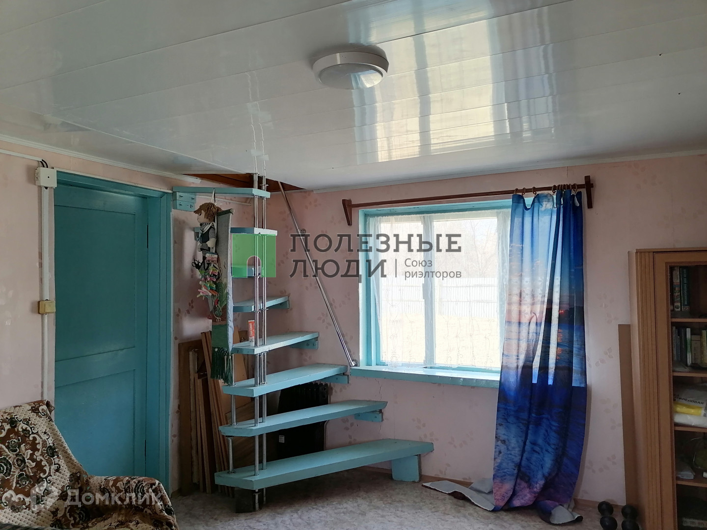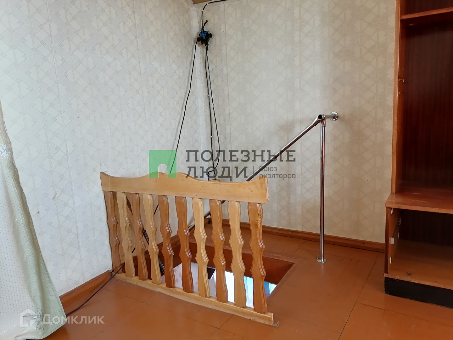 на стенах обои, на полу линолеум. на втором этаже паркет.