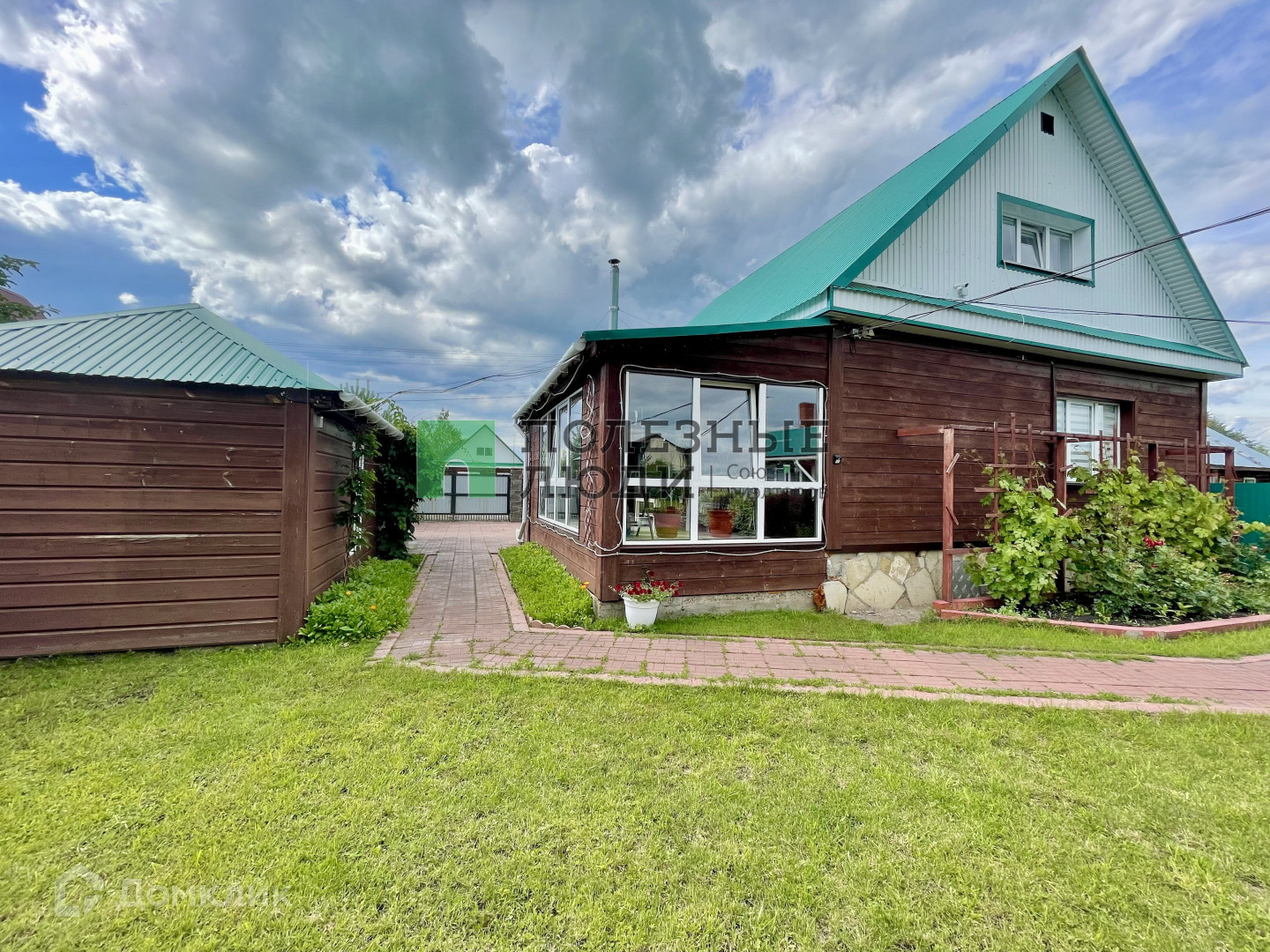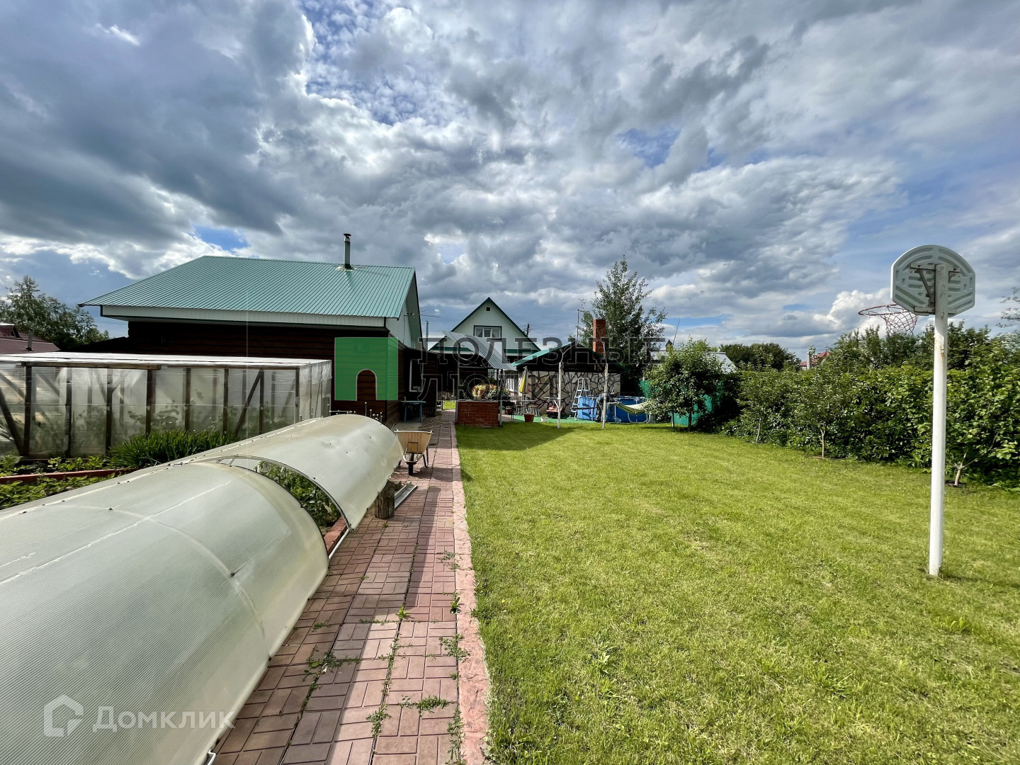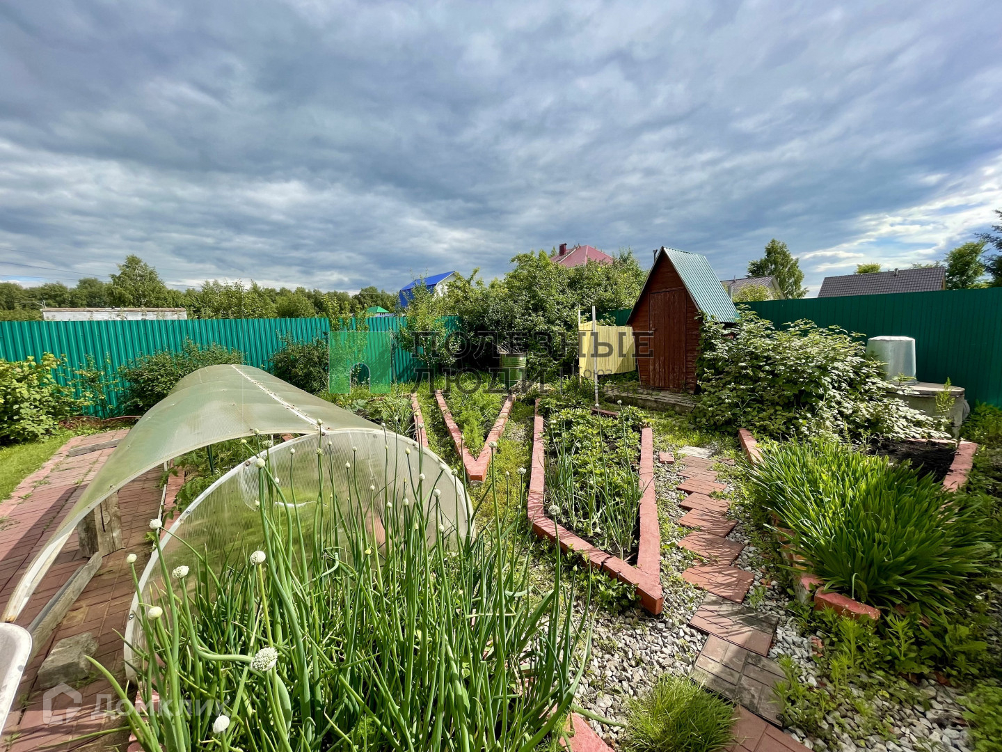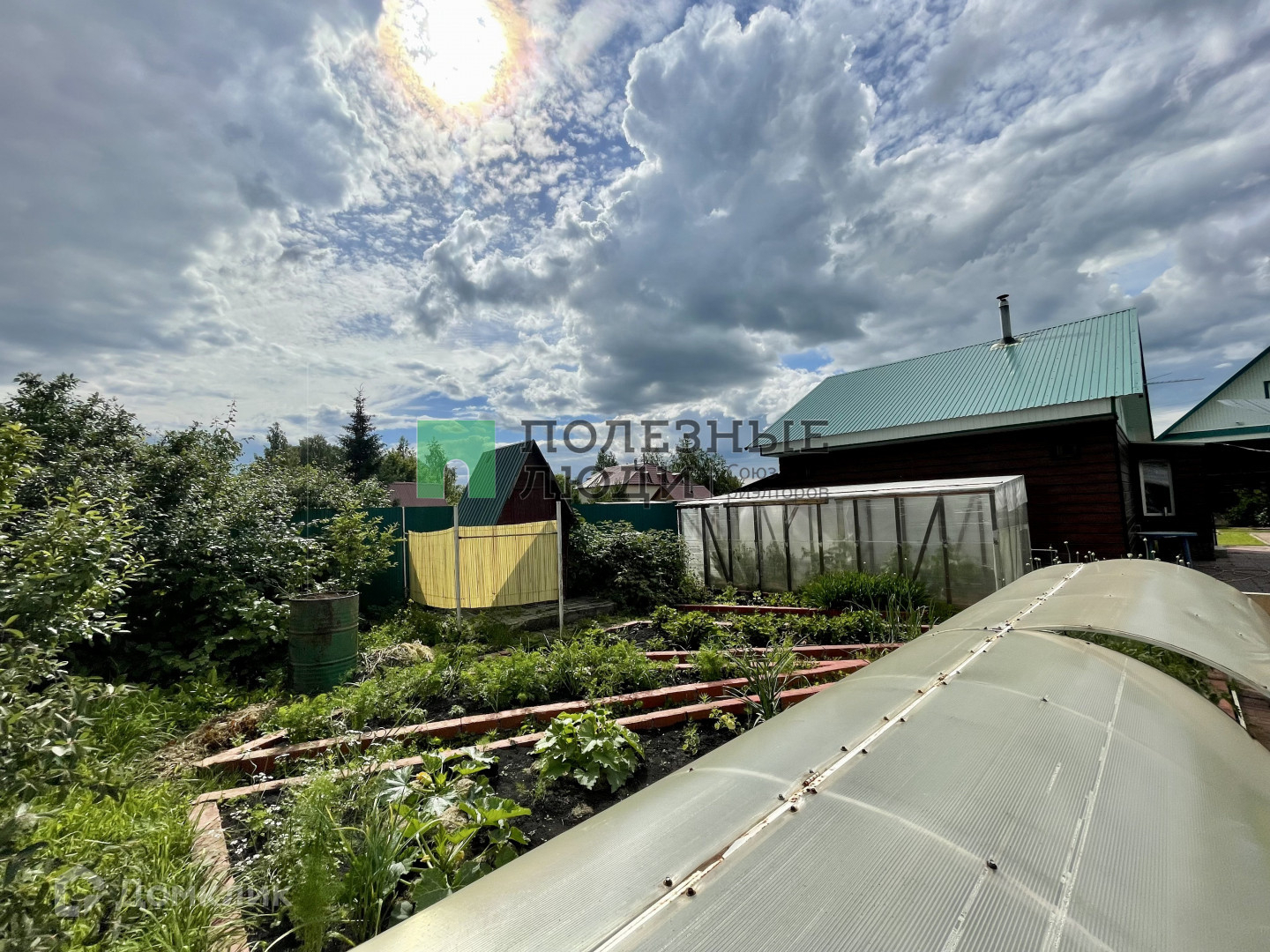 На участке есть теплица, ухоженный цветник, клубника, яблони, абрикосы - все они уже дают свои плоды.