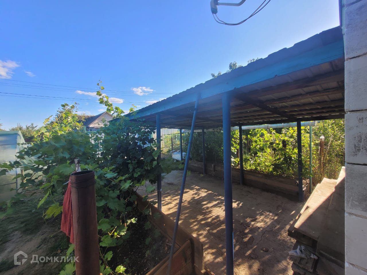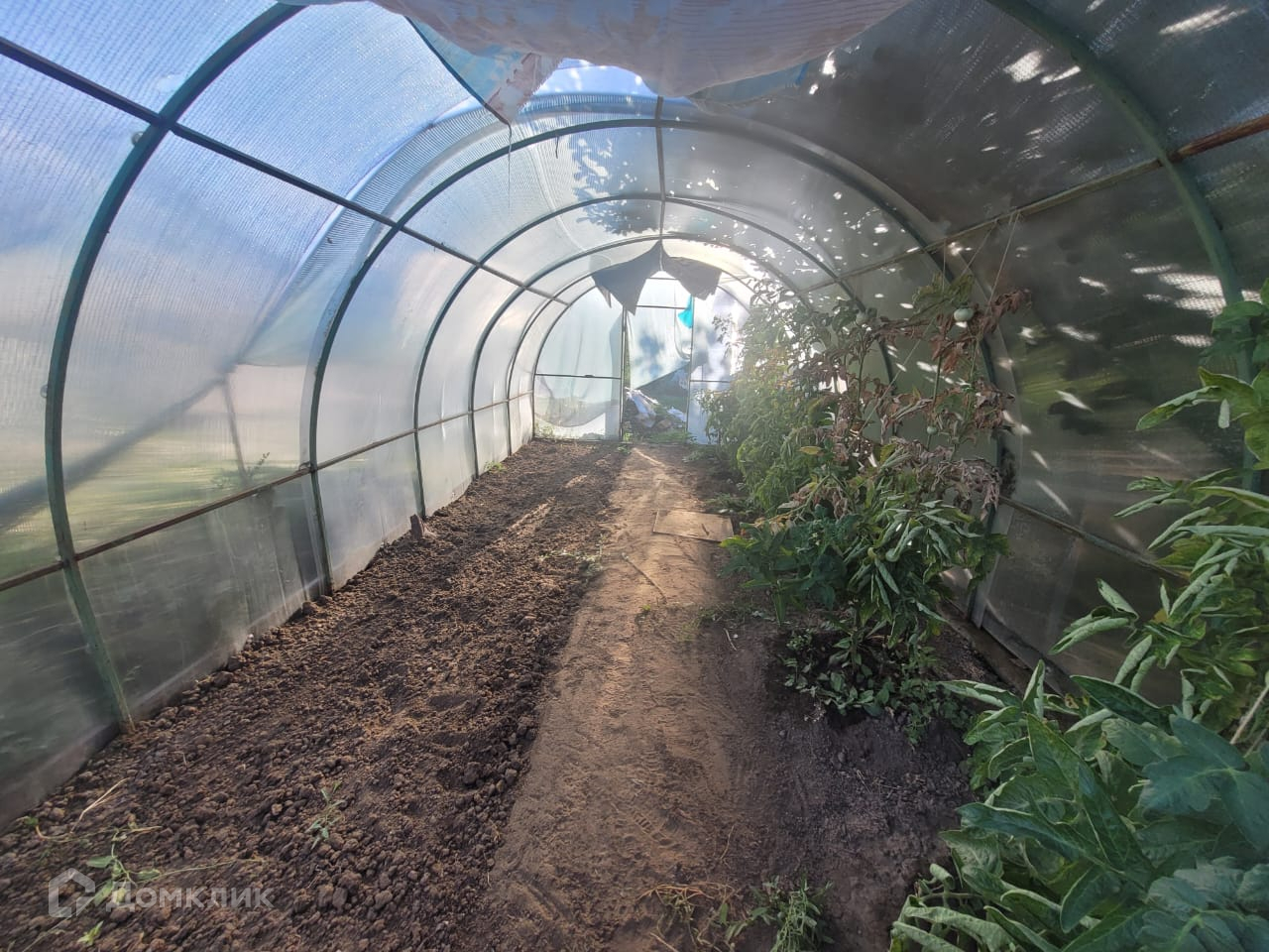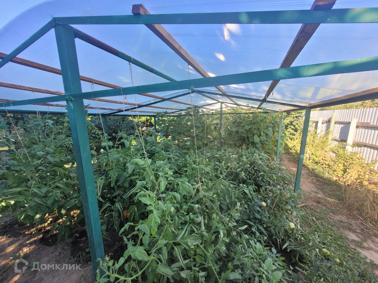 Дом с возможностью круглогодичного проживания. Навес для машины. Закрытая и открытая теплица. Емкость для воды. Плодовые деревья и виноград.