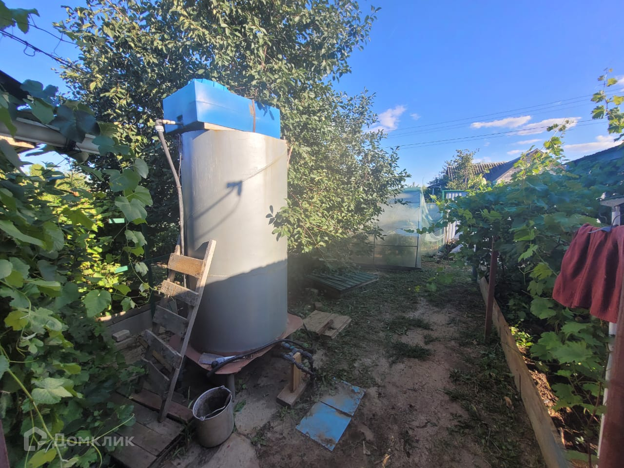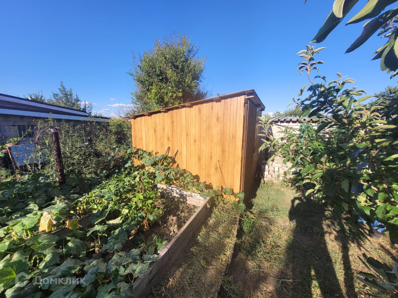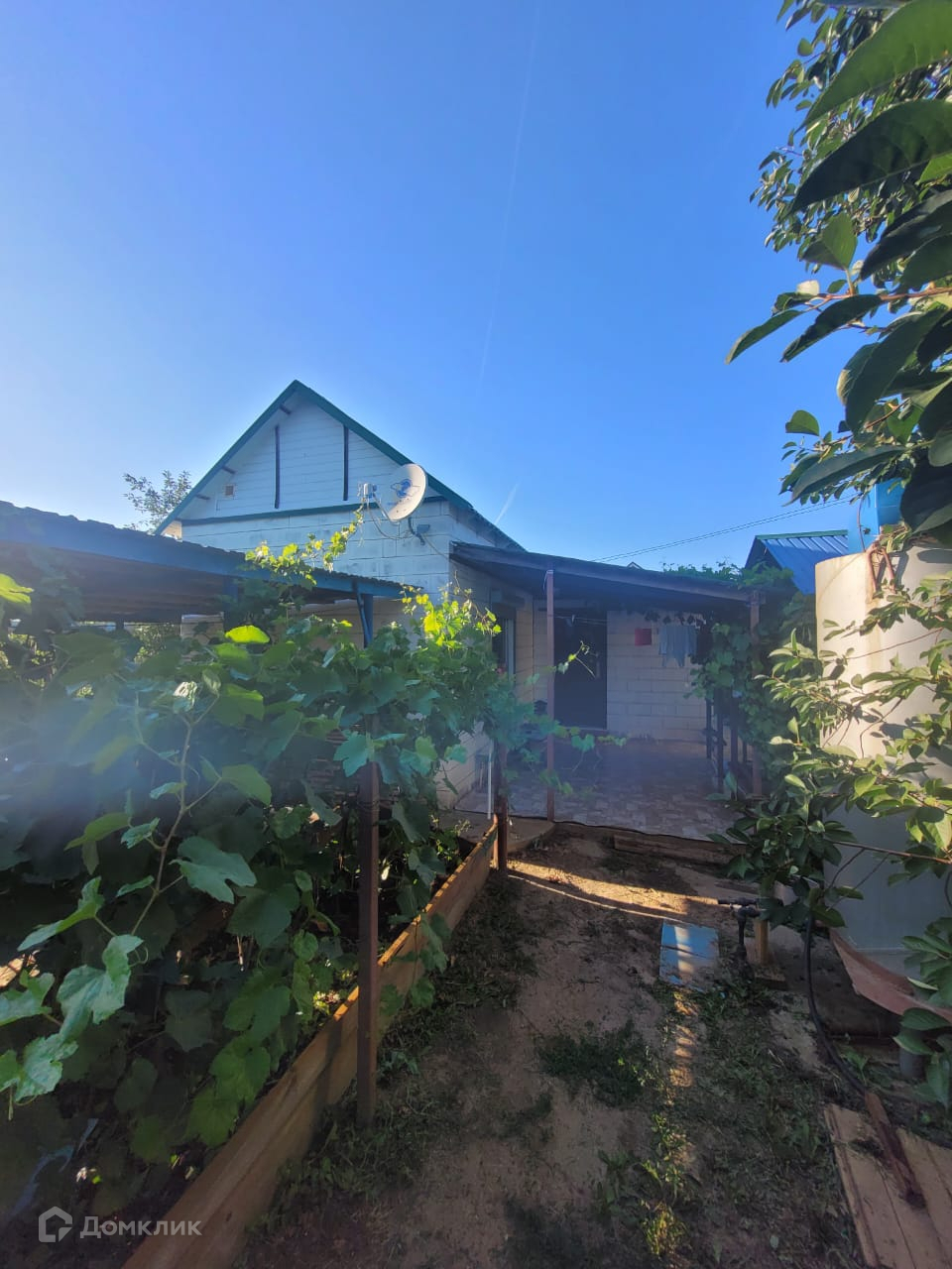 Дом с возможностью круглогодичного проживания. Навес для машины. Закрытая и открытая теплица. Емкость для воды. Плодовые деревья и виноград.