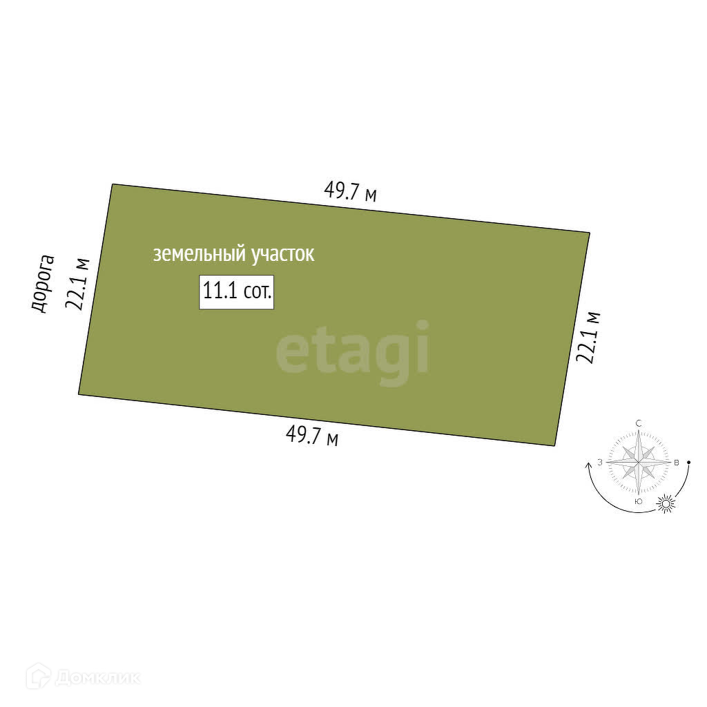 Площадь участка 11.1 сот.