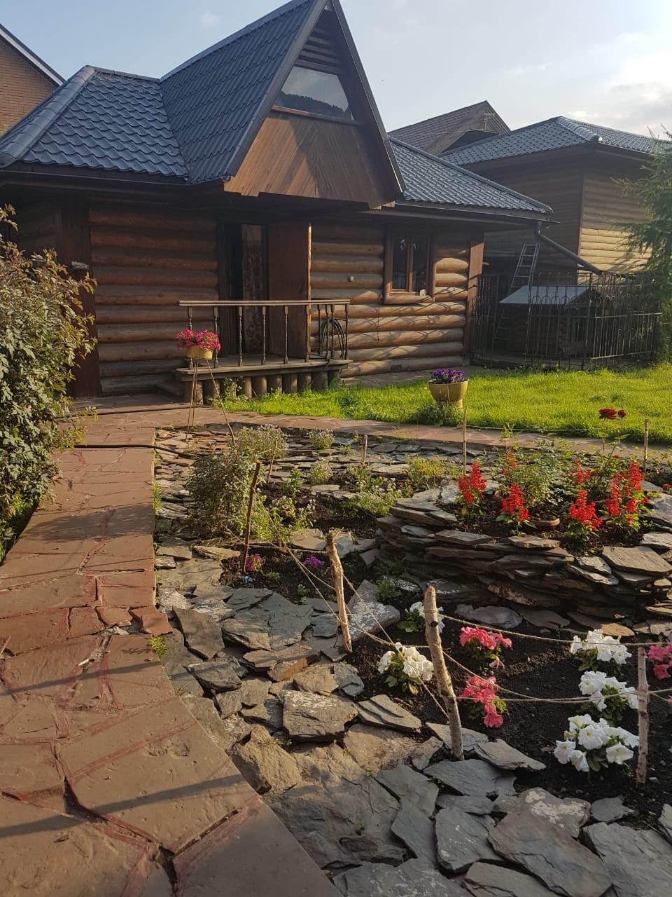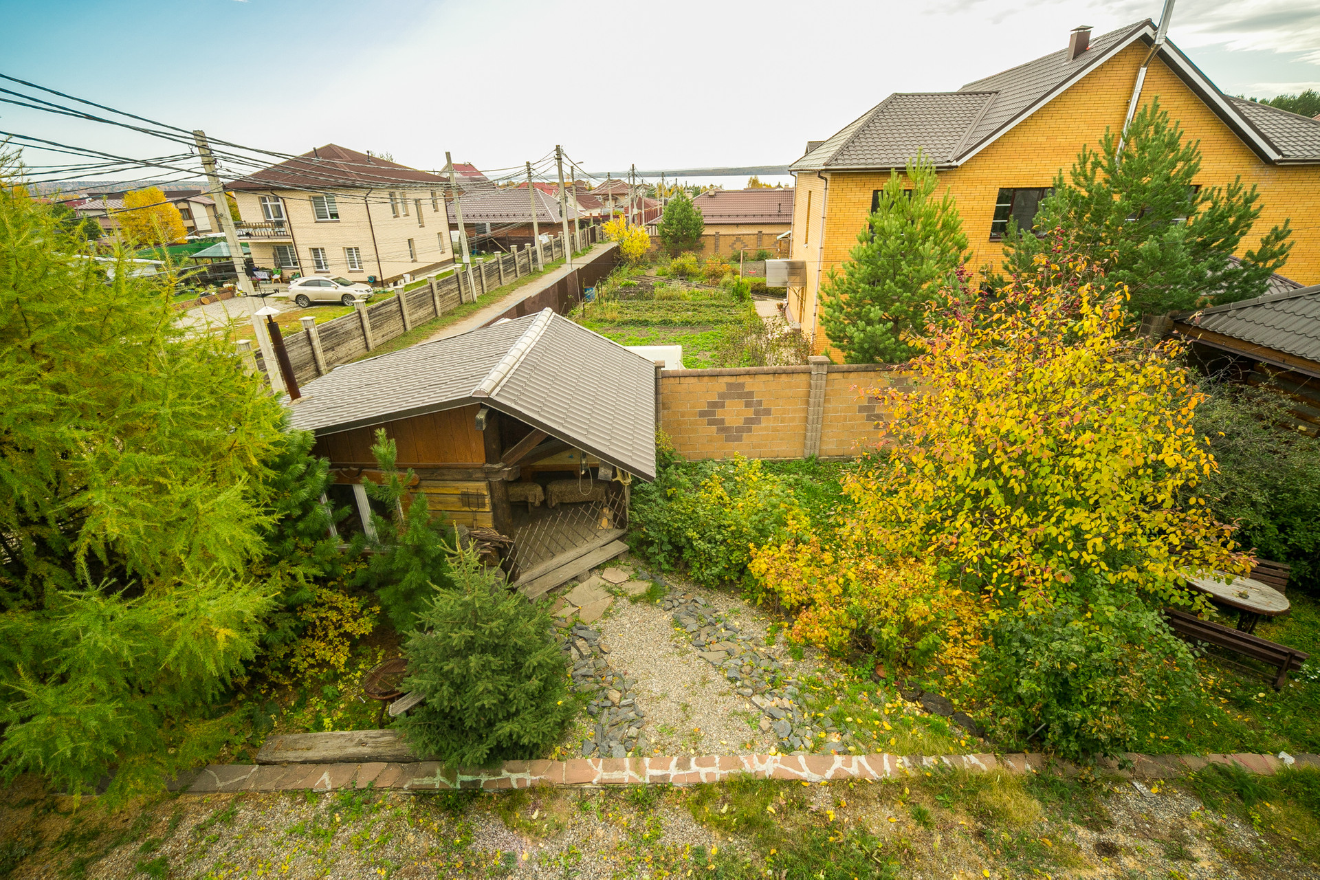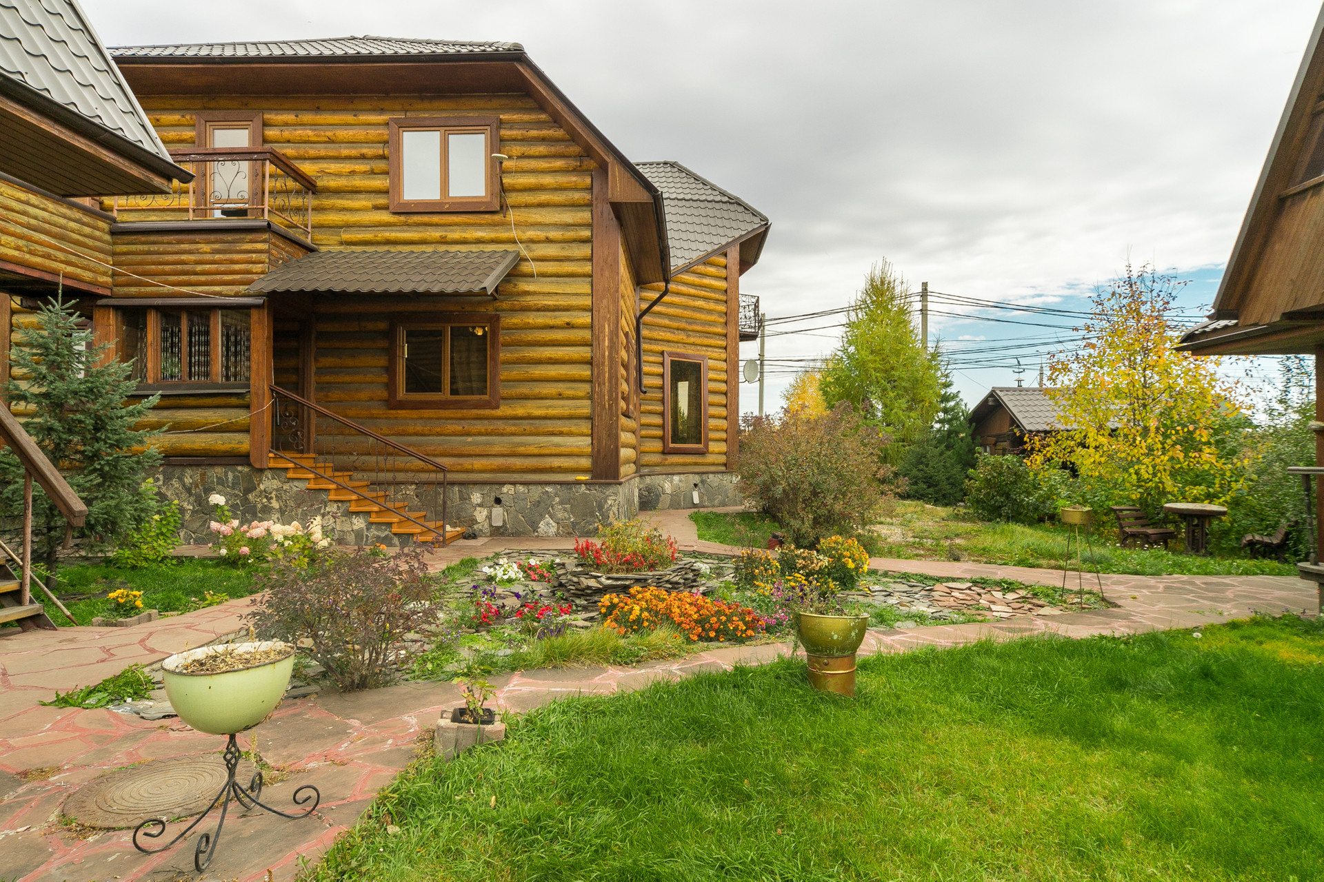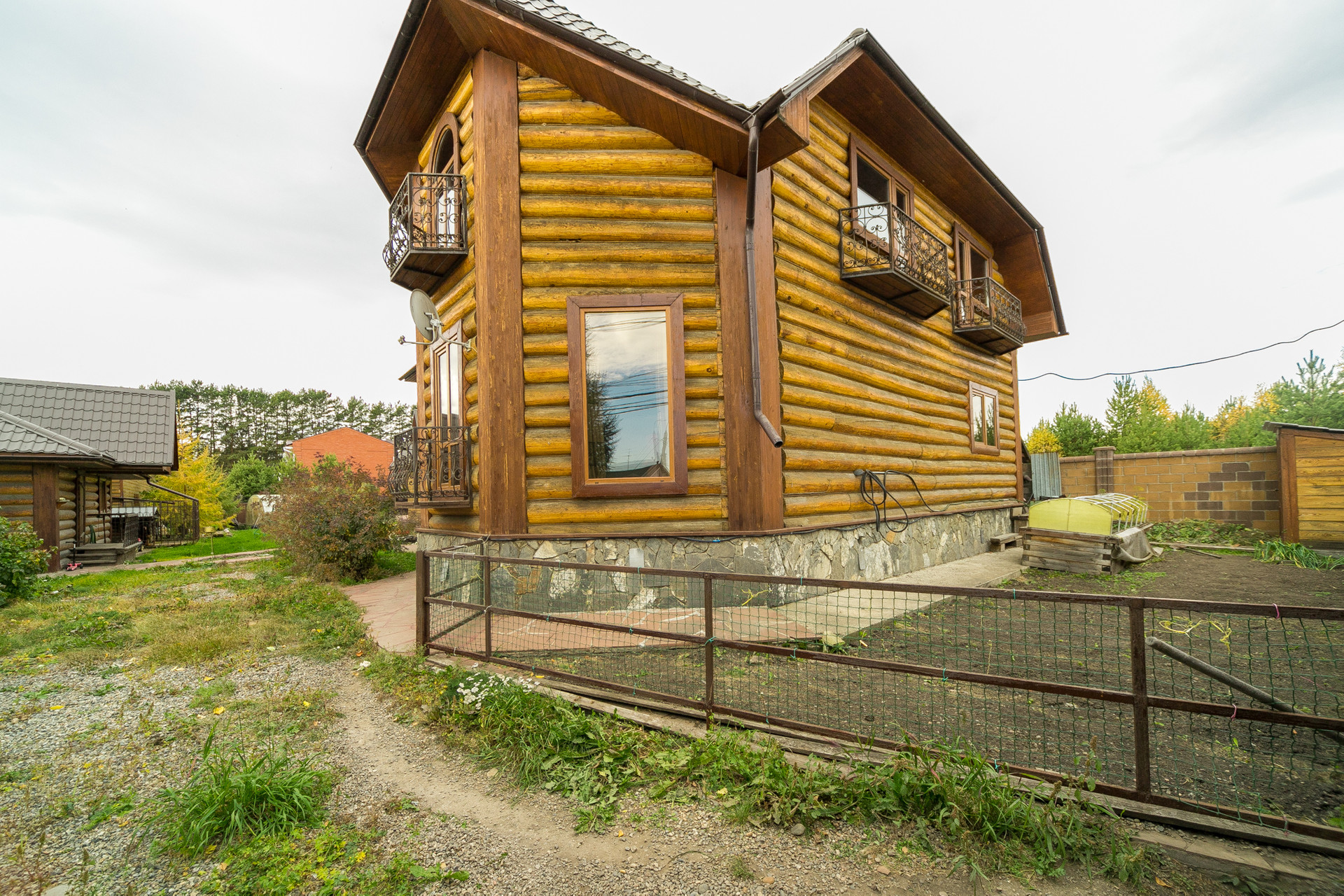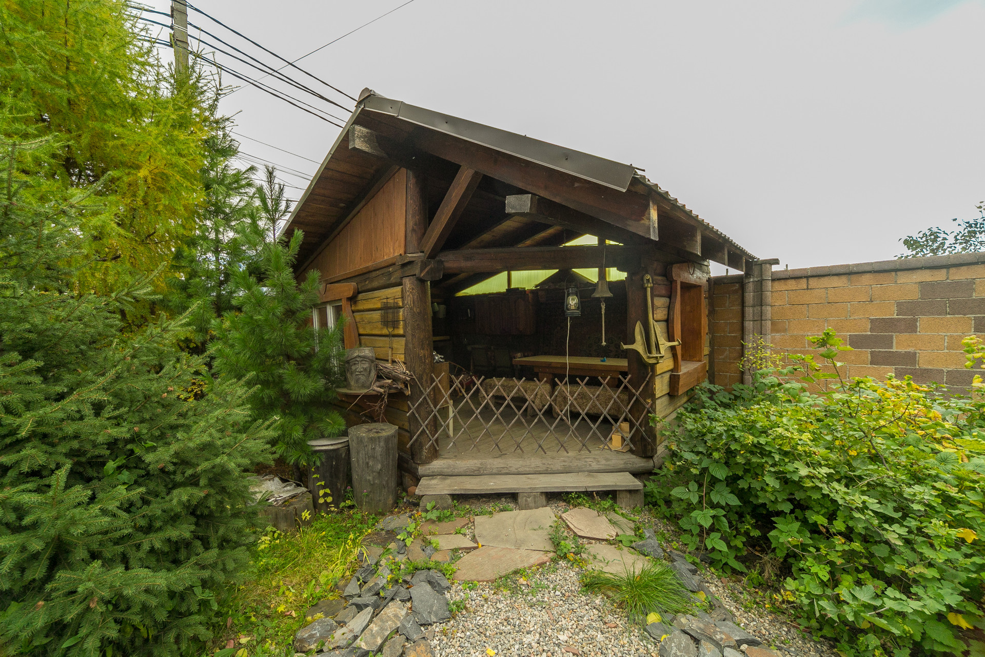 На участке: баня с комнатой отдыха, гараж для корабля (въезд с улицы), гараж на два автомобиля (с жилым помещением и переходом в дом), обустроенный вольер для собаки, теплица, скважина, септик, садовая зона, где много деревьев и кустарников (вишня, яблоня, смородина, малина), зона огорода, зона отдыха с Ретро-беседкой и лесным уголком (ёлки, кедры, лиственница, пихта), шикарный газон, всё сделано для расслабляющего отдыха после городской суеты.