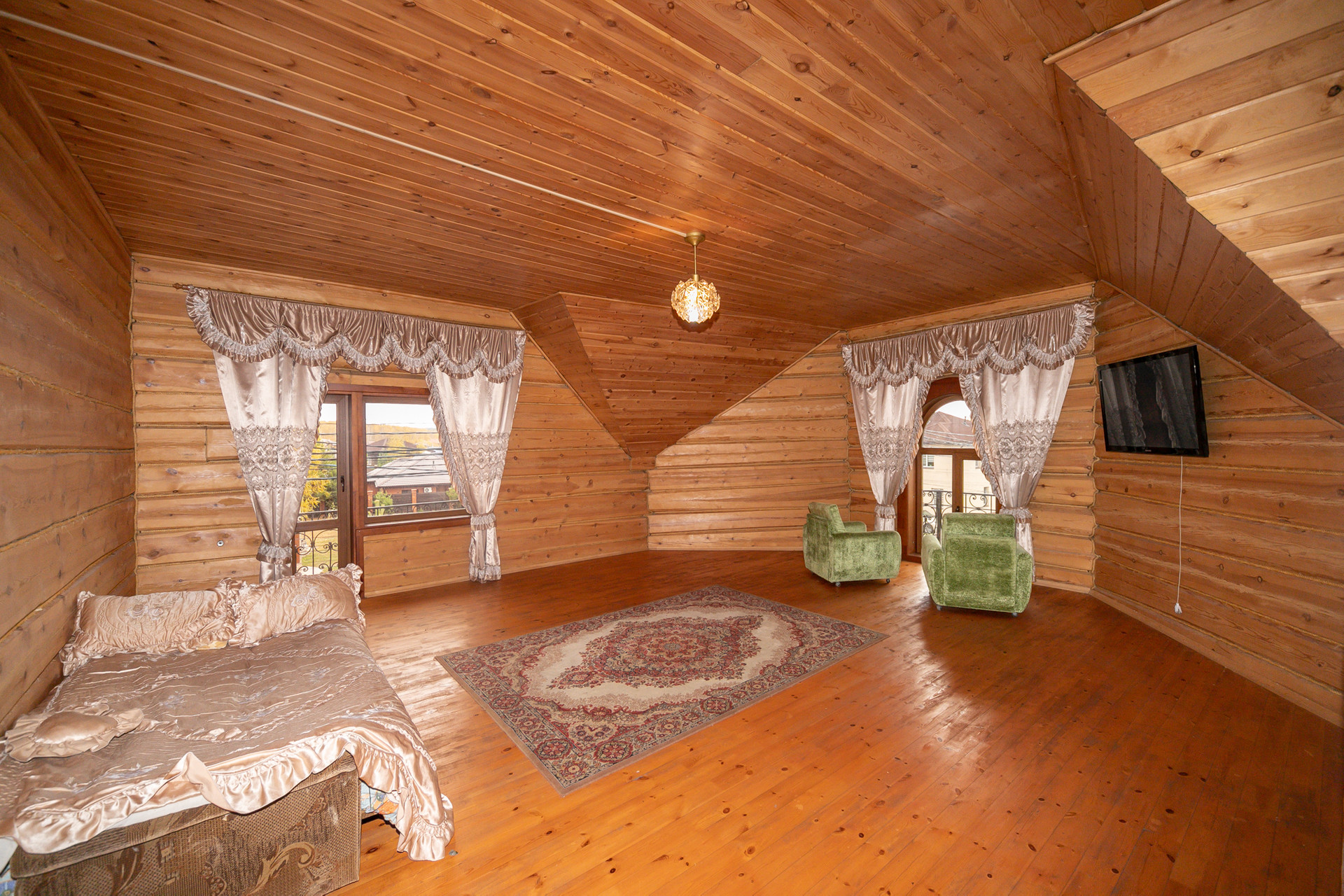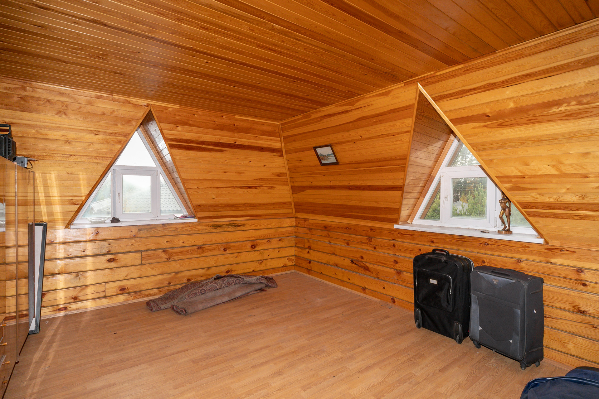 На втором этаже (мансарда): три комнаты.
