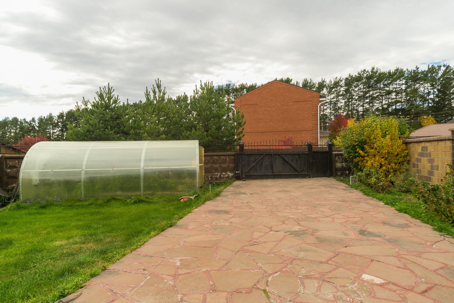 Участок огорожен по периметру, ворота электрические. Дорога от города на машине занимает 10-15 минут. Охраняемая территория, ДПК небольшое, всего 10 домов, все соседи живут постоянно.