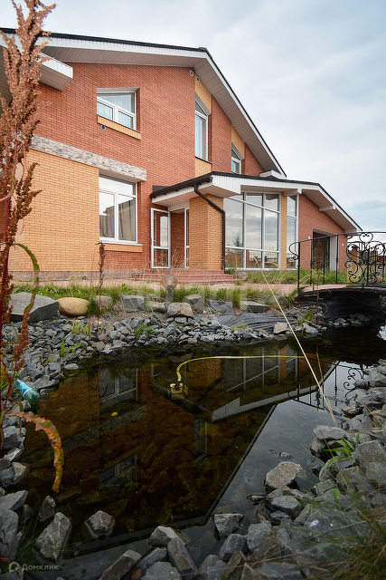 Участок 9 соток +-1 сотка. Сделан ландшафтный дизайн, пруд с мостиком, газон, дорожки , освещение.