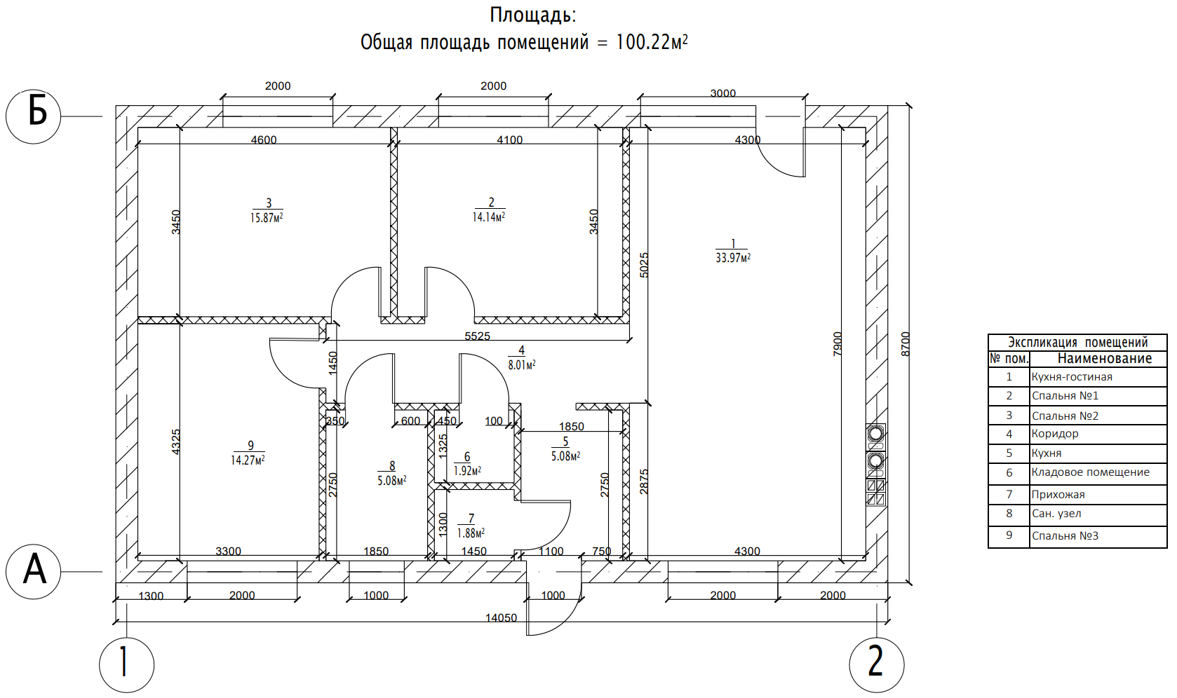 • Общая площадь – 100,22 м²;