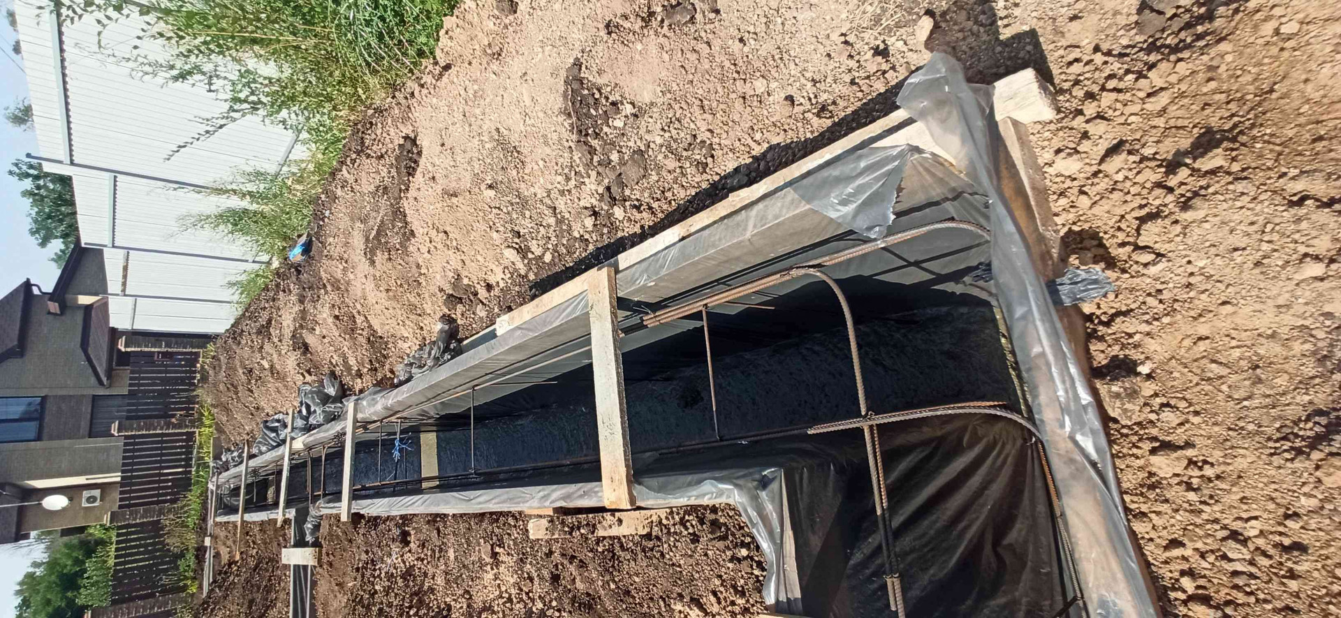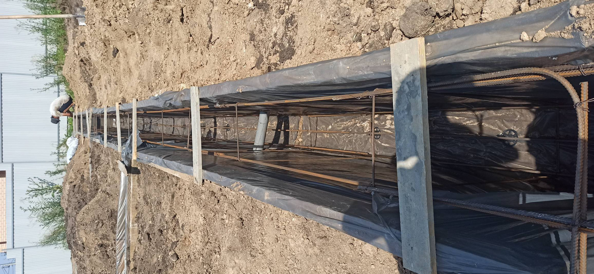 — фундамент железобетонный, наливной, ленточный, с цоколем из бутового кирпича;