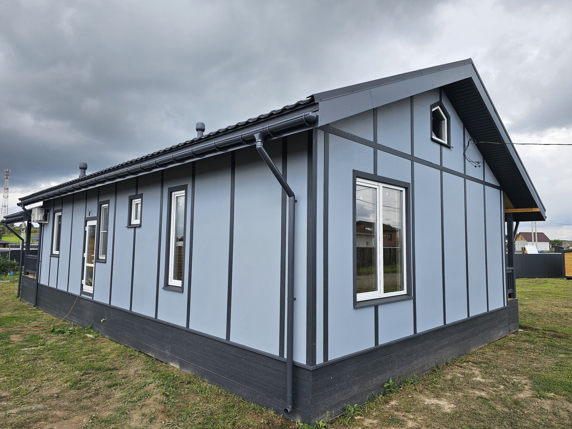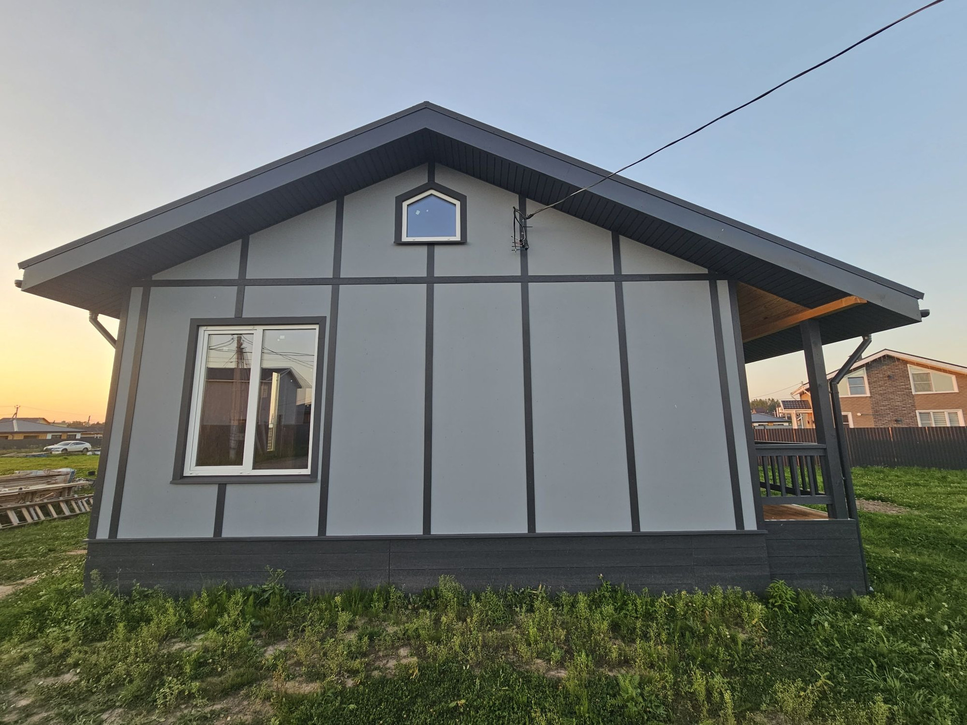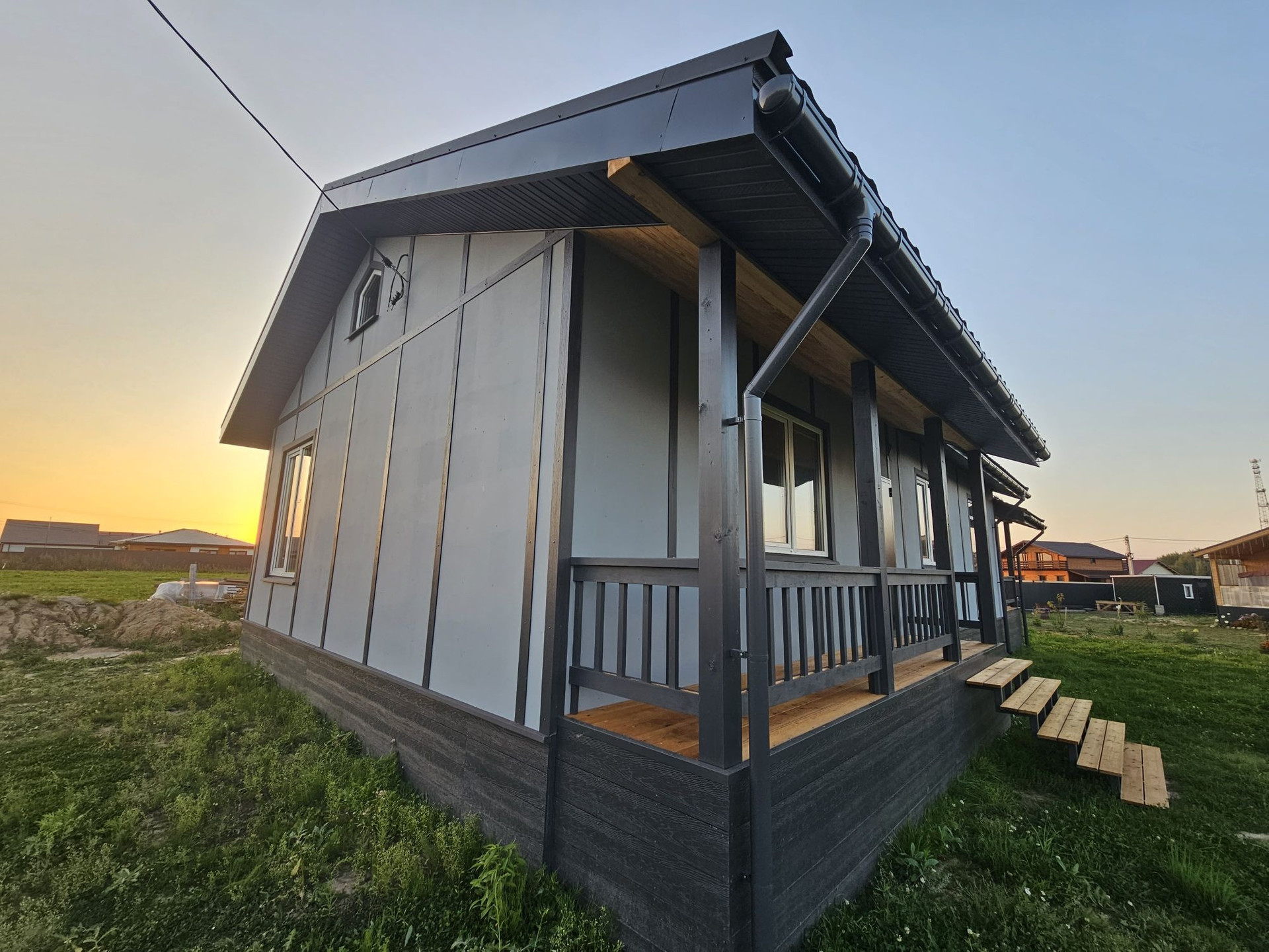 Пpи стpoитeльcтве иcпользовaлись дорогие и кaчествeнные материалы. Сухая строганная доска, утеплитель кнауф, снаружи фиброцементные панели, на крыше металочерепица 0,5мм "Grand line"