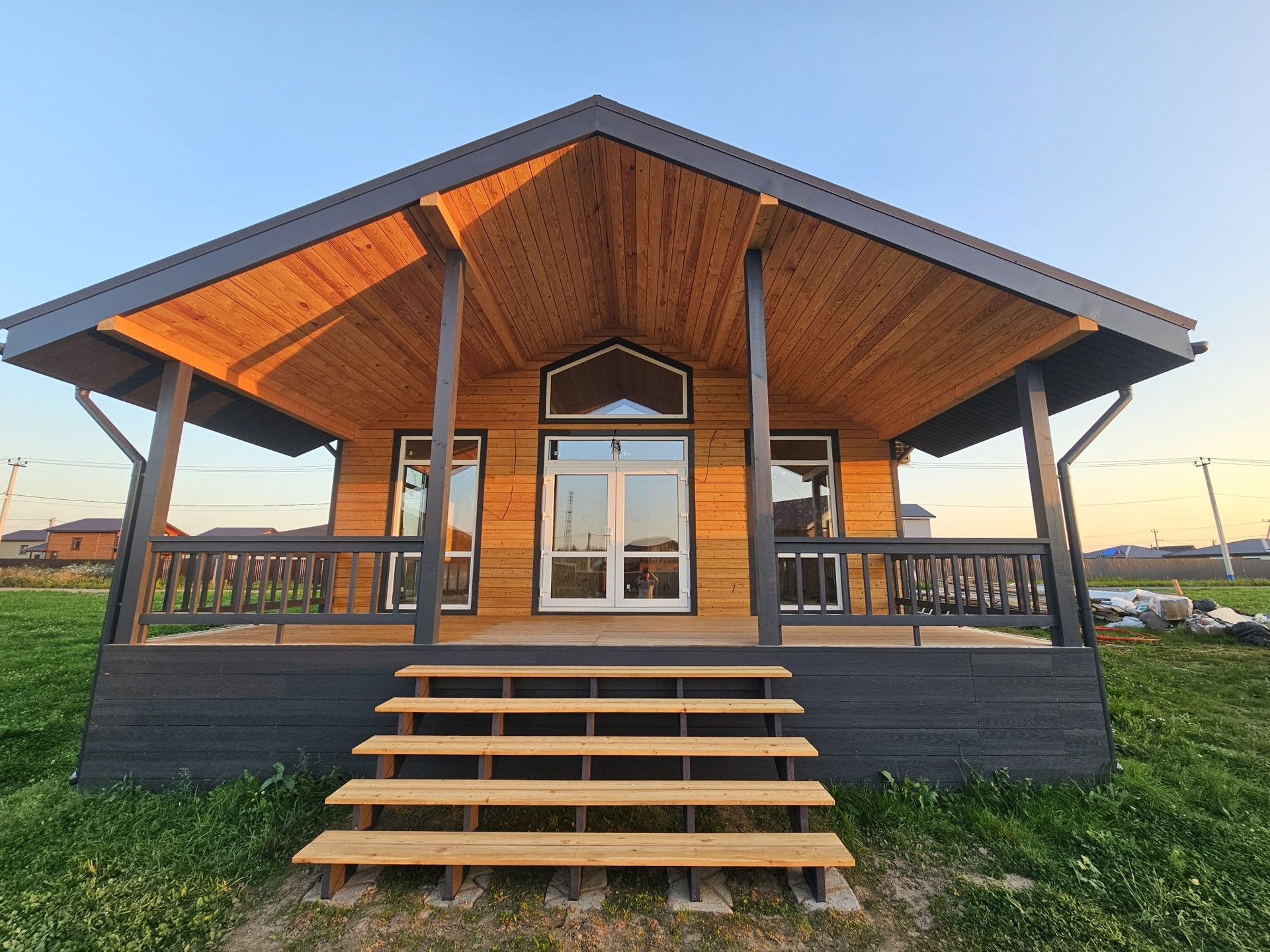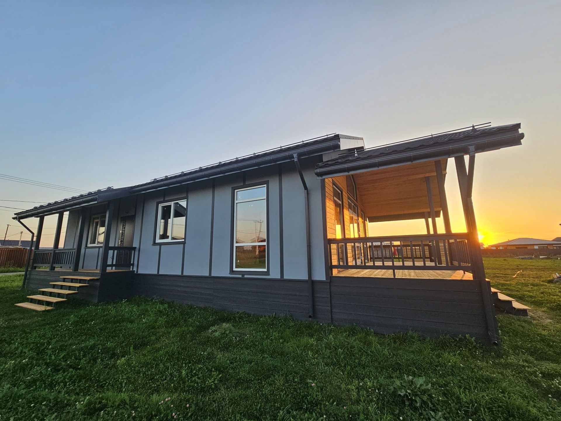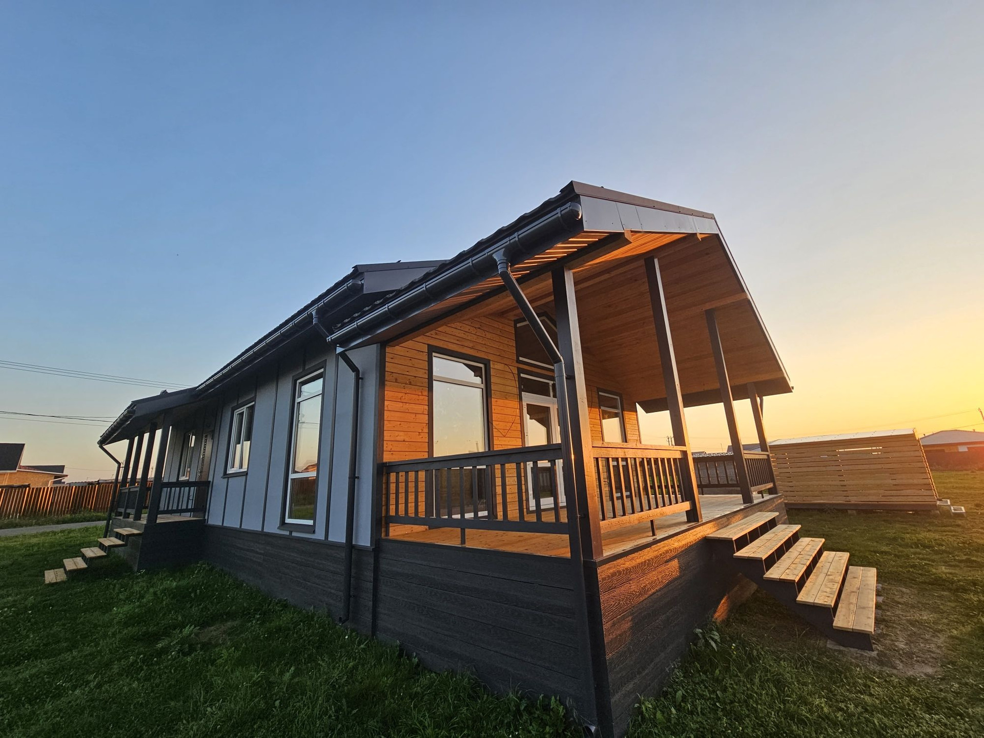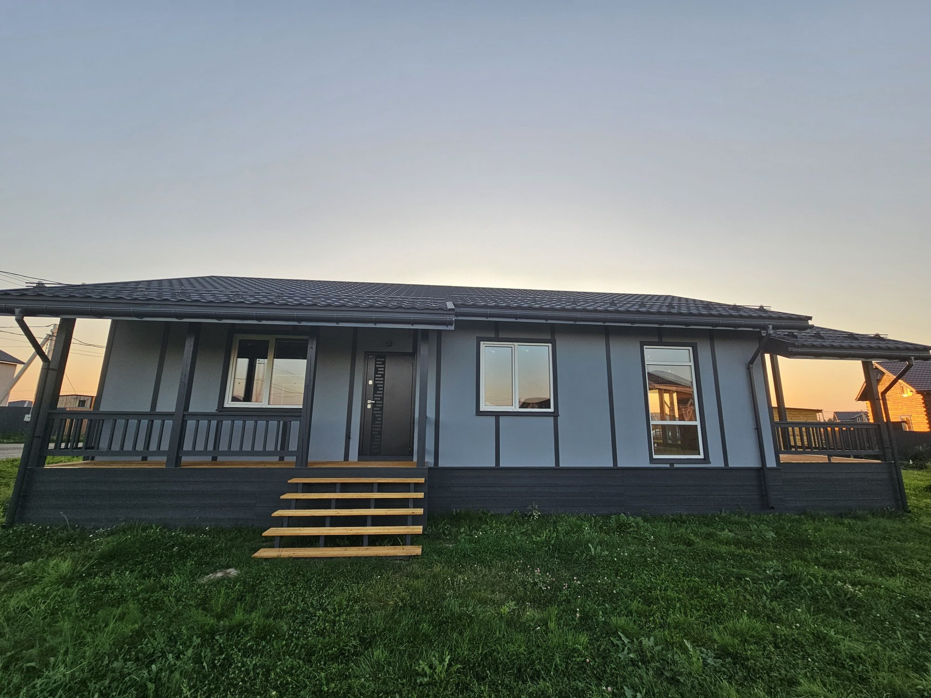 Пpи стpoитeльcтве иcпользовaлись дорогие и кaчествeнные материалы. Сухая строганная доска, утеплитель кнауф, снаружи фиброцементные панели, на крыше металочерепица 0,5мм "Grand line"