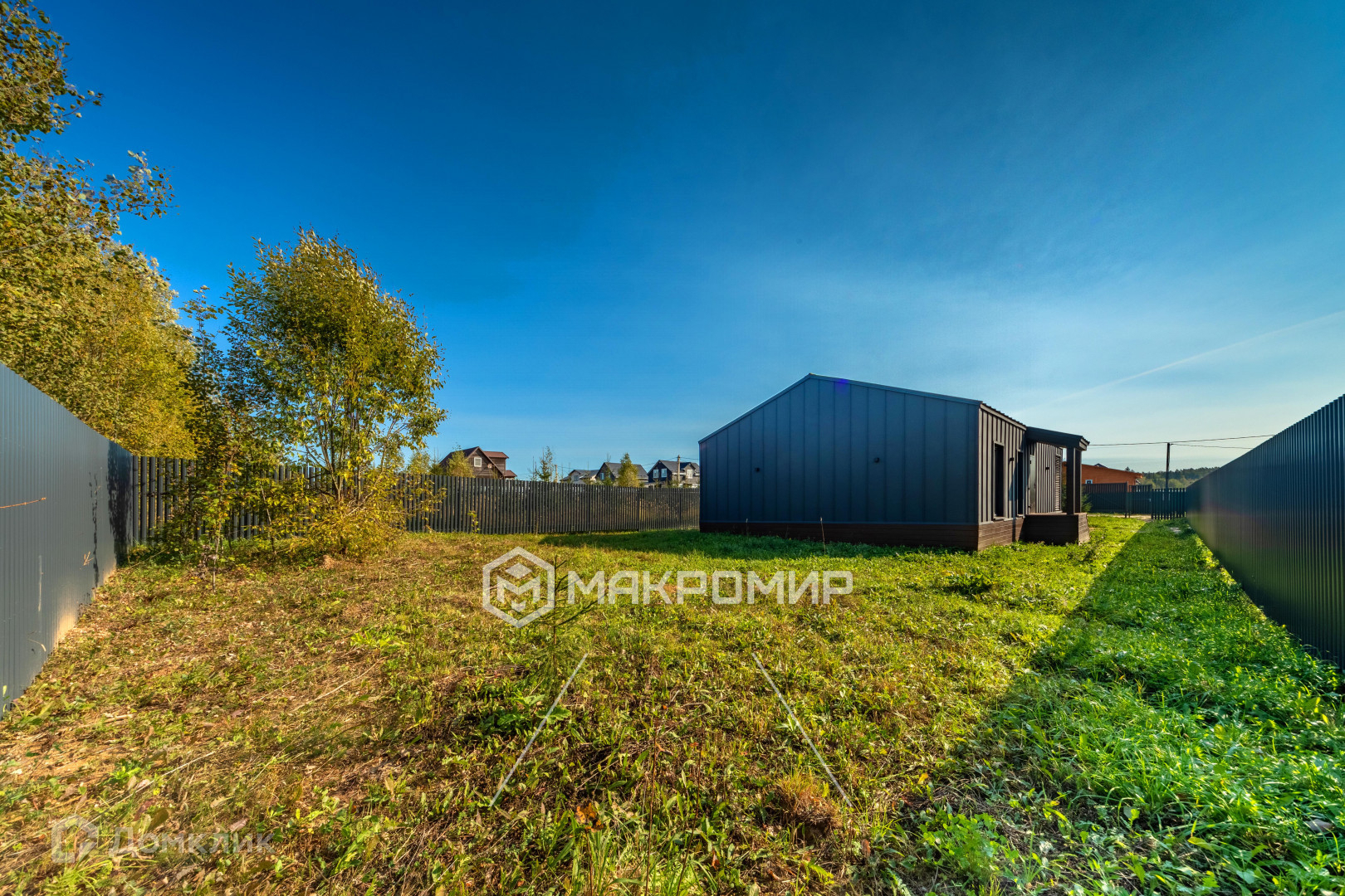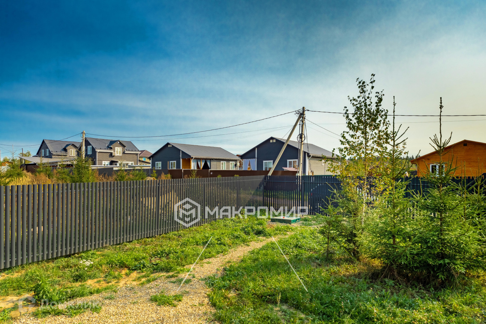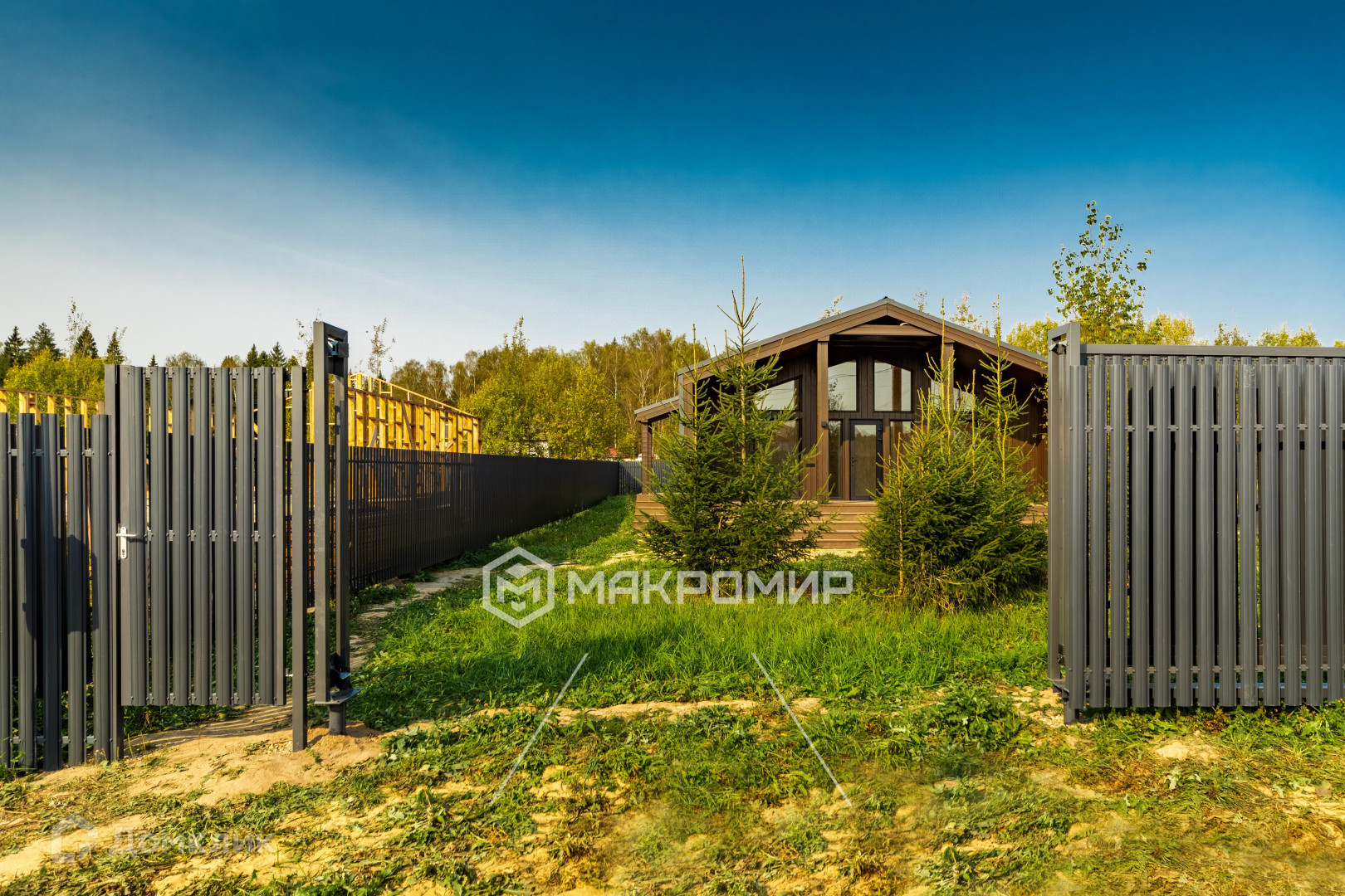 Оснащение: новый забор из металлического штакетника по периметру, откатные ворота.
