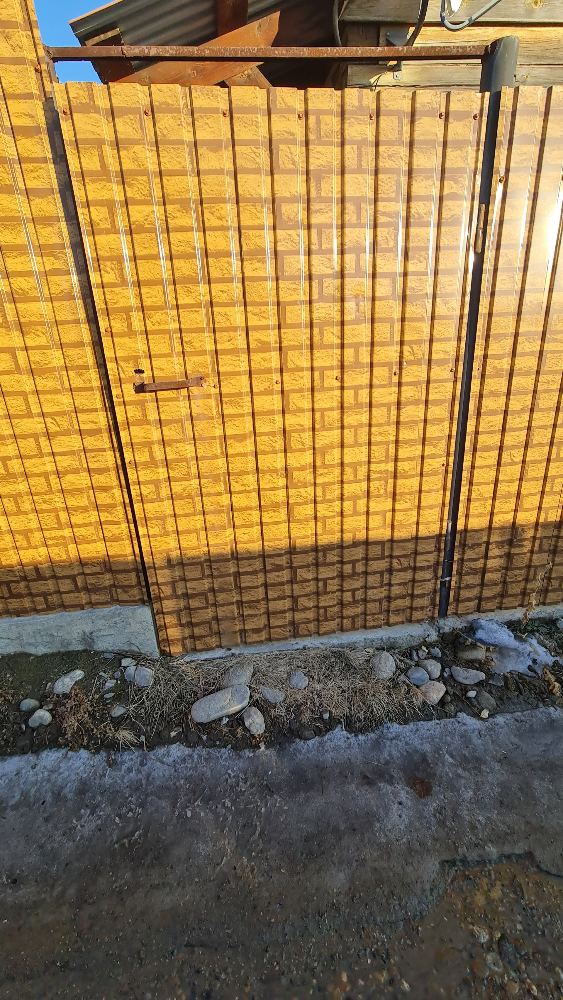 -ЕСТЬ МЕСТО ПОД ГАРАЖ, ворота откатные, забор из профлиста на фундаменте..