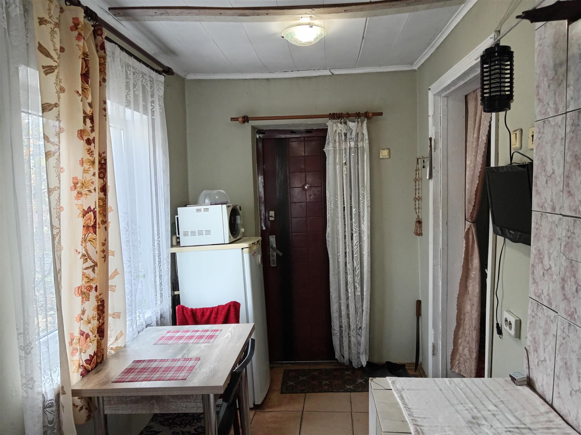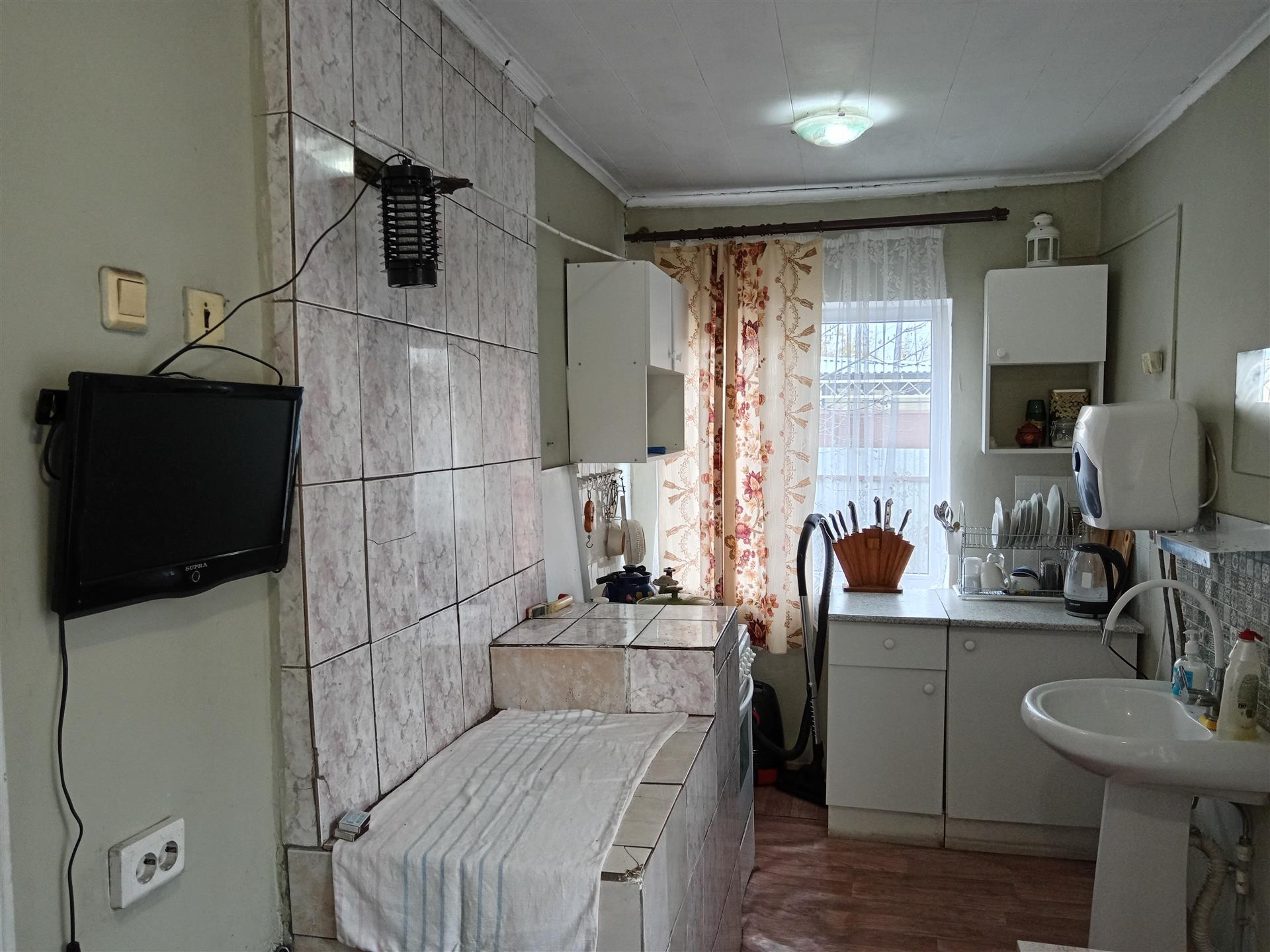 В доме две комнаты, кухня,санузел с водонагревателем,отопление печное и электрическое.
