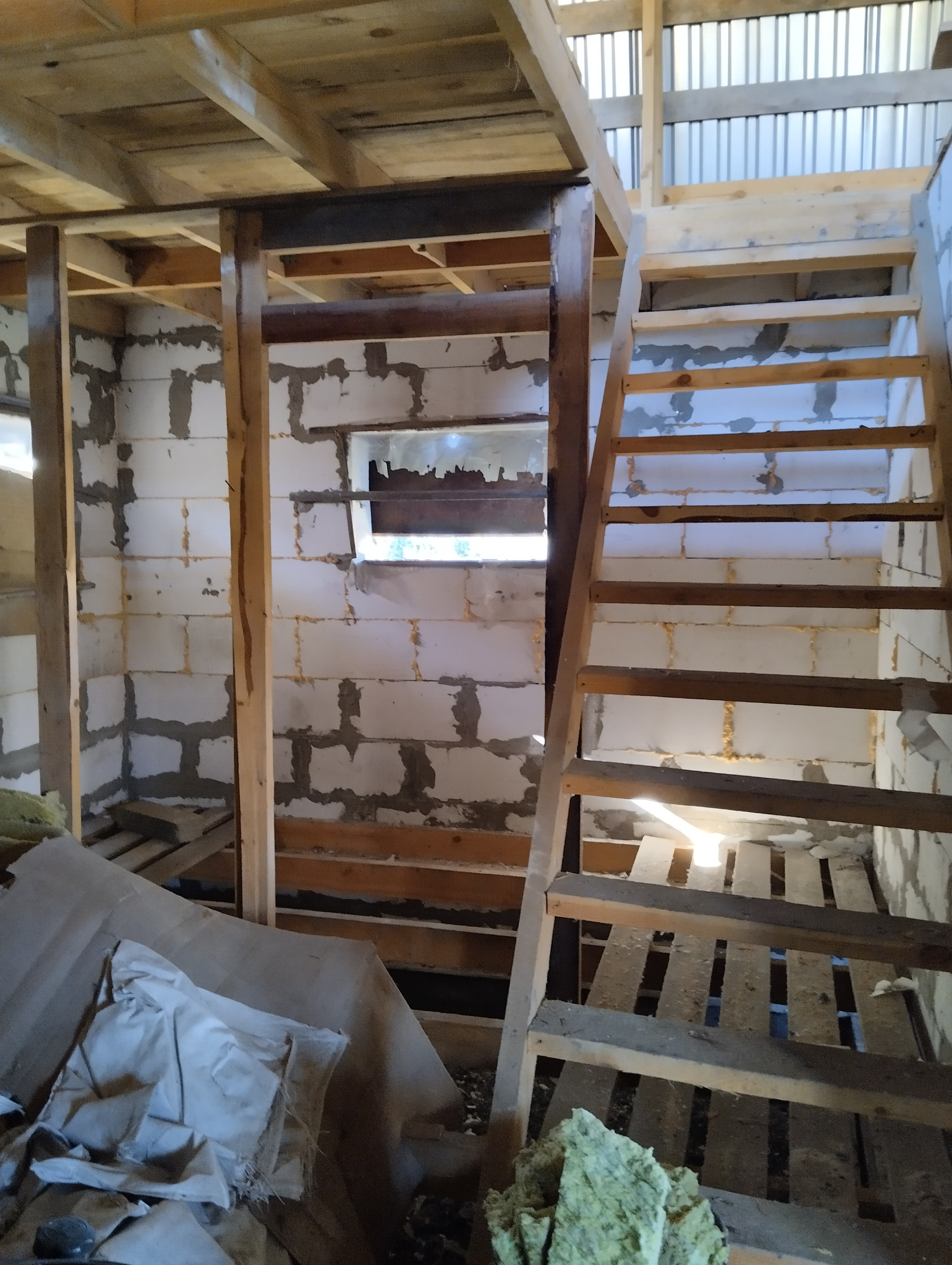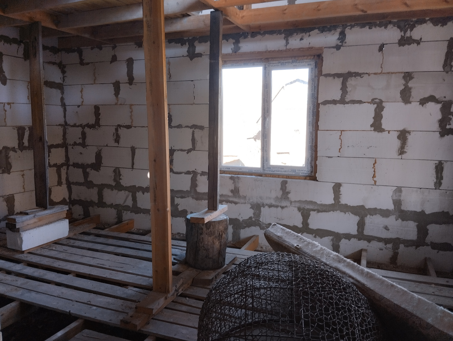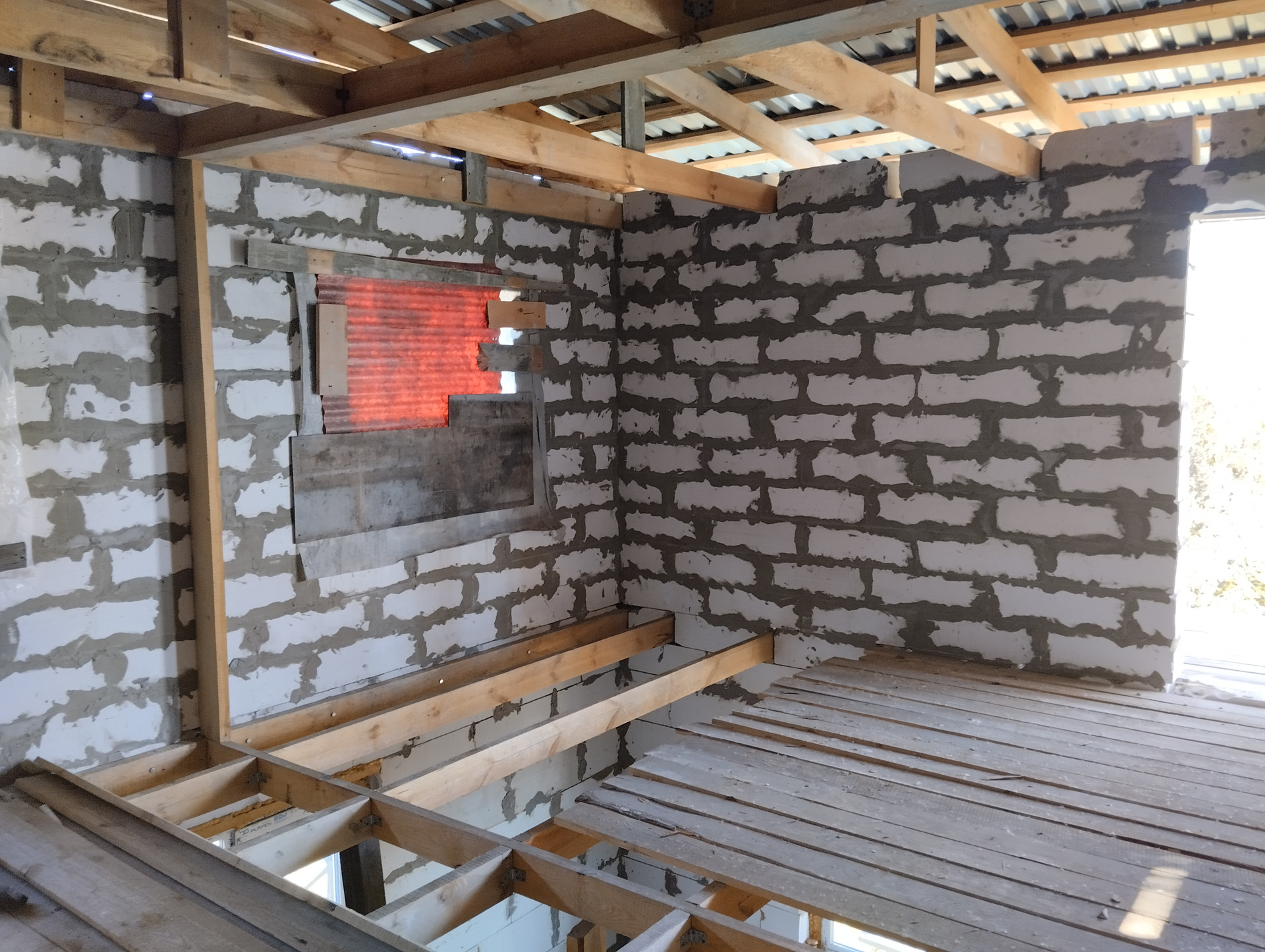 1. Объект незавершенного строительства, из газоблока, два этажа по 50 кв.м., частично окна, крыша есть, два входа.