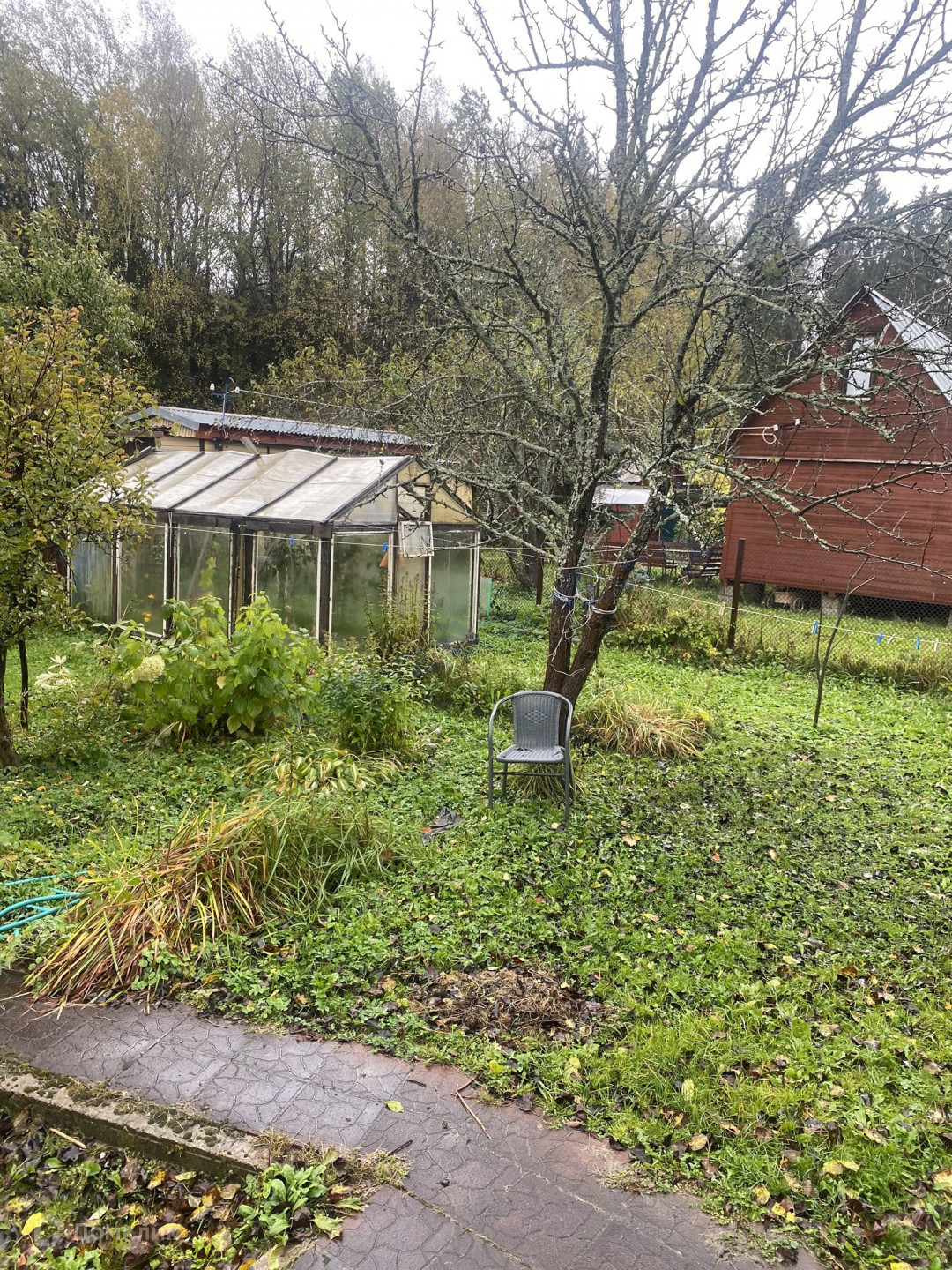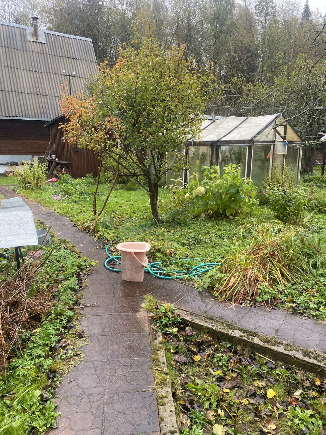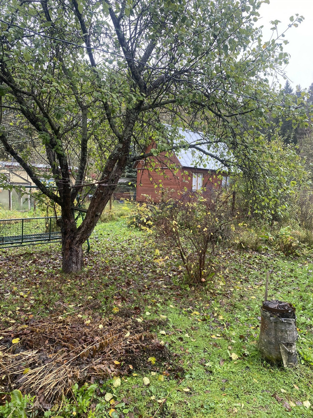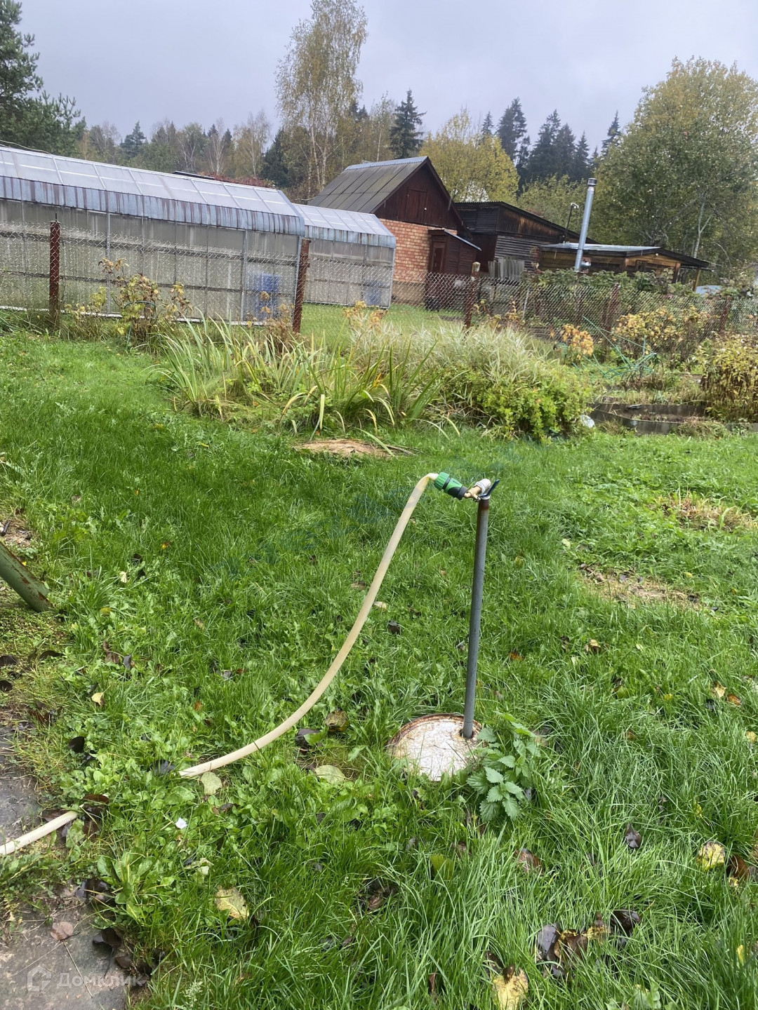 Участок 6 соток, огорожен, обработан, есть плодовые деревья, кустарники, теплица, душ, по периметру участка проведен летний водопровод, кроме этого - есть колодец,  уличный душ в виде отдельной постройки.