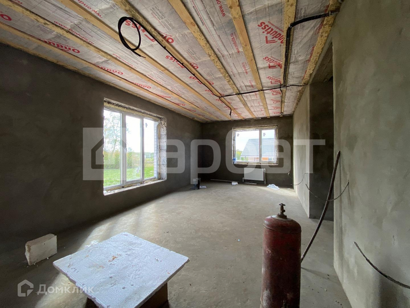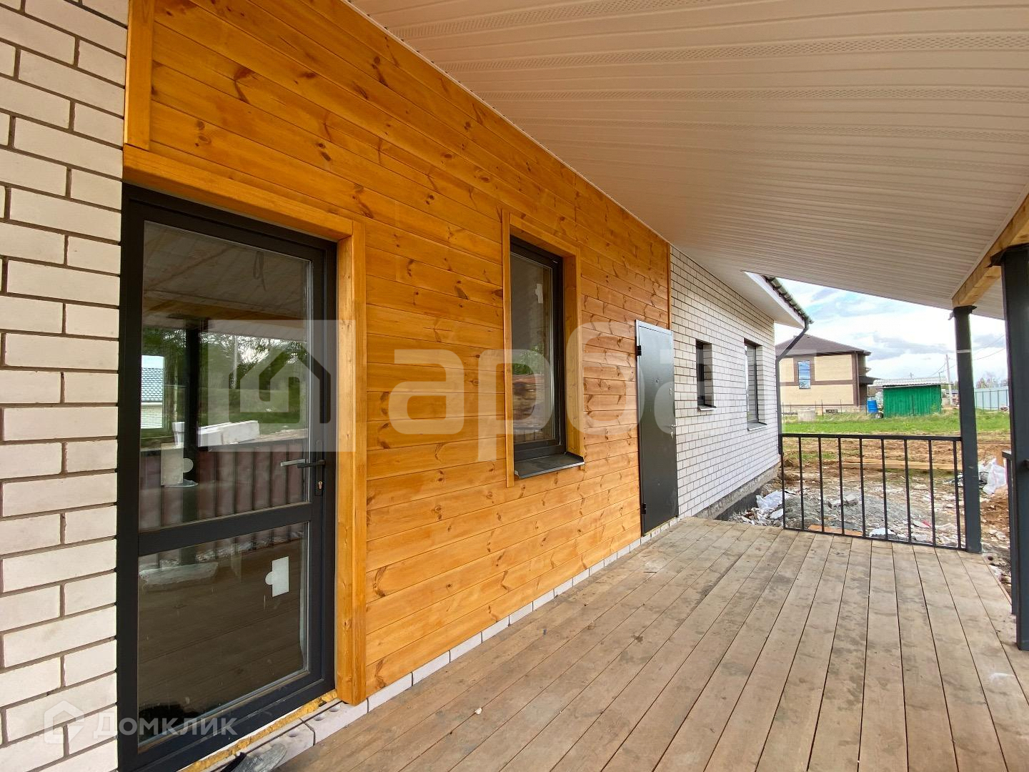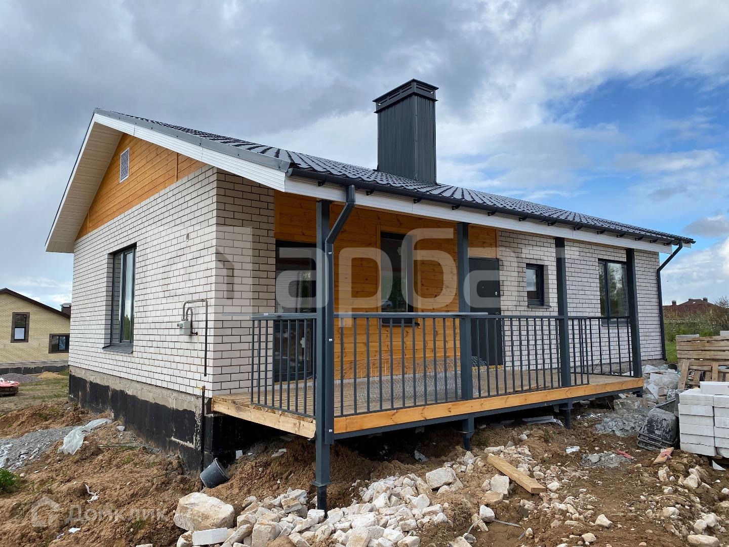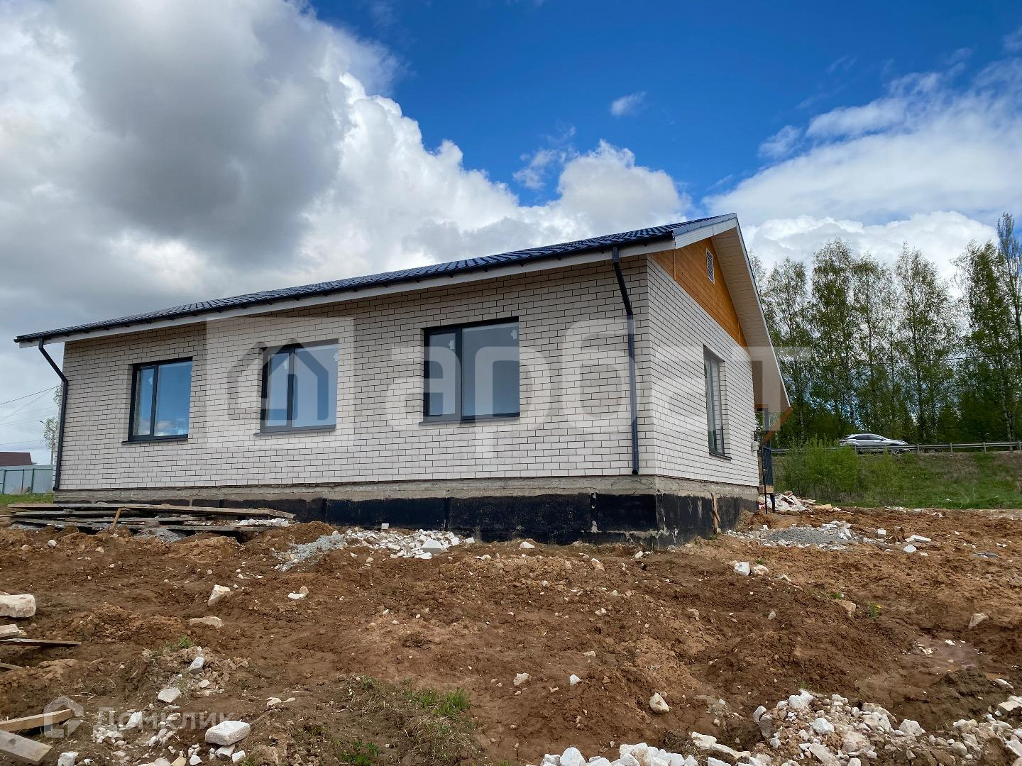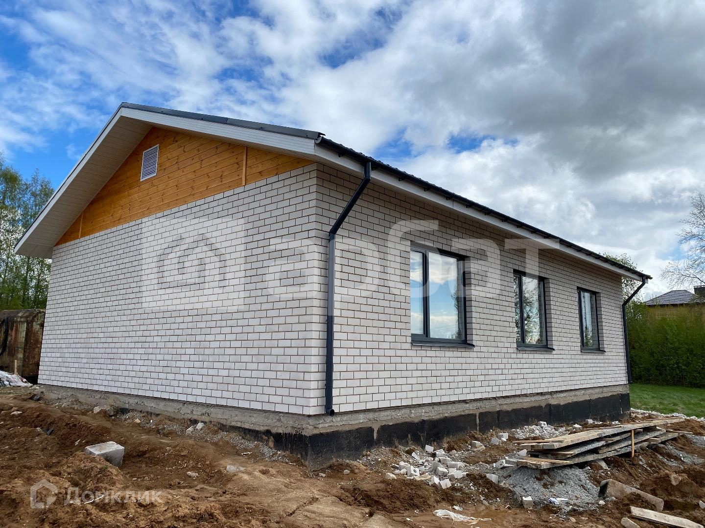 Дом на фундаменте из ж/б блоков. Стены газосиликат + облицованный кирпич комбинированный блок-хаусом. Хорошие окна. Утеплённая крыша. Комплектация с коммуникациями, тёплым полом, штукатуркой и стяжкой полов.