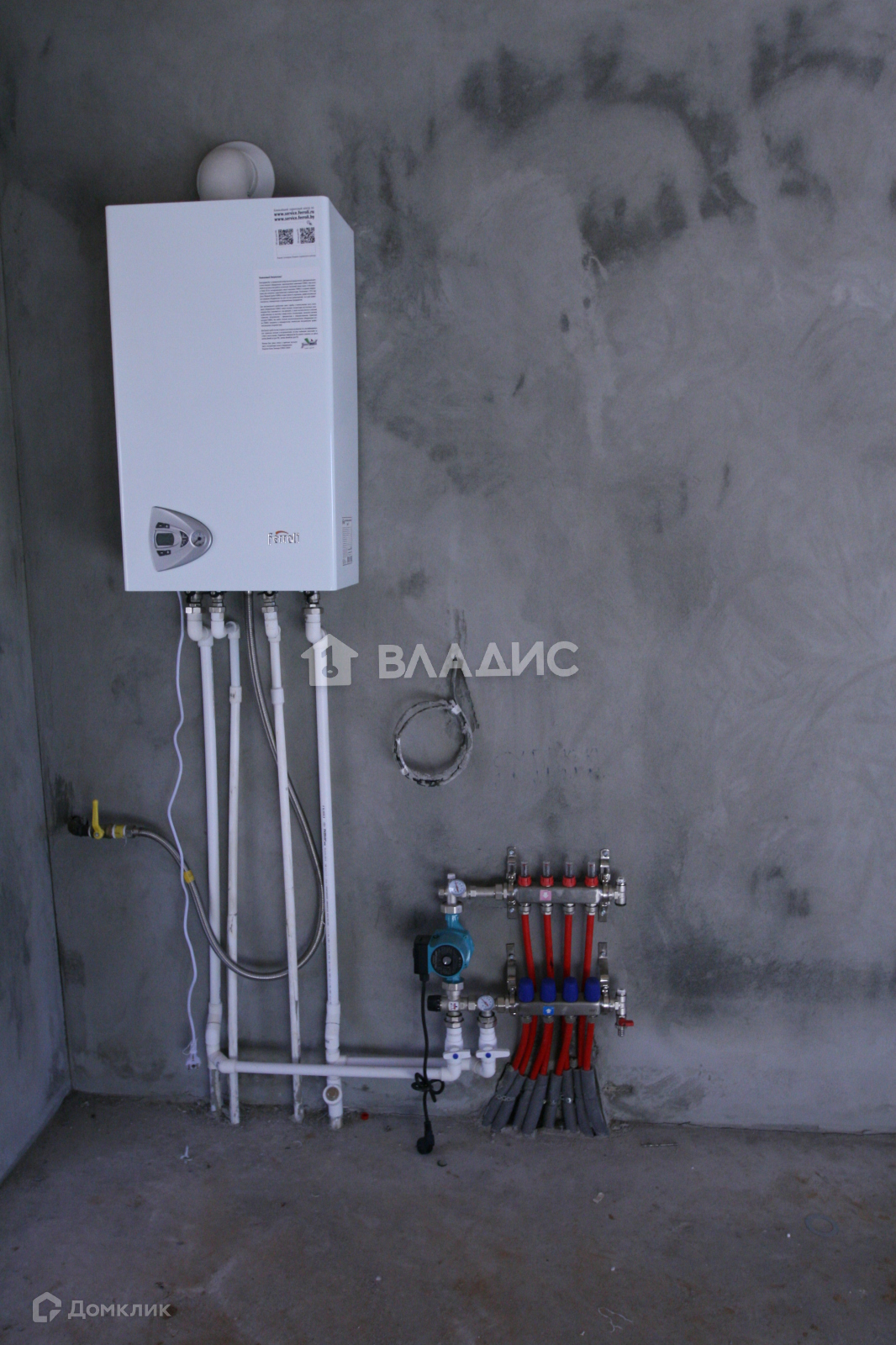 - настенный газовый котел Ferroli, двухконтурный (камера сгорания-закрытая, коаксиальная труба с наконечником);