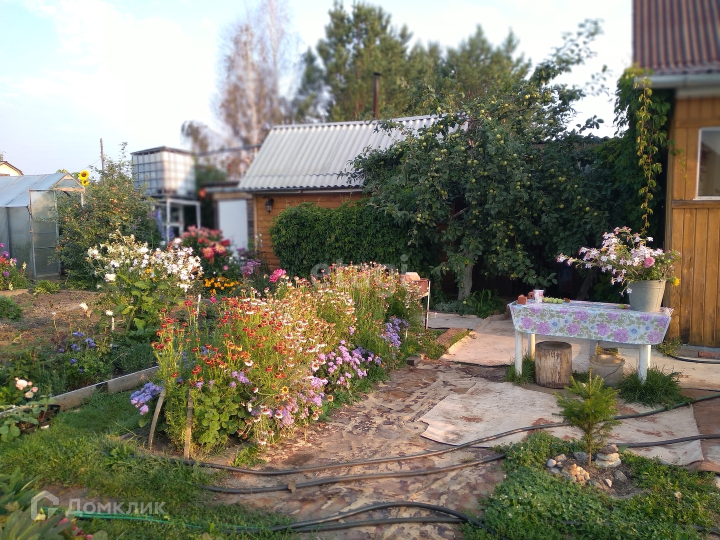 На участке расположены теплый, уютный дом, в котором можно находиться в любое время года, дровяник, сарай, отличная баня, две теплицы. Маленькая теплица из поликарбоната, большая из армированной пленки.