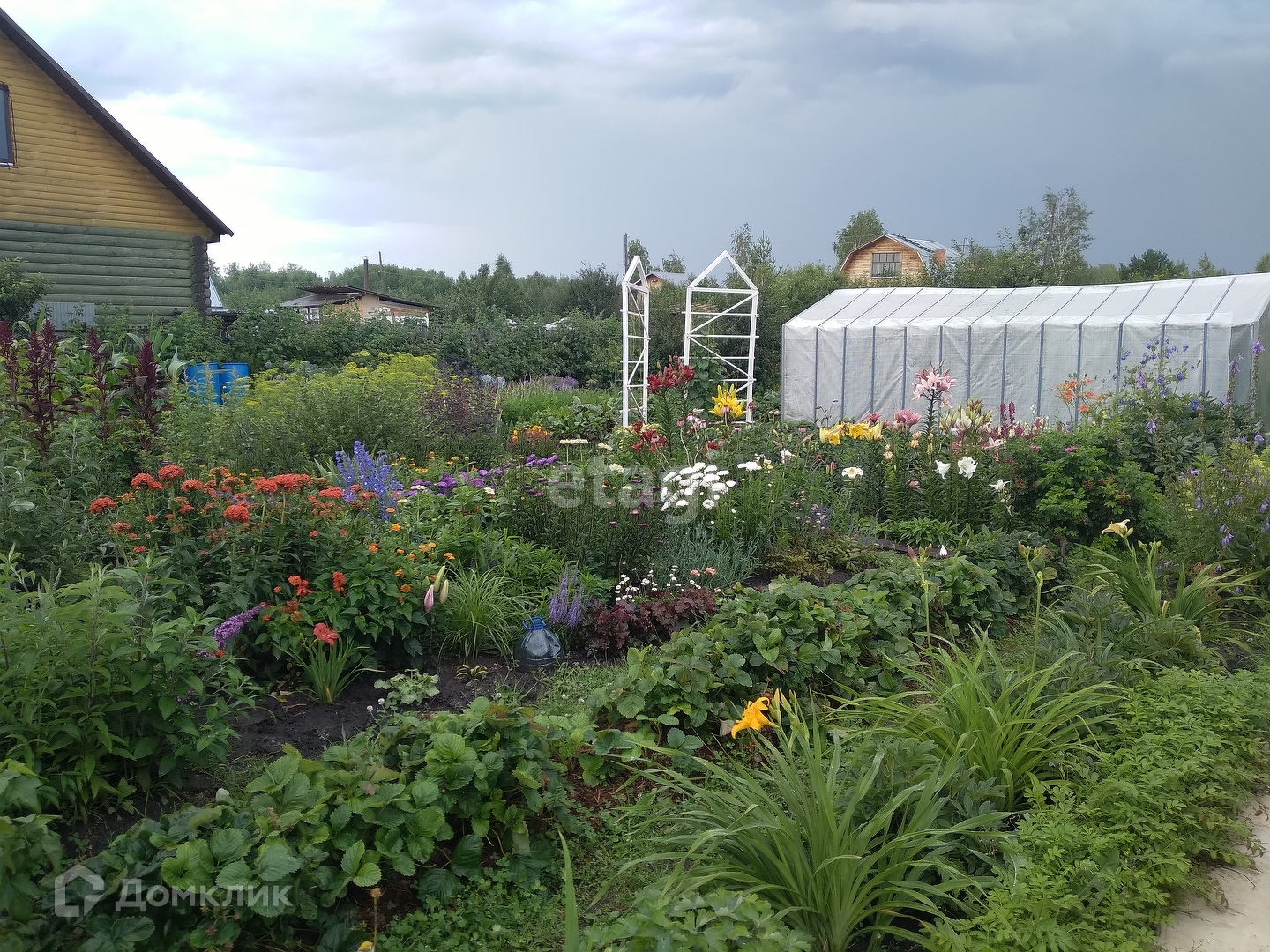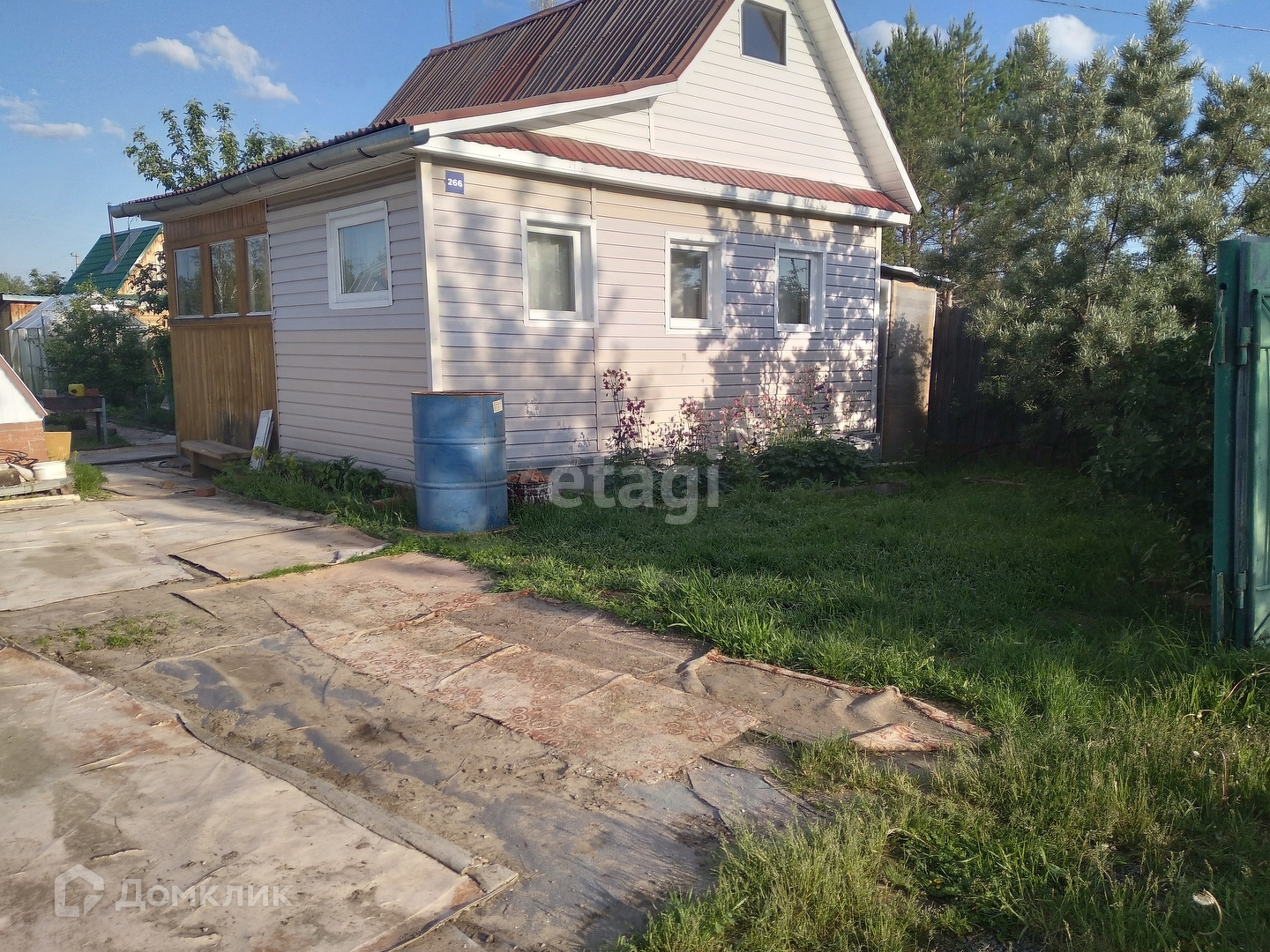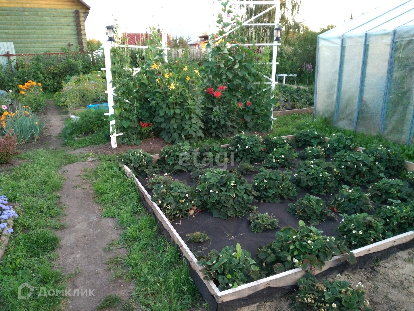 Участок находится в высоком месте, весной сухой, разработан. Из насаждений есть малина, клубника, смородина черная, красная, белая, жимолость, вишня, яблони, алыча, ДЮК, слива, ирга, облепиха, черемуха розовая, боярышник, калина, крыжовник, клены, липа, сирень.