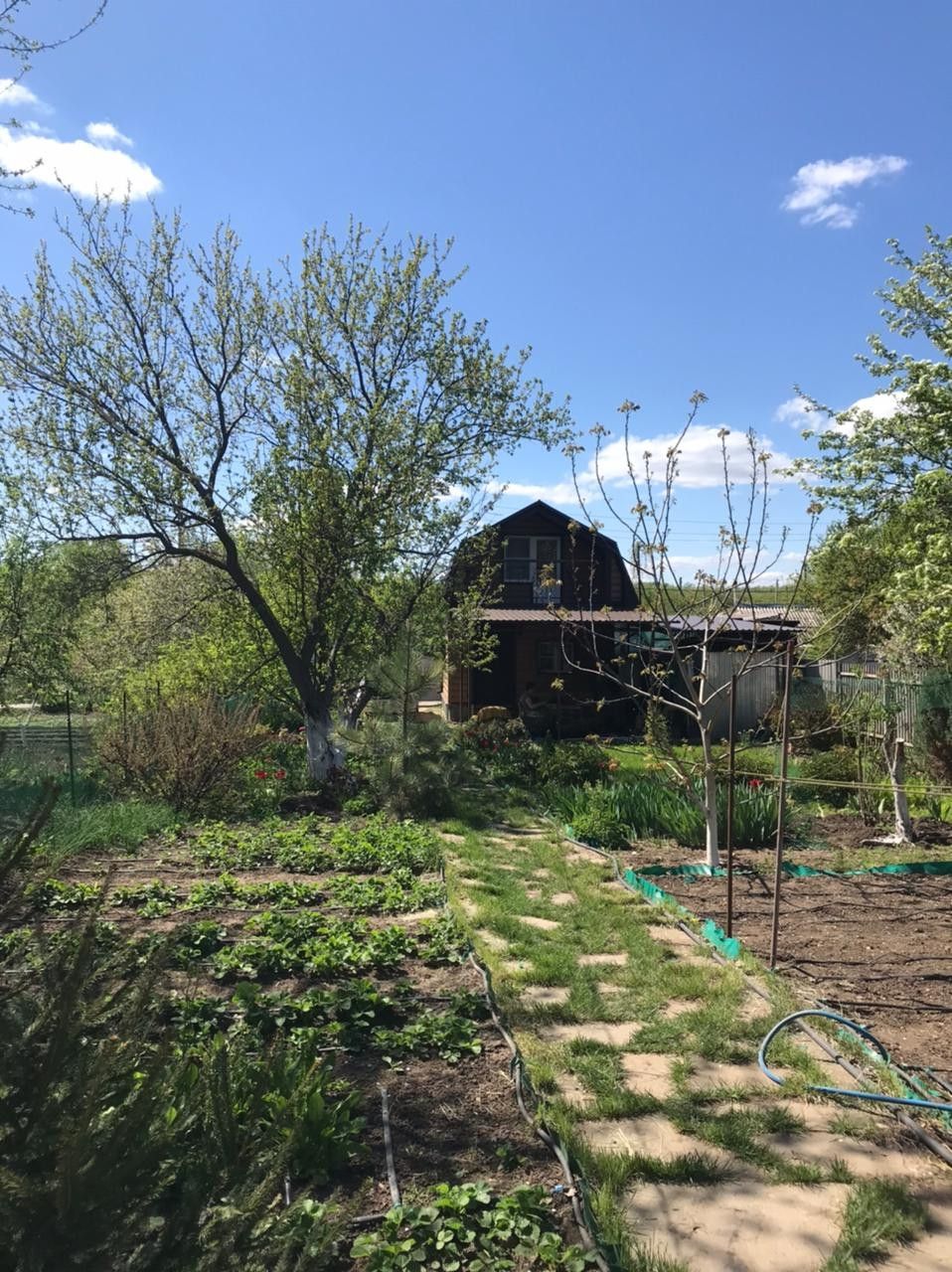 В саду яблони, груши вишня, черешня, абрикос, тютина, слива, боярышник (крупная ягода), орехи фундук и грецкий. Грецкий орех и сирень из Никитского Ботанического сада. 4 сорта винограда, смородина красная, белая, чëрная, парковая; крыжовник, йошта, жимолость, малина, клубника. В цветнике розы, барбарис, пионы, ирисы. Несколько хвойников.