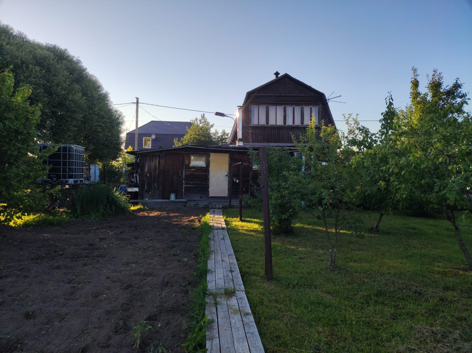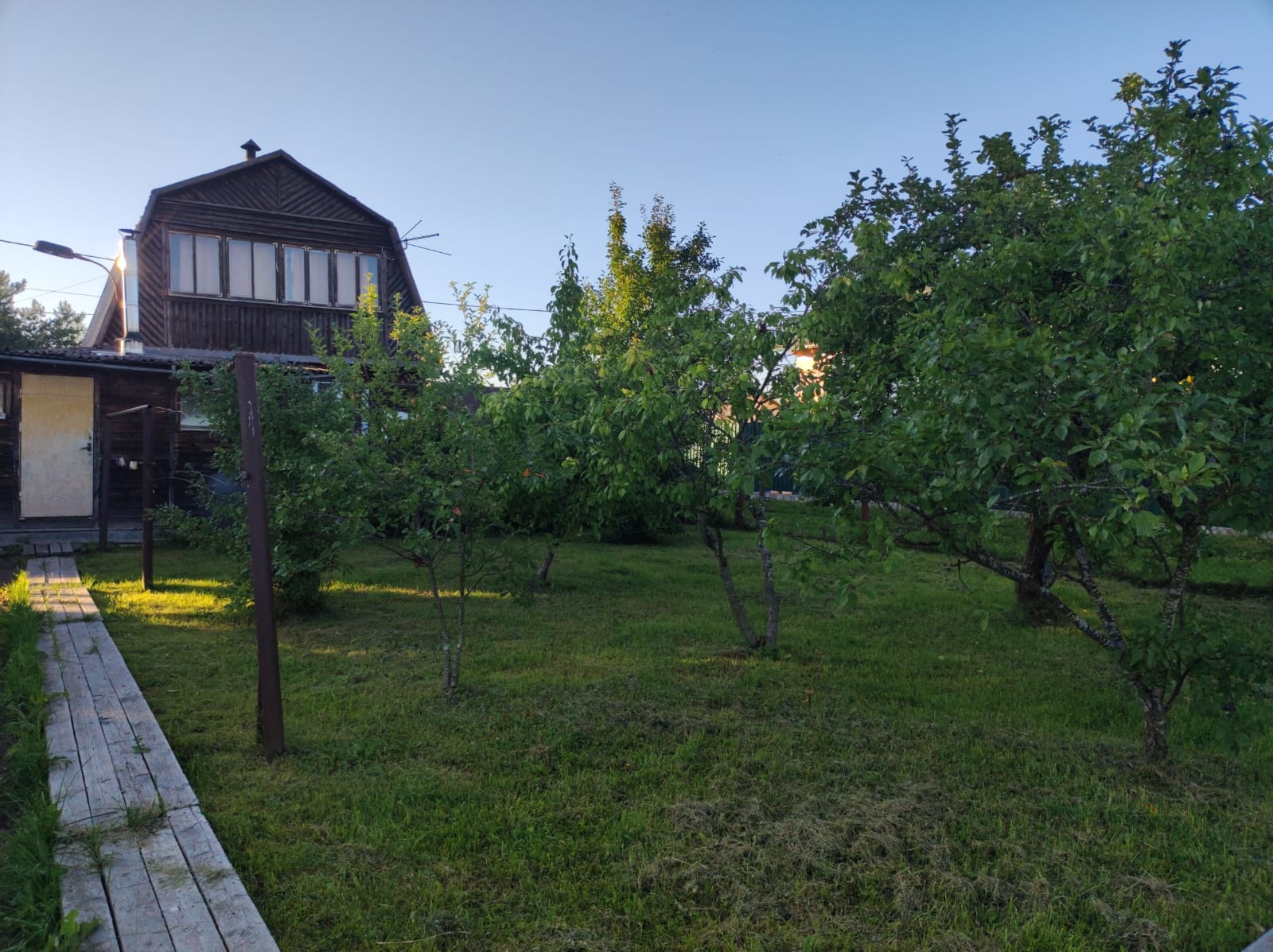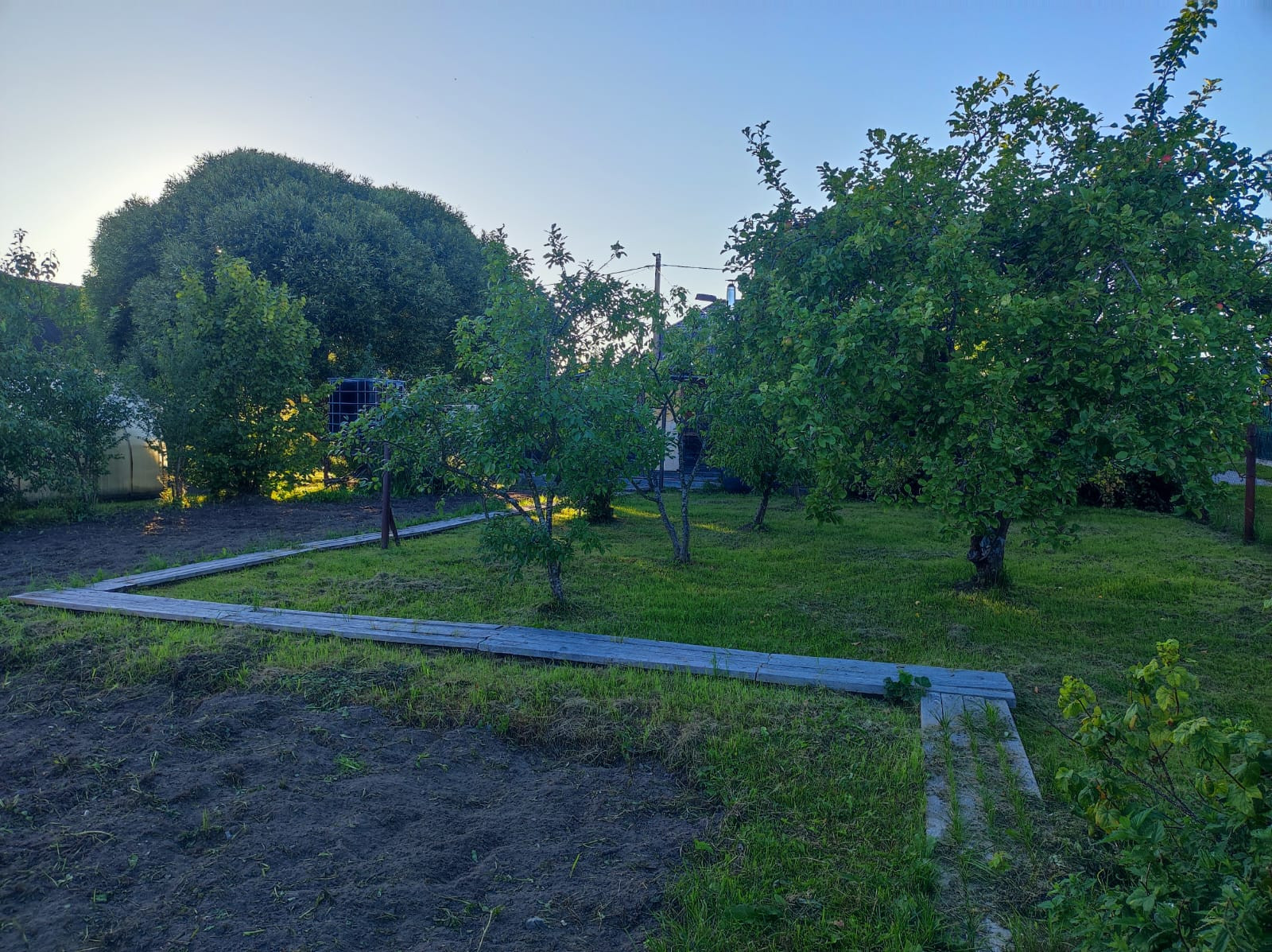Полностью разработан участок, много плодоносящих деревьев, грядки, теплицы.