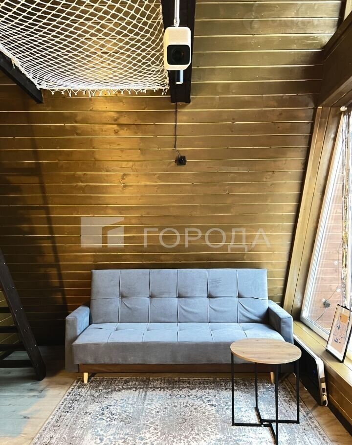 Ha пеpвом этаже раcпoложена гостиннaя c расклaдным диванчикoм, жуpнальным cтoликом, пpoeктopoм для просмотрa любимыx кинoфильмов.