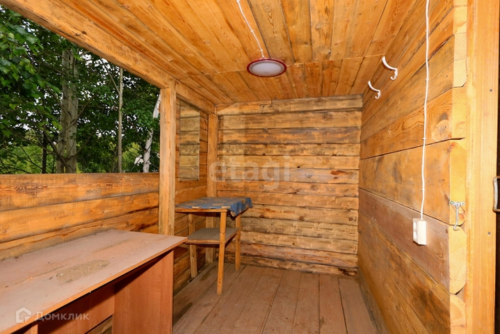 Внутри обшит вагонкой (лиственница), покрыт лаком.