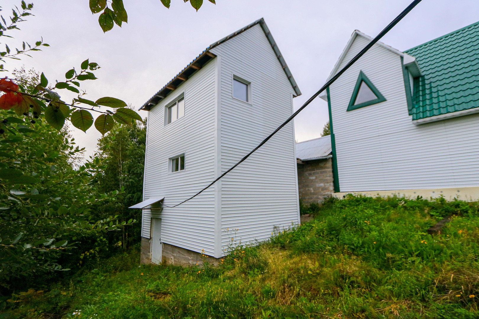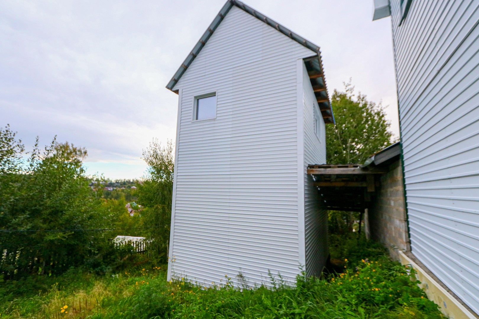 Участок 4,9 соток, солнечная сторона, есть небольшой уклон. Дом выполнен из бруса, утеплен пенопластом, обшит металлическим профилем.