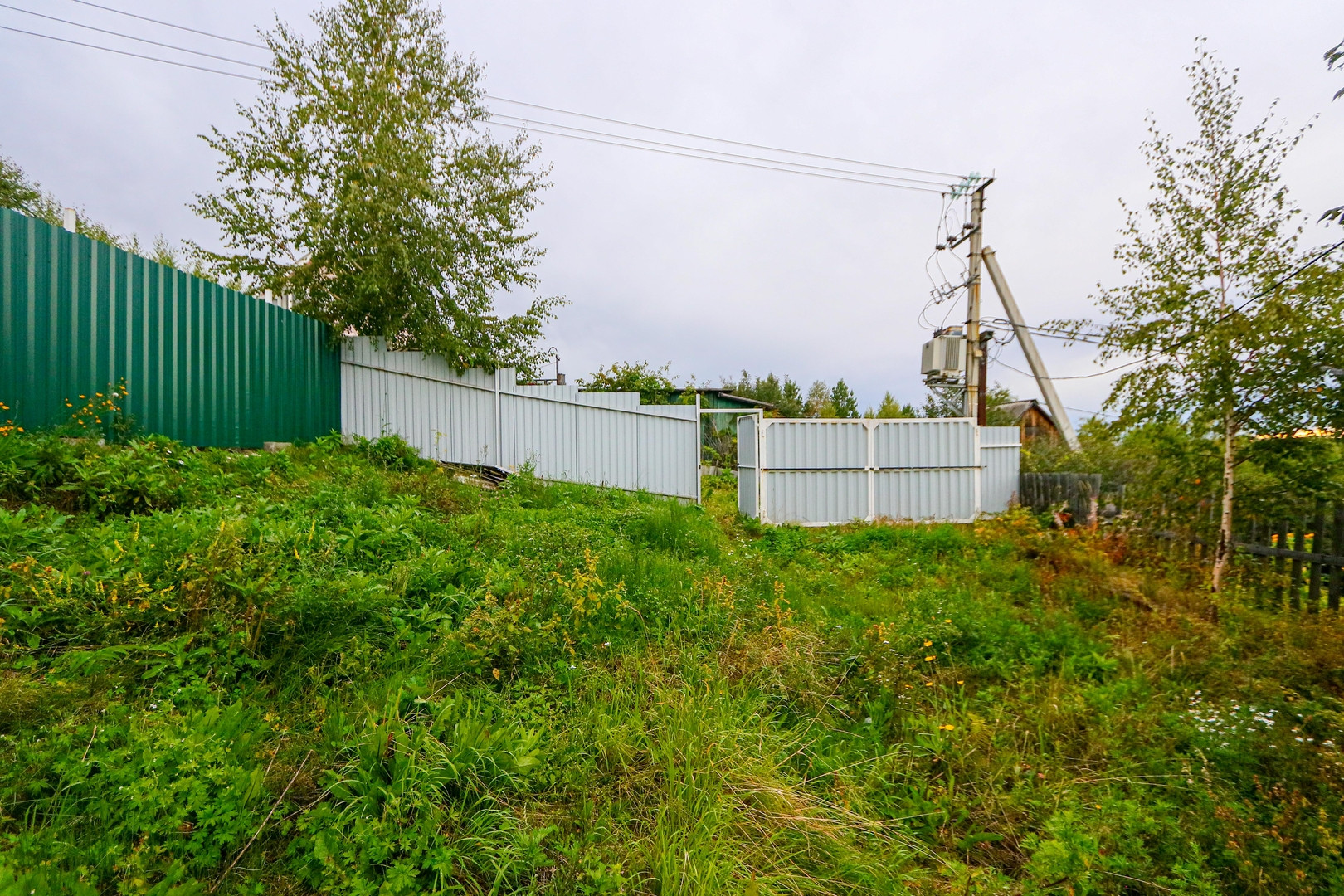 Забор по периметру участка.