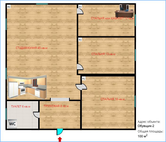 Дом включает в себя: прихожая 8 кв.м, санузел 6 кв.м, 3 спальни, большая гостиная-кухня 43 кв.м.