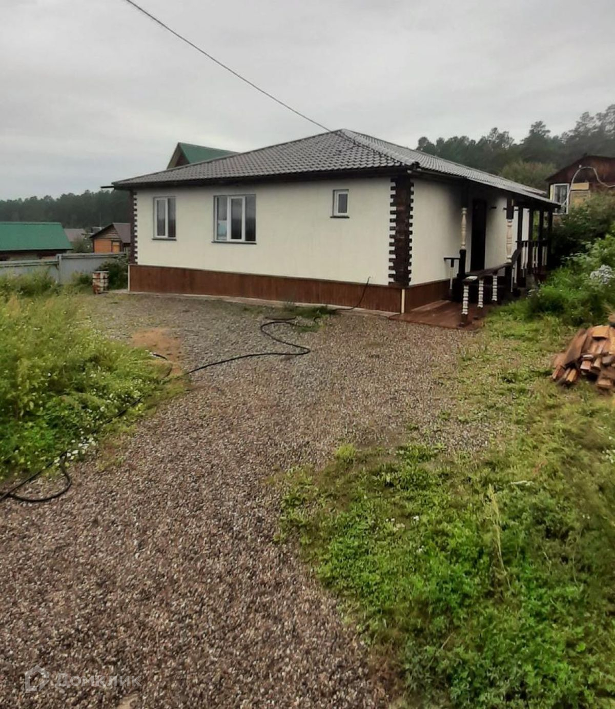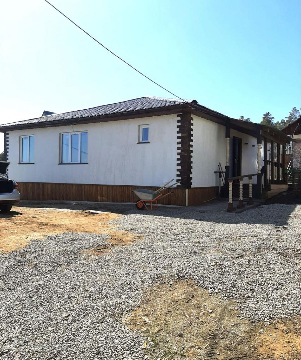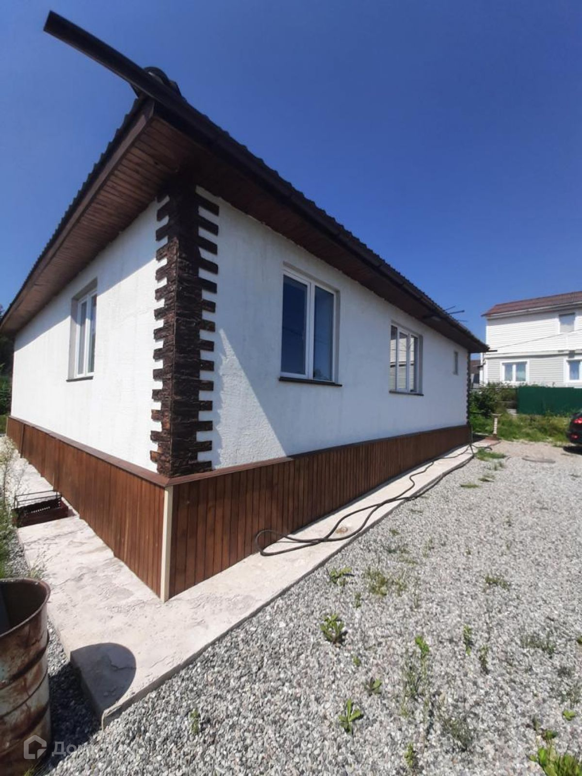 Дом одноэтажный, материал стен - газобетон. Снаружи оштукатурен «короедом».