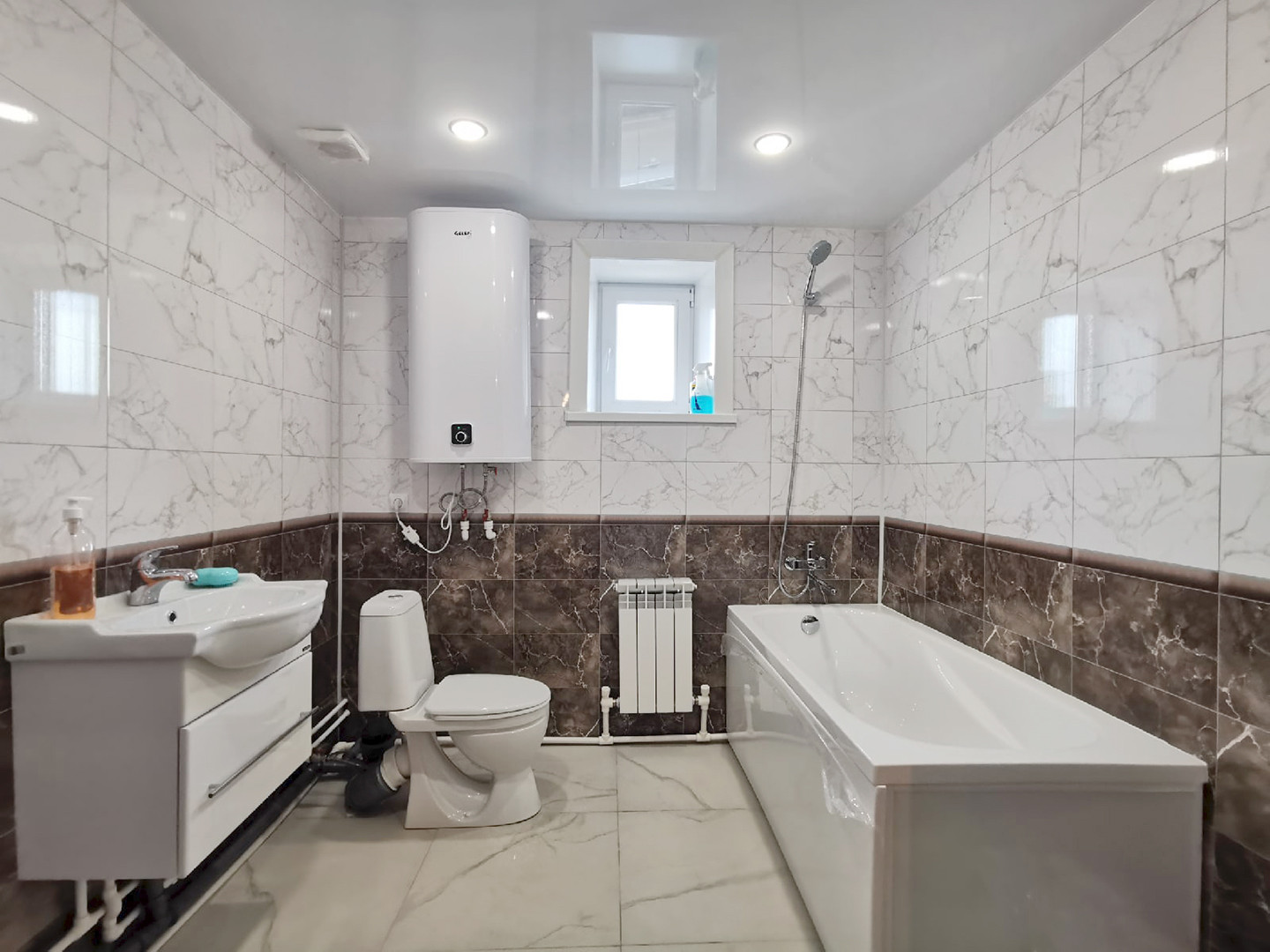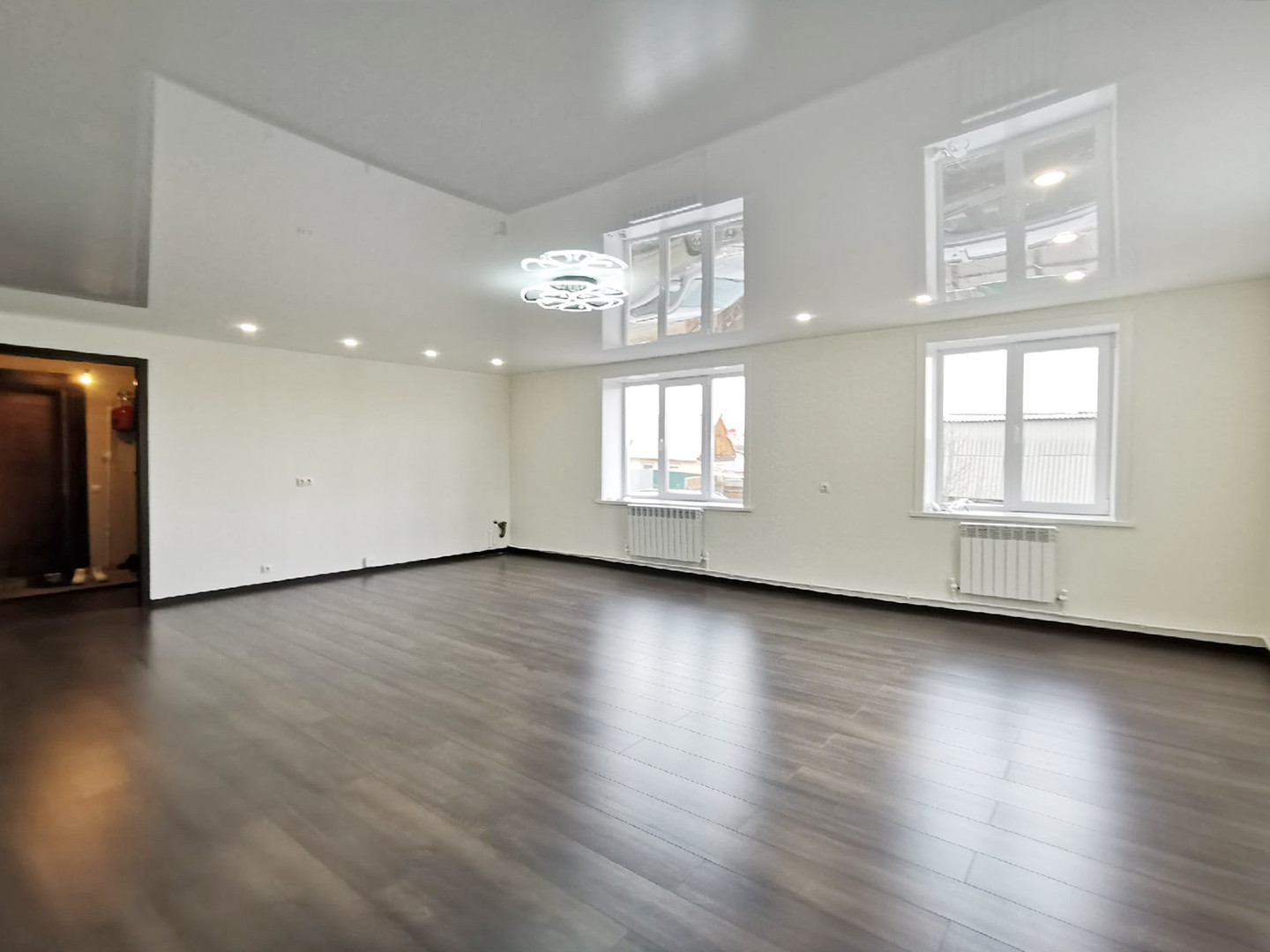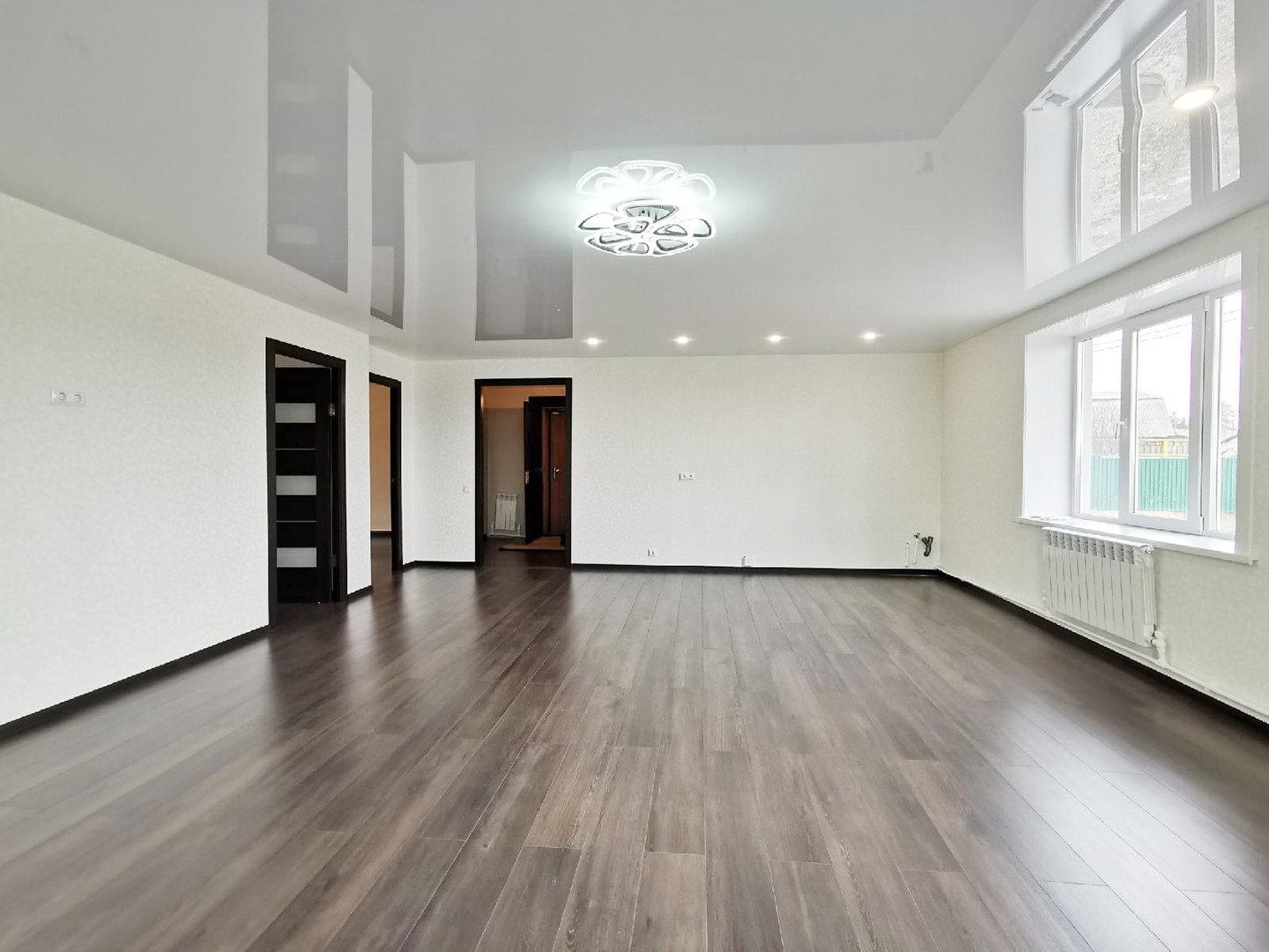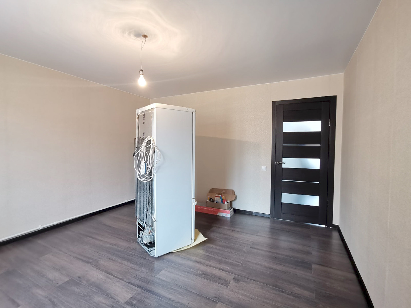 Сантехника установлена, дорогой ламинат 8мм, хорошие обои, натяжной потолок, двери из шпона!