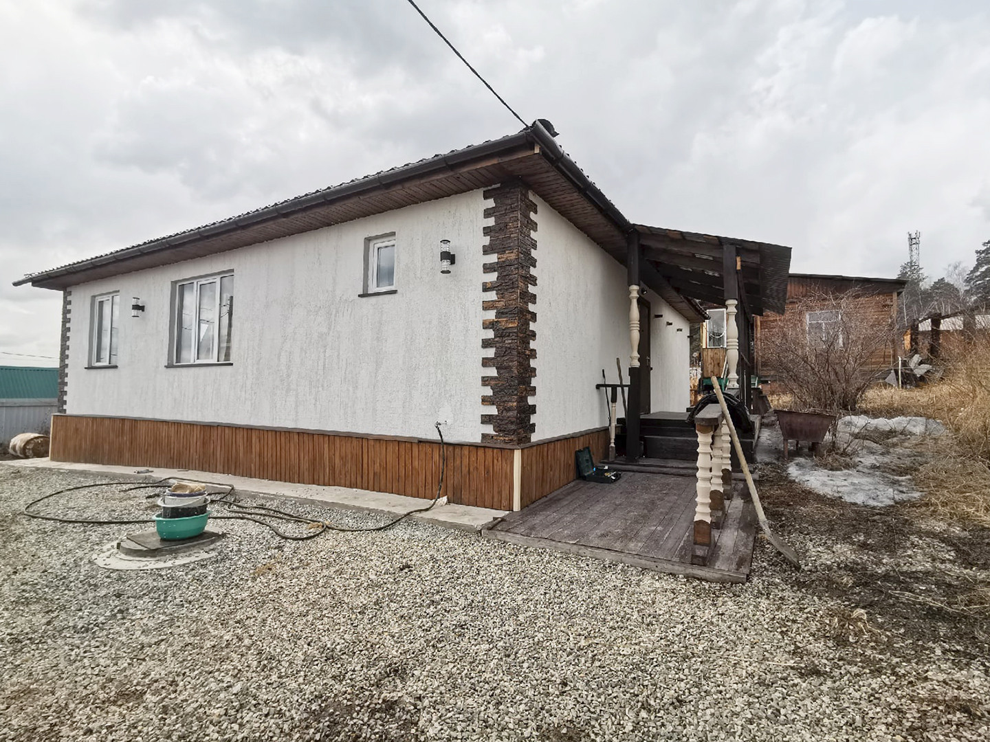 Асфальтированная дорога до СНТ, остановка прямо у ворот садоводства, до дома 4 мин. пешком от остановки. Магазины. Соседи живут круглый год. Автобус с Ц. Рынка круглогодично, с интервалом 20 минут.