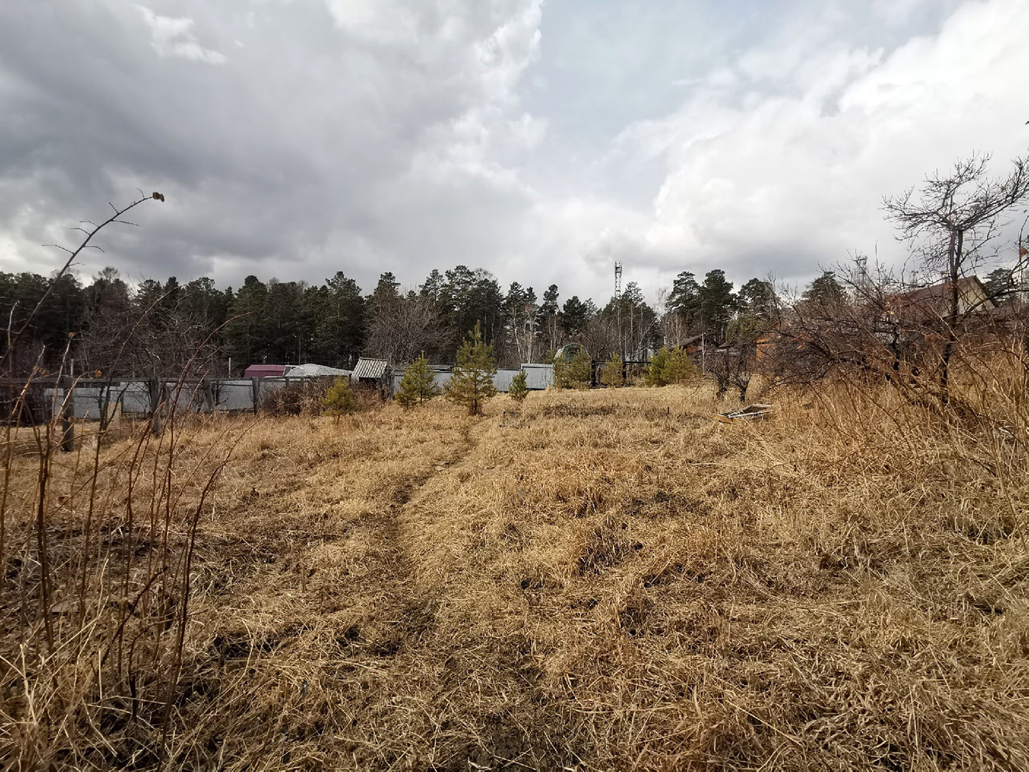 Участок 12 соток, ровный, разработан. Плодовые деревья - малина, сортовая вишня, жимолость, крыжовник, облепиха, ранетка, слива. Кустарник - сирень разная, рябина, калина, барбарис, растёт дуб. Есть летний водопровод.