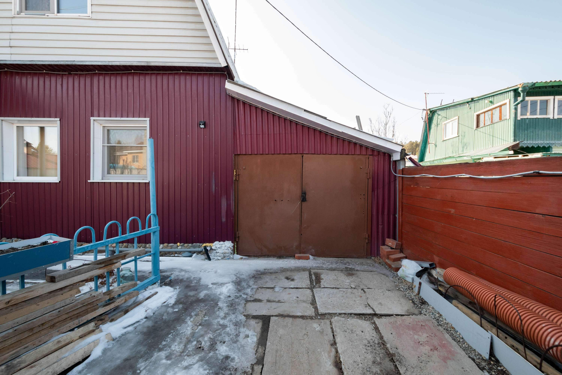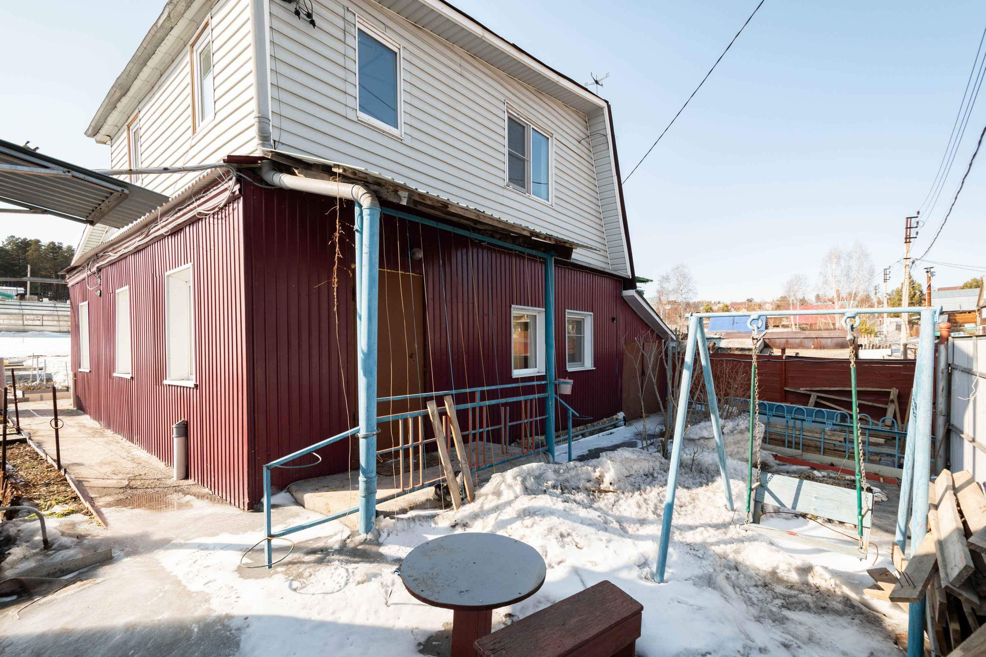 Дом обшит сайдингом.
