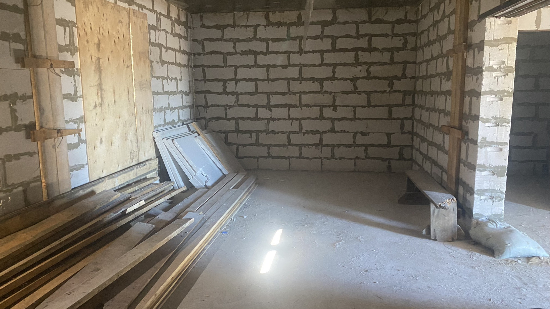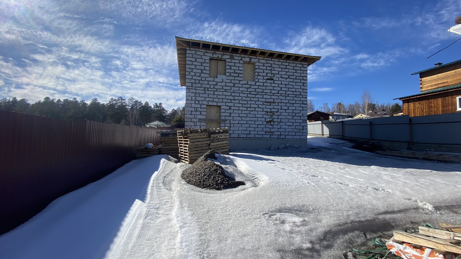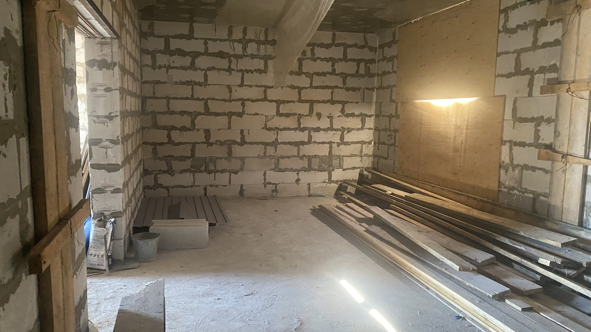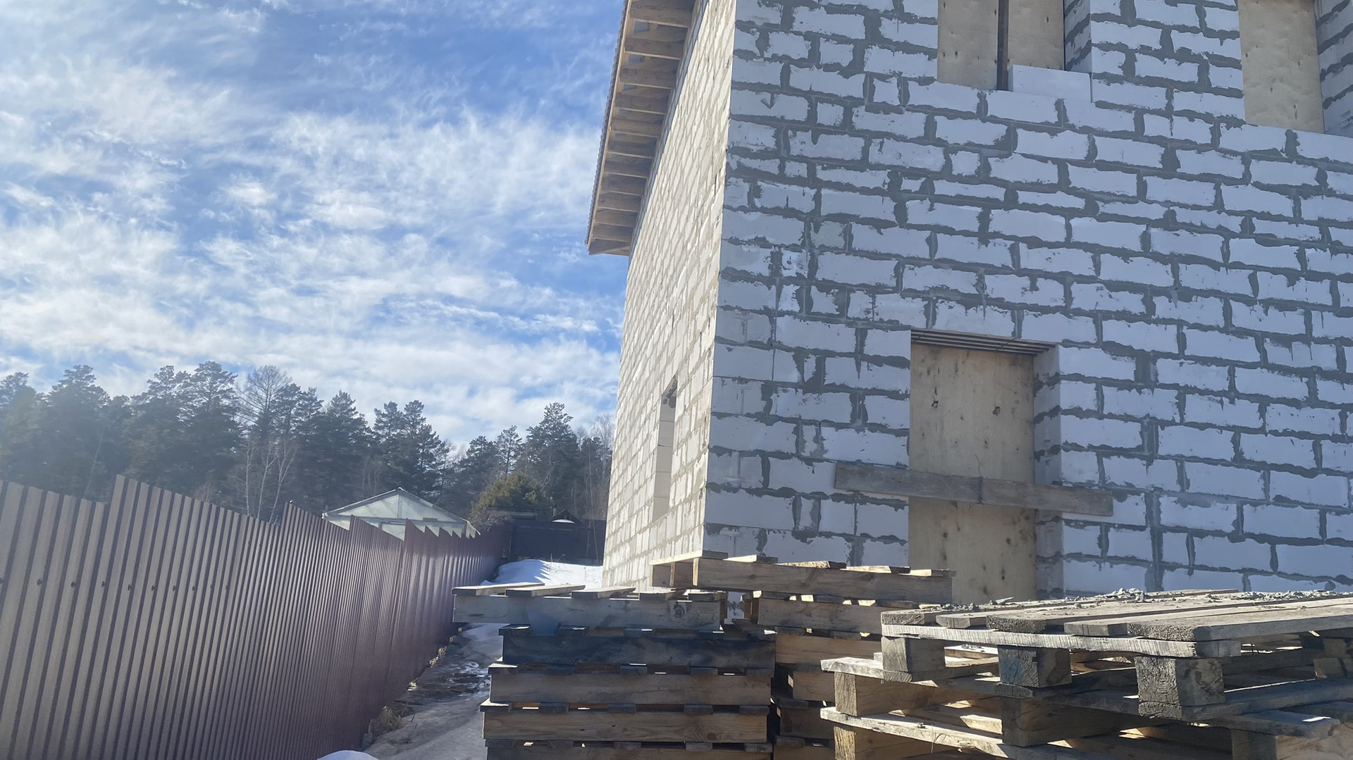 Основание дома, монолитная бетонная плита. Стены из автоклавного газабетона «Ангарский». Внешние стены 600*400, высота потолков 3 м, перекрытие между этажами монолитная бетонная плита. Перегородки выполнены из 20”. Межкомнатные стены из 10”.