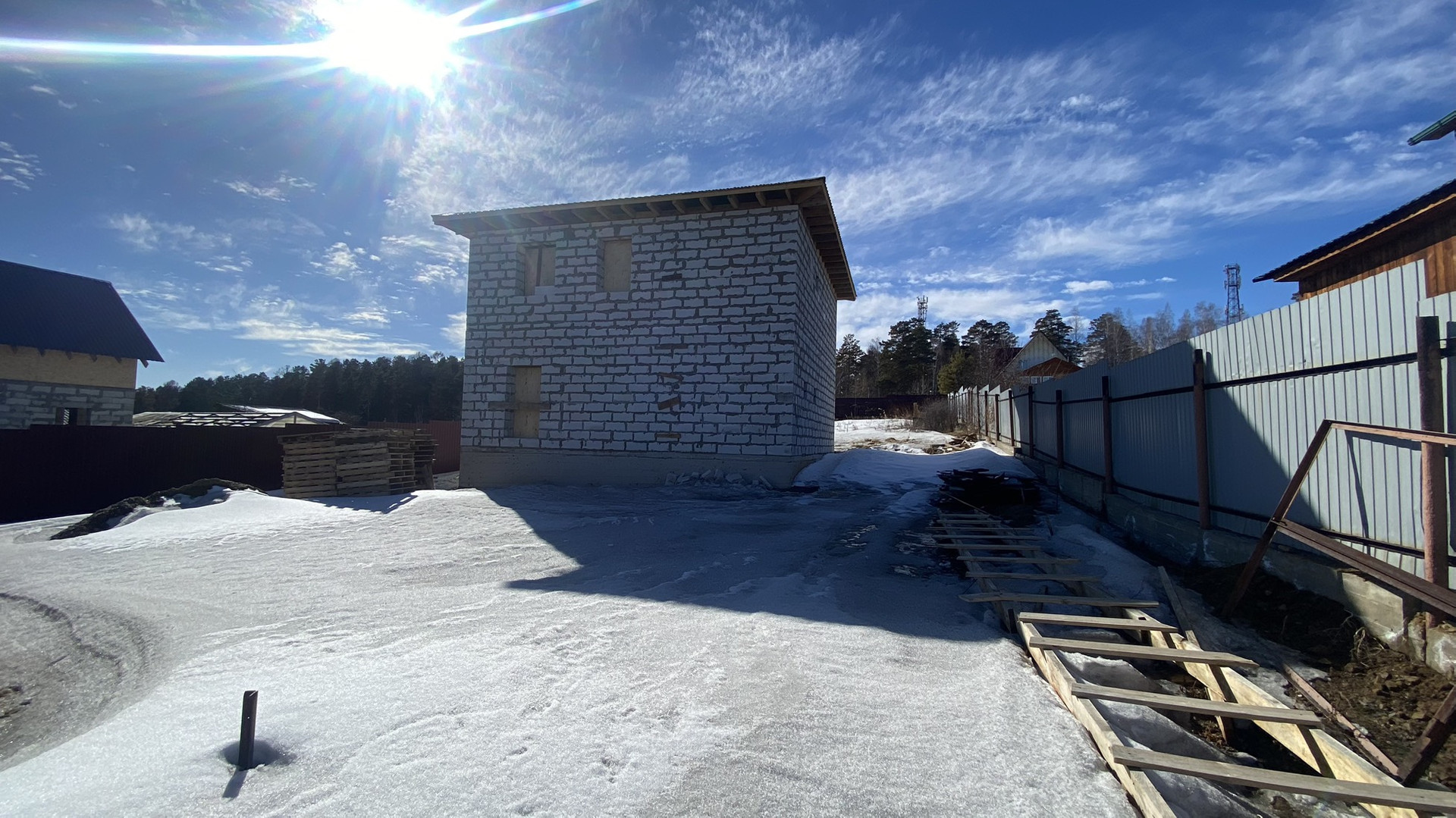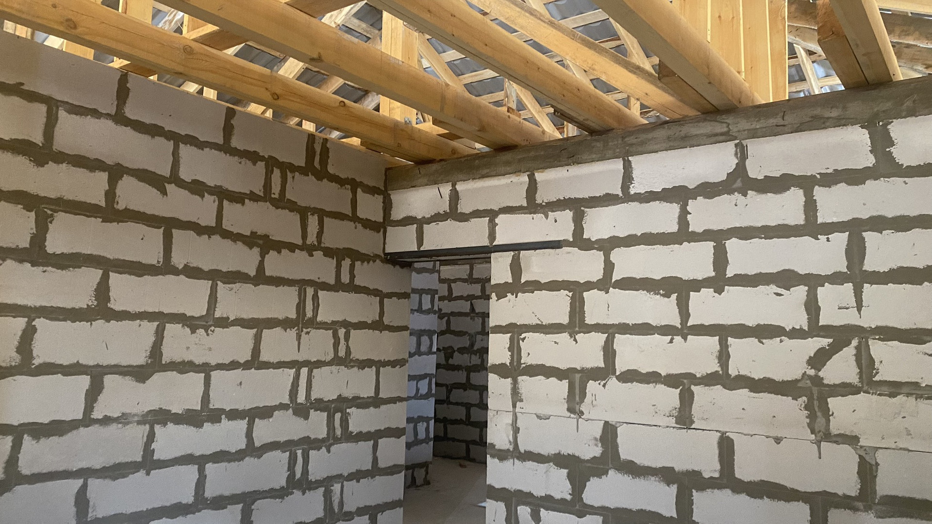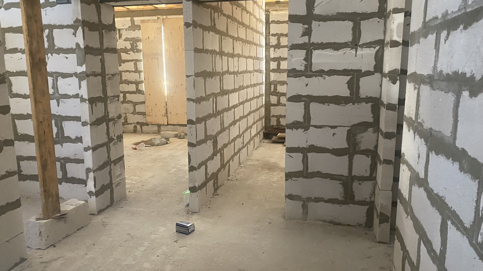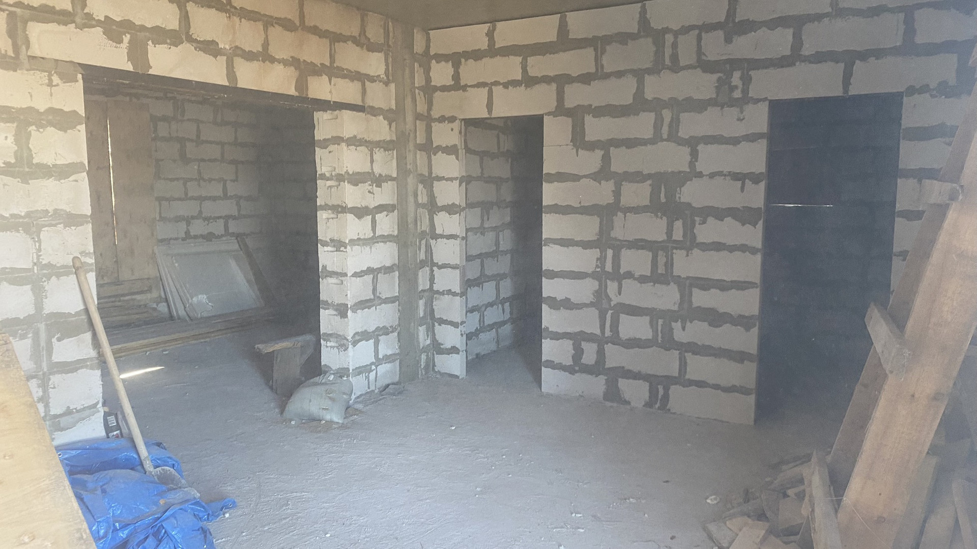 Основание дома, монолитная бетонная плита. Стены из автоклавного газабетона «Ангарский». Внешние стены 600*400, высота потолков 3 м, перекрытие между этажами монолитная бетонная плита. Перегородки выполнены из 20”. Межкомнатные стены из 10”.