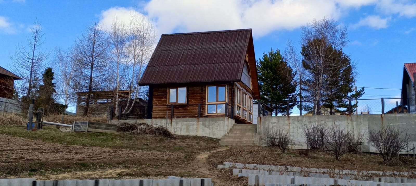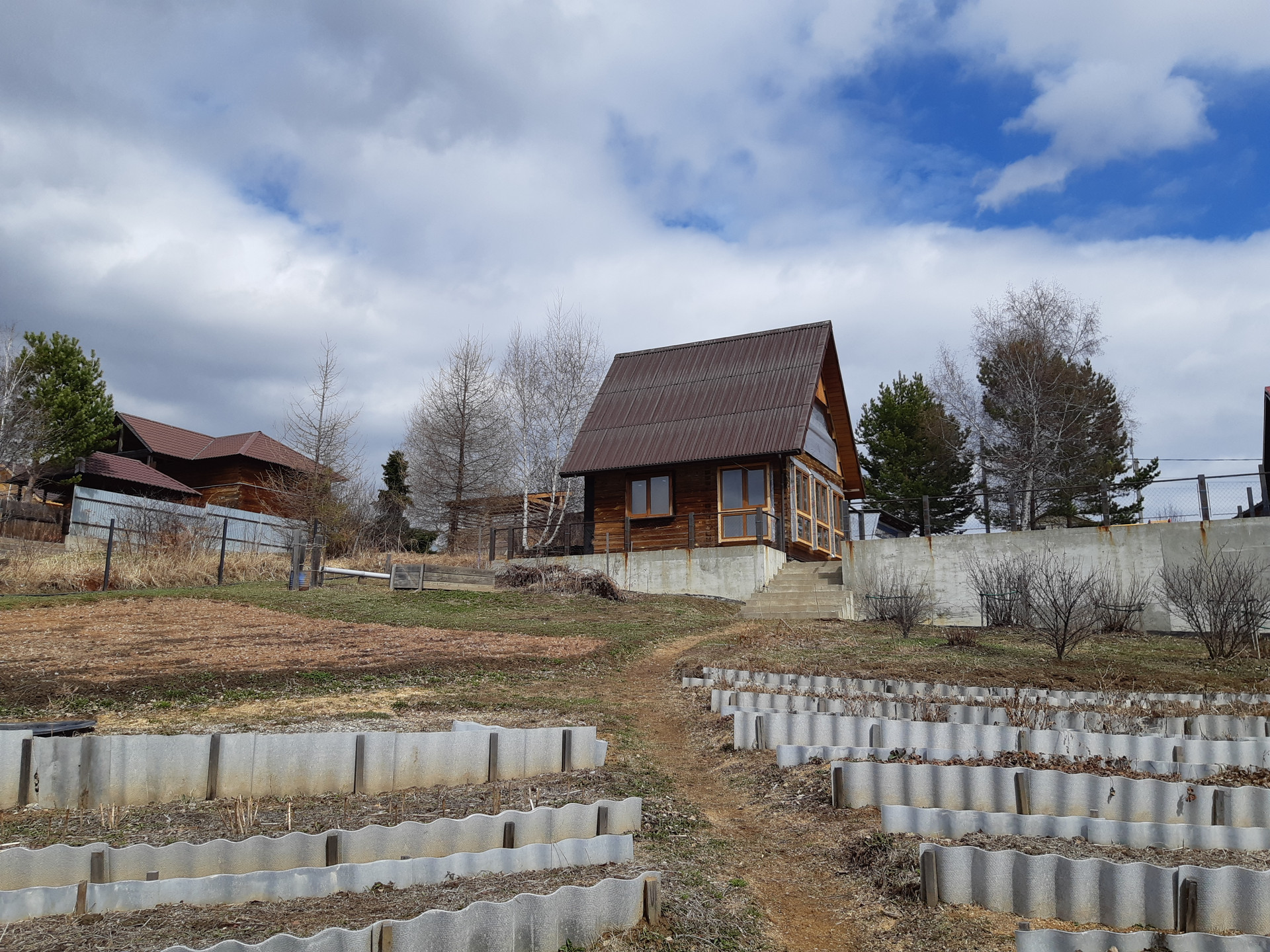 Третья территория порадует вас своим огородом с насаждениями и множеством многолетников: лилии, пионы,хризантема, гортензия, роза.Плодово-ягодные кустарники: малина,черная и красная смородина,крыжовник, жимолость,войлочная вишня, клубника, а бетонная лестница облегчит доступ к ней. Земельный участок находится в собственности более 5 лет, что обеспечивает надежность сделки. Возможна покупка в ипотеку, что делает больше людей доступным этот уютный уголок природы всего в 10 минутах езды от города.