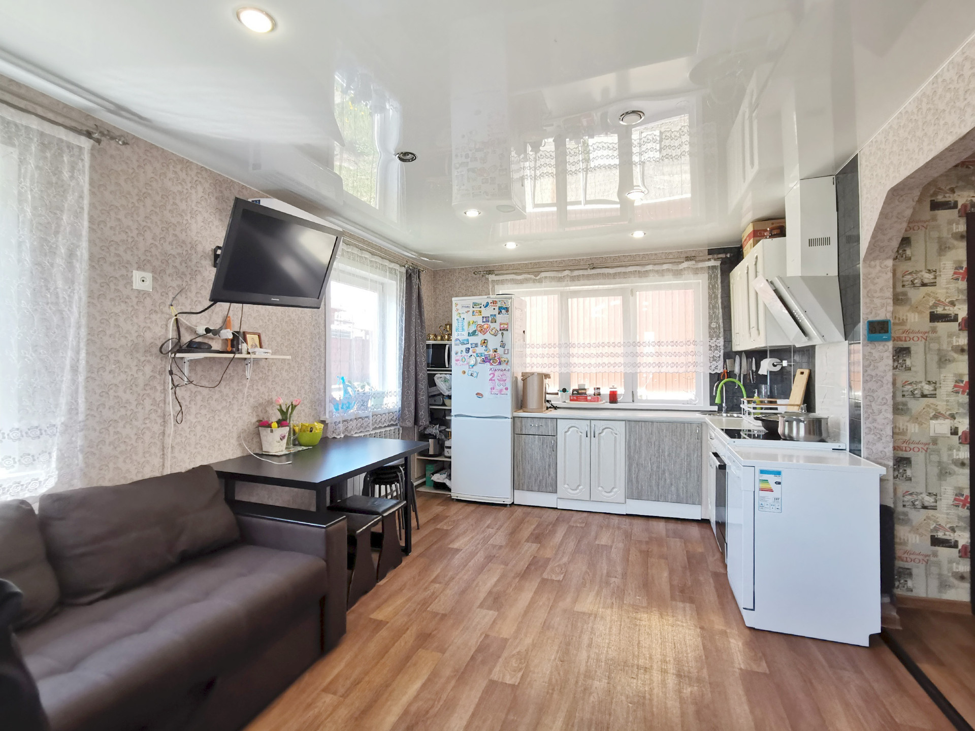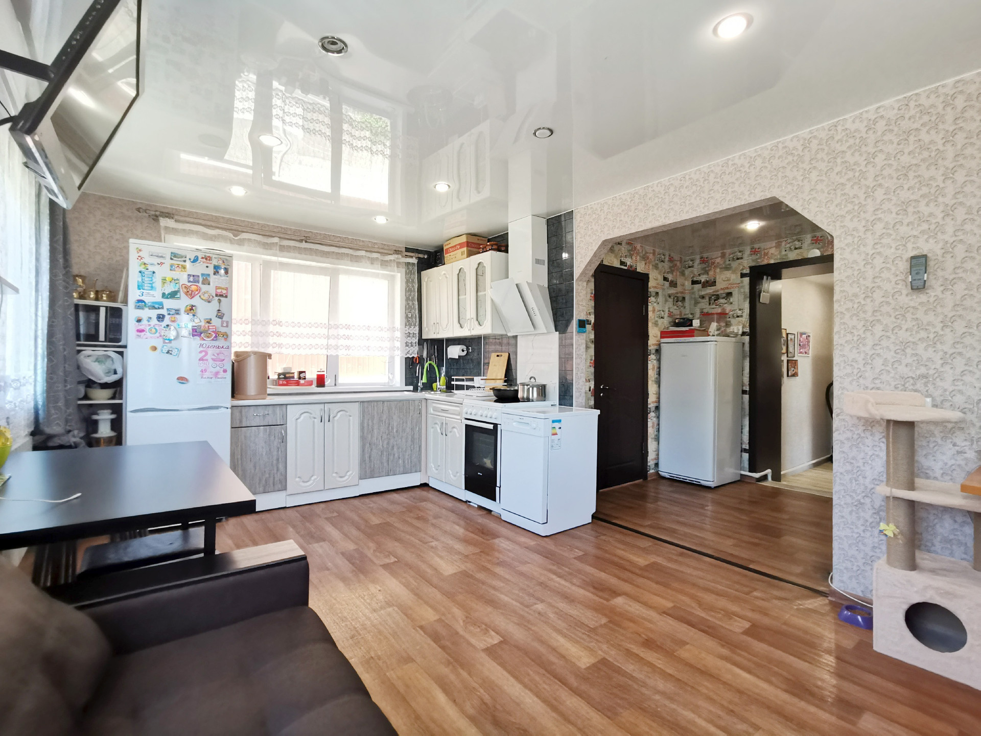 Полы: ламинат/линолеум, плитка в санузле. В ванной и прихожей установлен тёплый пол. Потолки: натяжные с точечным освещением. Стены оклеены обоями. Санузел: плитка. Установлена система фильтрации воды Аквафор Морион.